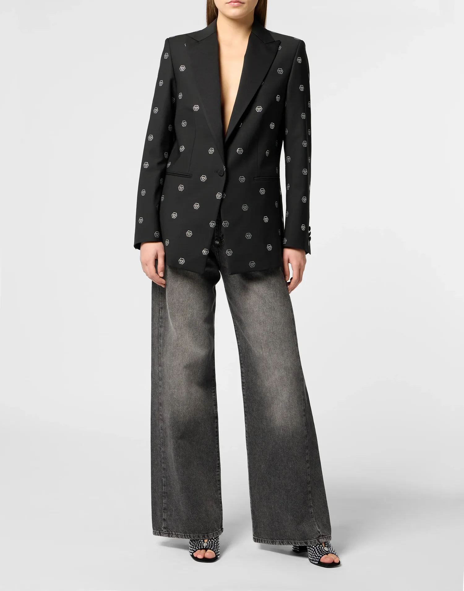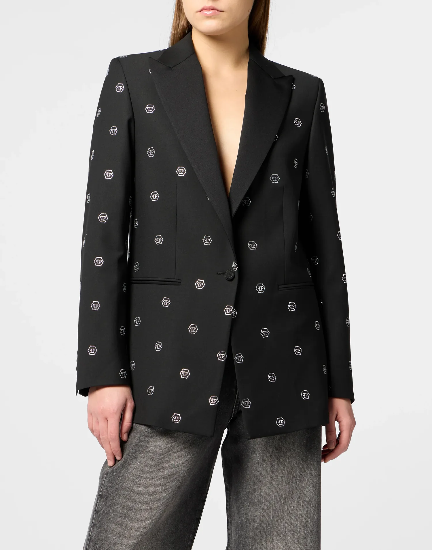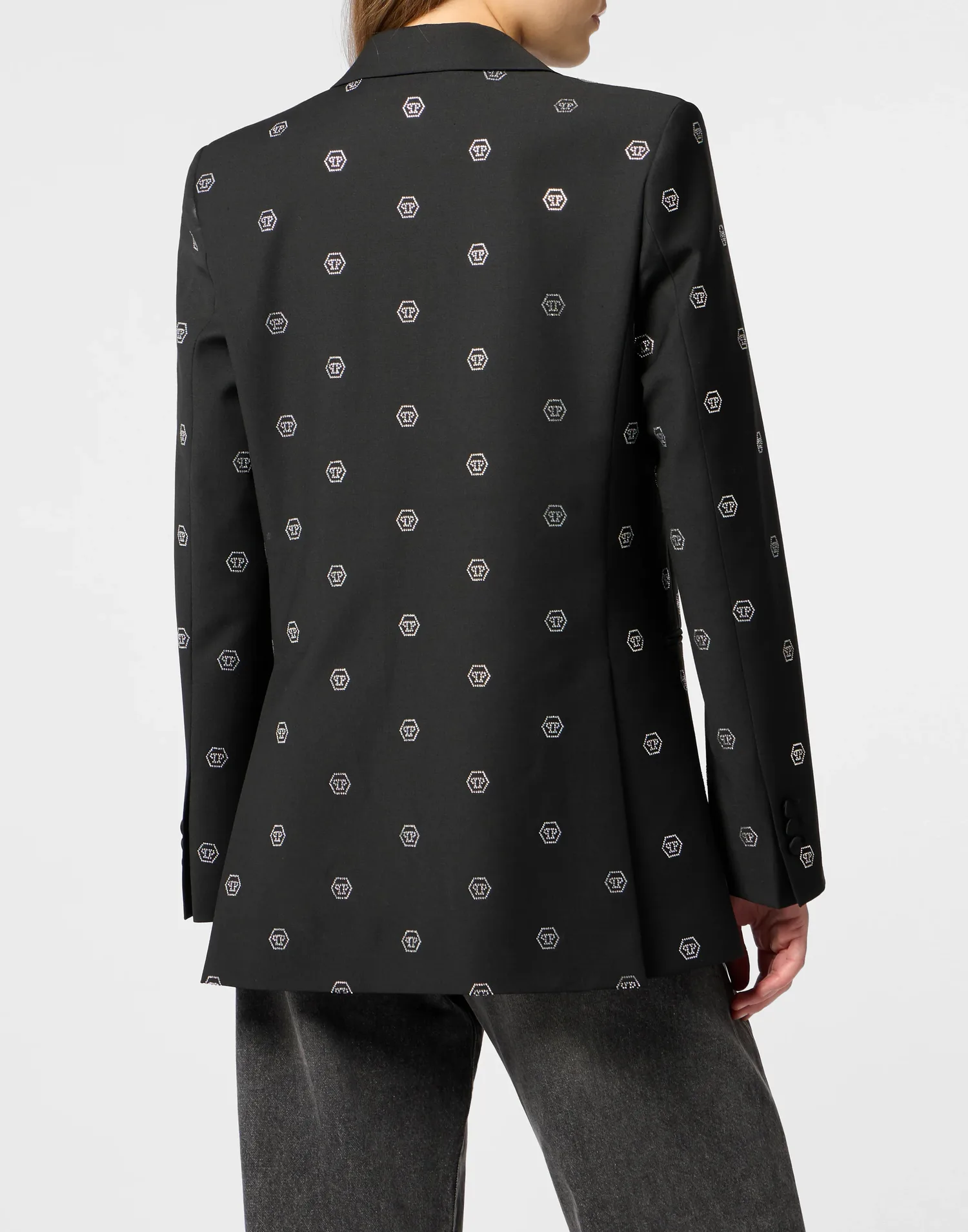 Блейзер в стиле бойфренда с монограммой и стразами Philipp Plein