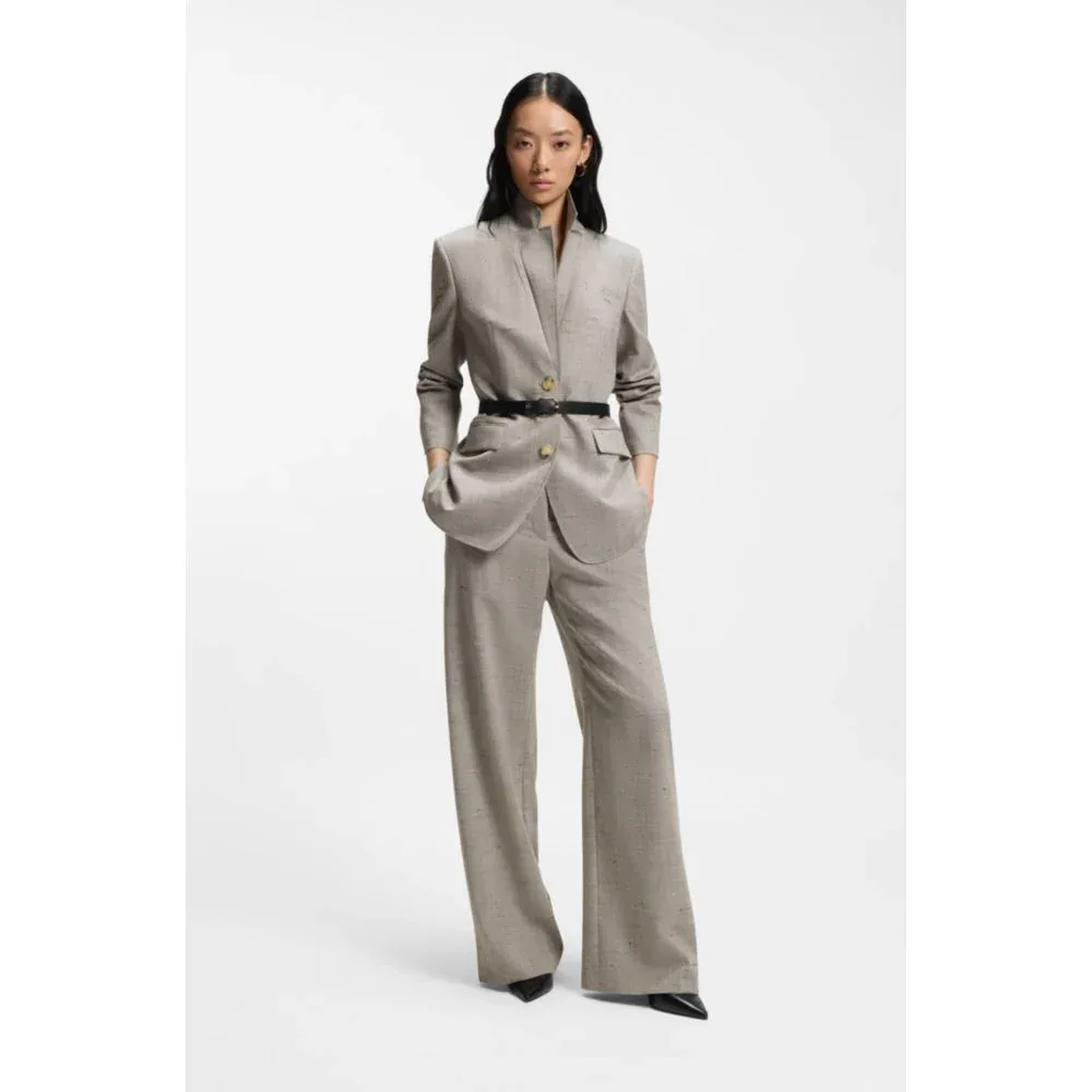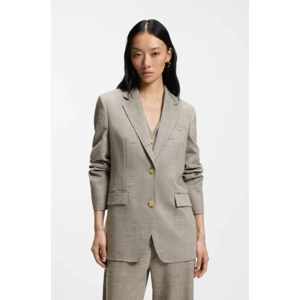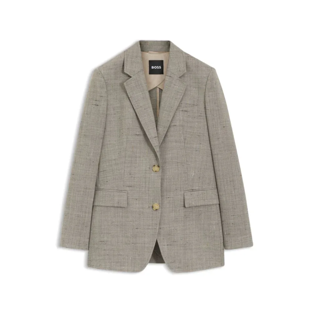 Этот женский блейзер от BOSS, сшитый по фигуре, имеет прямой крой и застегивается на две пуговицы. Он изготовлен из смесовой ткани, богатой натуральной шерстью. Имеет едва заметный микроузор.