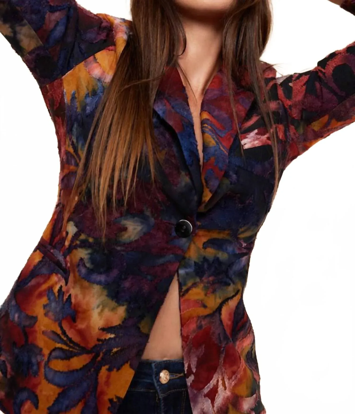 Блейзер с цветочным принтом в винном цвете, с эффектом выгорания Oolala