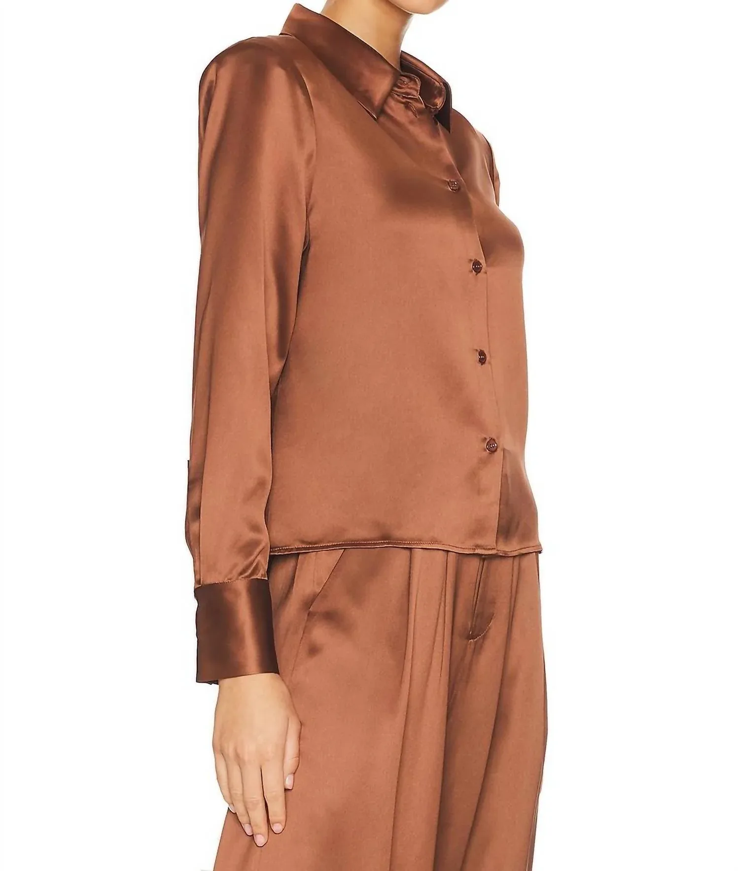 Эта рубашка на пуговицах удобна и элегантна одновременно. Представляем блузку Tegan Button Down от Nonchalant Label - изысканное дополнение песочного оттенка, идеально подходящее для вашей осенней коллекции. Эта блузка с длинными рукавами излучает элегантность благодаря утонченному воротнику и однотонному узору. Состав: 73% ацетат, 27% полиэстер. Застежка: пуговицы. Уход: только химчистка. Идеально подходит для торжественных мероприятий, воплощает в себе тренд на сдержанную роскошь этого сезона.