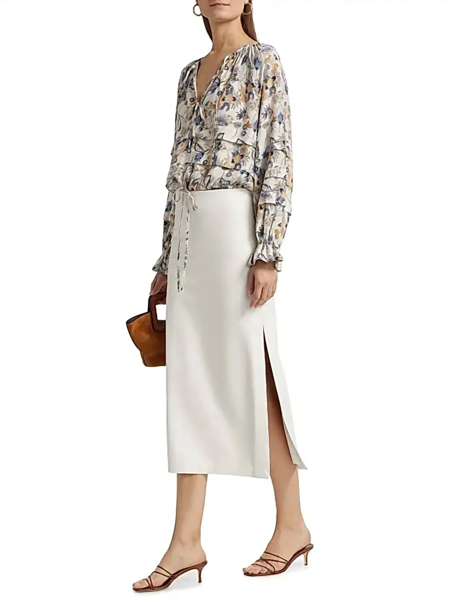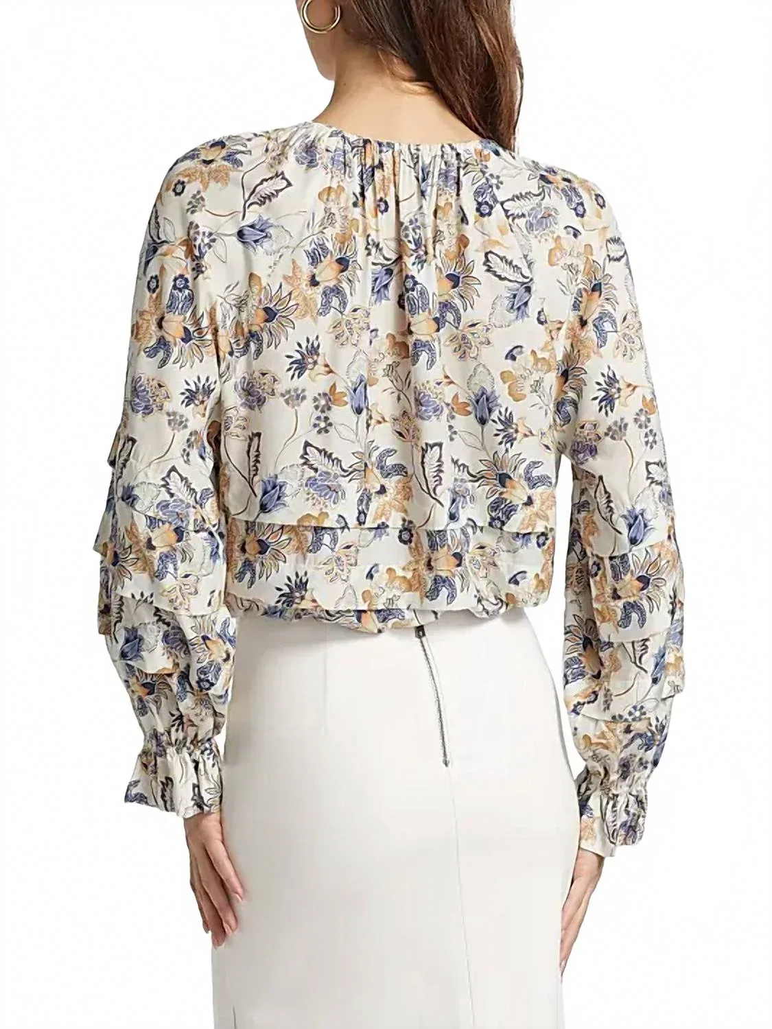 Эта романтичная блузка украшена нежным цветочным принтом и элегантным воротником-завязкой, придающим ей женственный вид. Длинные рукава и мягко расклешенные манжеты обеспечивают грациозность движений и изысканный стиль. Удобный силуэт, позволяющий легко надевать блузку, выполнен из роскошной смеси 69% вискозы Ecovero и 31% шелка, что делает ее стильным и одновременно непринужденным дополнением вашего гардероба.