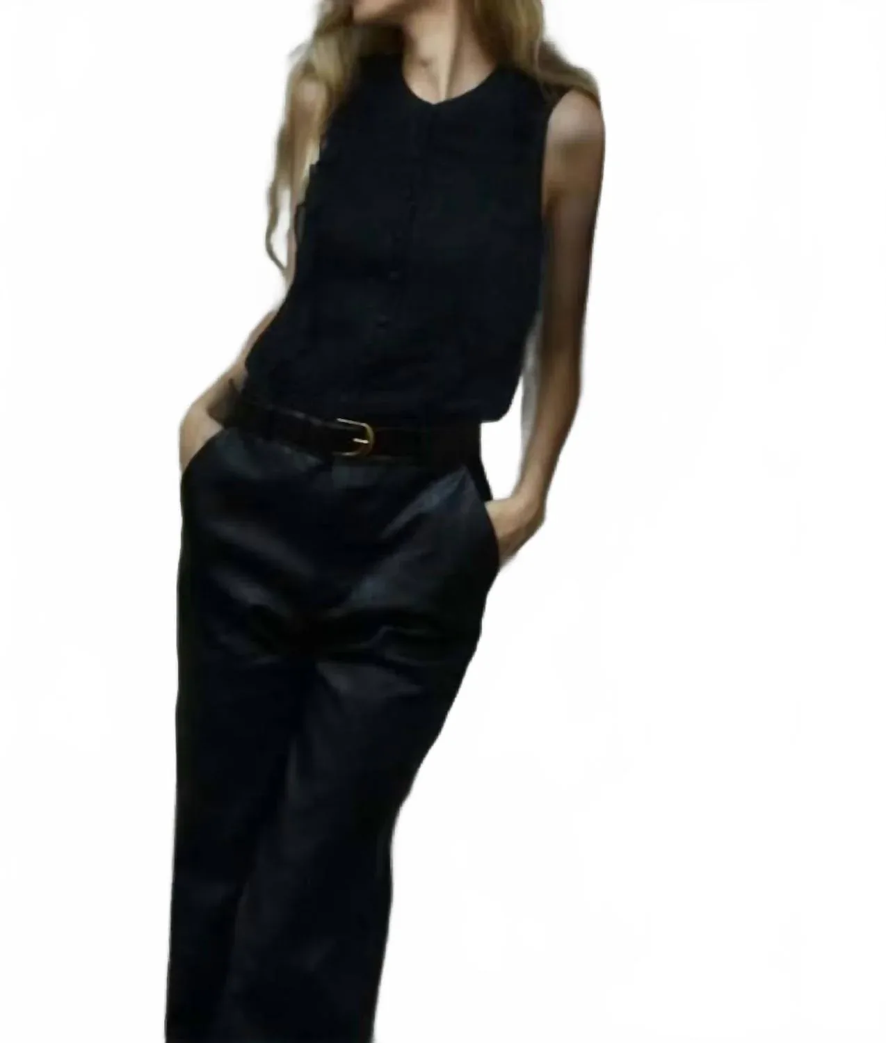 Блузка без рукавов с оборками, черная Frame
