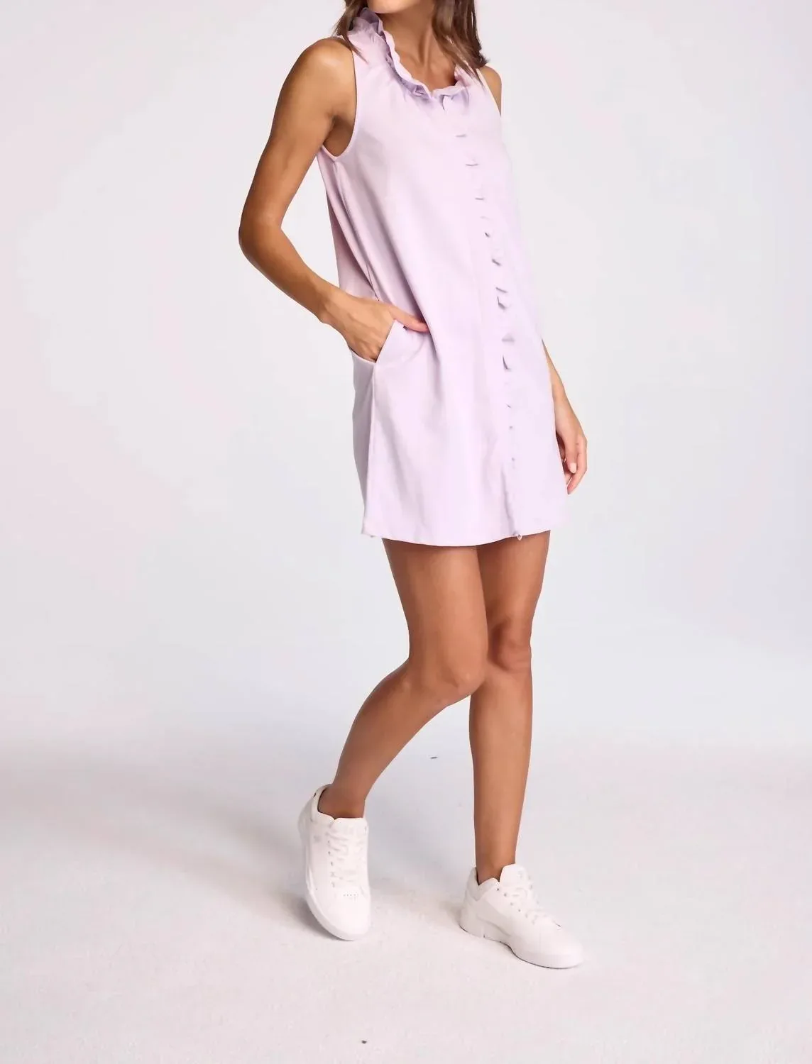 Короткое и воздушное платье для теплых дней. Платье Boston от Sundays - это роскошное мини-платье без рукавов нежного оттенка Petal, сшитое из фирменной ткани класса люкс. Силуэт рубашки дополнен оборкой и удобной застежкой на пуговицы, длина платья - до середины бедра. Платье разработано с учетом универсальности: оно имеет карманы и вырез-лодочку. Уход прост: машинная стирка в холодной воде с вещами аналогичного цвета, сушка в барабане при низкой температуре. Модель носит размер XS (рост 178 см, обхват груди 81 см, талия 63 см, бедра 89 см).