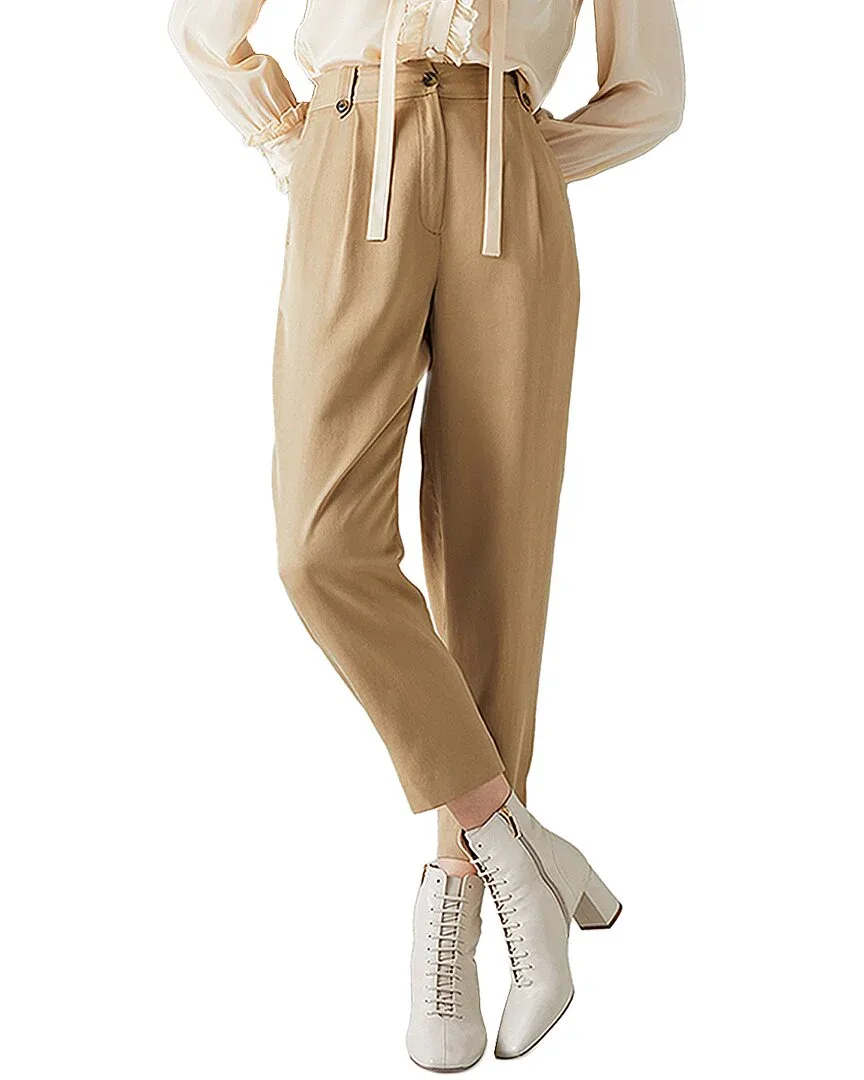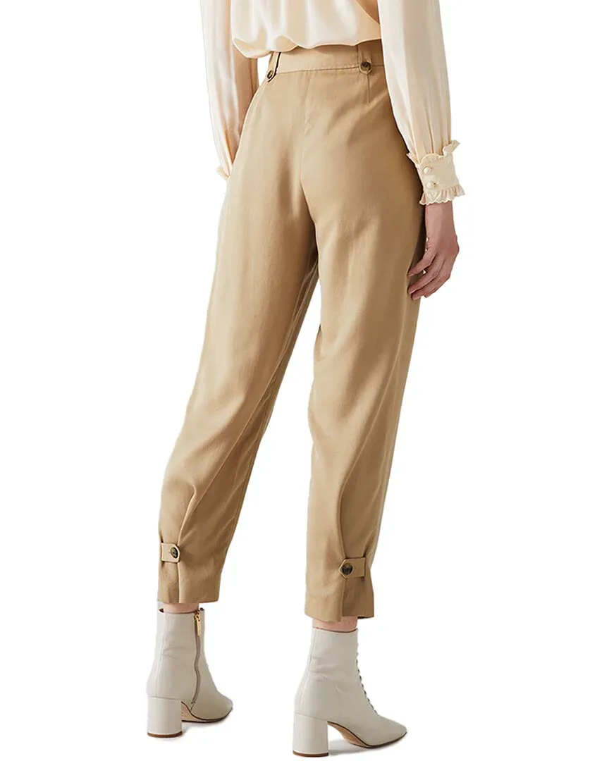 Представляем брюки LK Bennett Amy - идеальное сочетание элегантности и комфорта для современной женщины. Эти брюки верблюжьего цвета изготовлены из роскошного материала Tencel, обеспечивающего бархатисто-мягкое ощущение на коже. Модель имеет свободный крой с передними складками и зауженными штанинами, украшенными пуговицами для изысканного вида. Застежка на пуговицы и молнию делают эти брюки одновременно стильными и практичными. Сочетайте их с красивой блузкой для шикарного образа сейчас, а в прохладную погоду - с трикотажным свитером. Изготовленные из 100% лиоцелла, эти брюки можно стирать в машине, и они импортированы для обеспечения высочайшего качества. Обновите свой повседневный гардероб с помощью стильных брюк LK Bennett Amy уже сегодня.