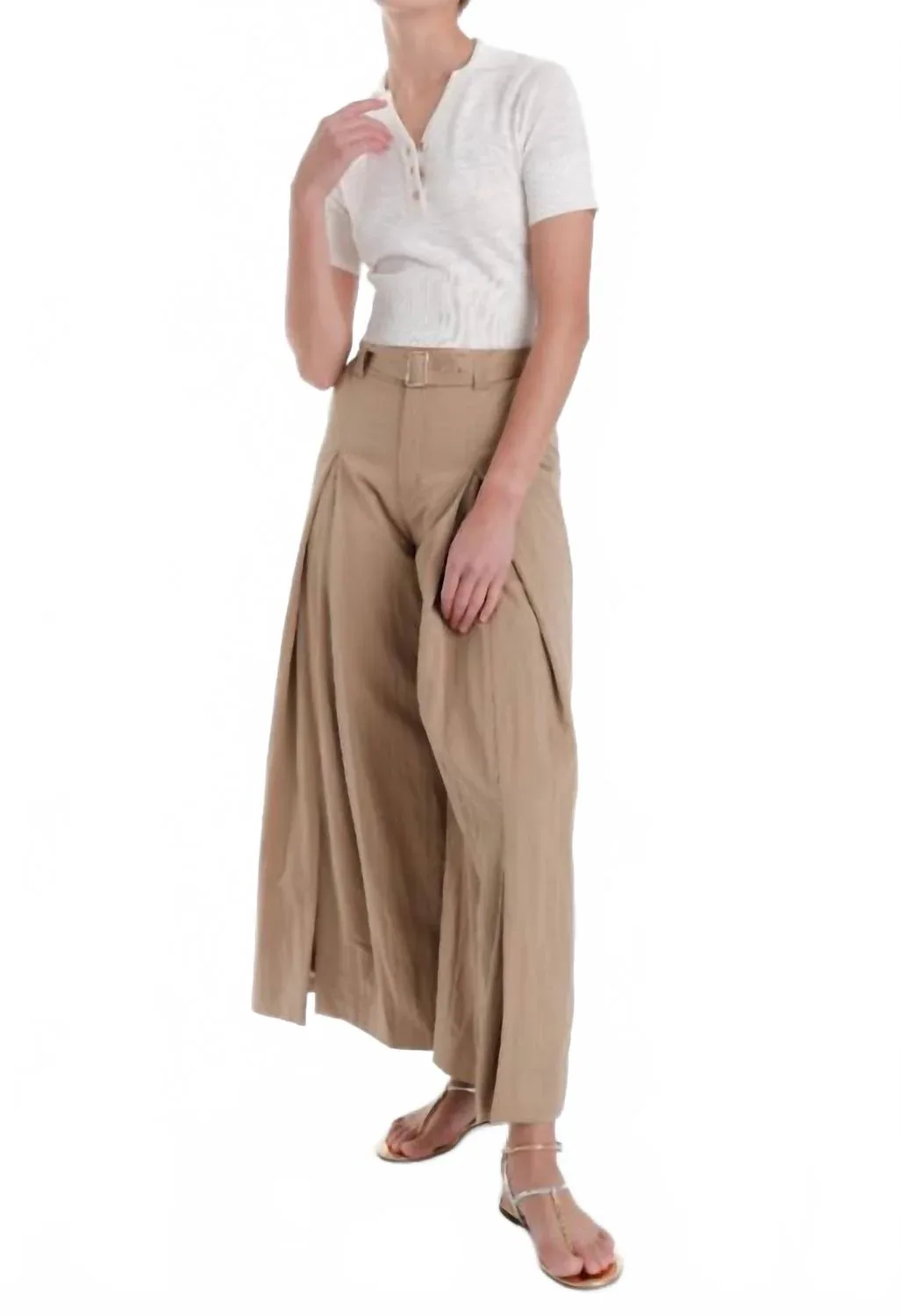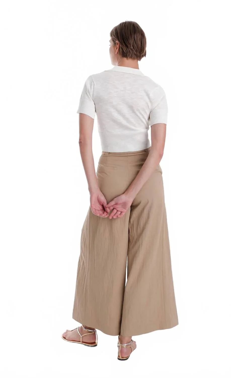 Откройте для себя брюки Karina Grimaldi Anna - стильное дополнение к любому минималистичному гардеробу благодаря широким штанинам и высокой посадке. Изготовленные из мягкого и дышащего вискозного волокна, эти бежевые брюки имеют свободный крой, что делает их идеальными для весенних путешествий и позволяет сочетать их с кроссовками, сандалиями или туфлями на каблуках. Отсутствие карманов обеспечивает элегантный силуэт, а тип застежки не указан, но удобный крой гарантирует, что вы будете носить их снова и снова. Ощутите непринужденную элегантность с этой универсальной вещью, созданной для комфорта и стиля.