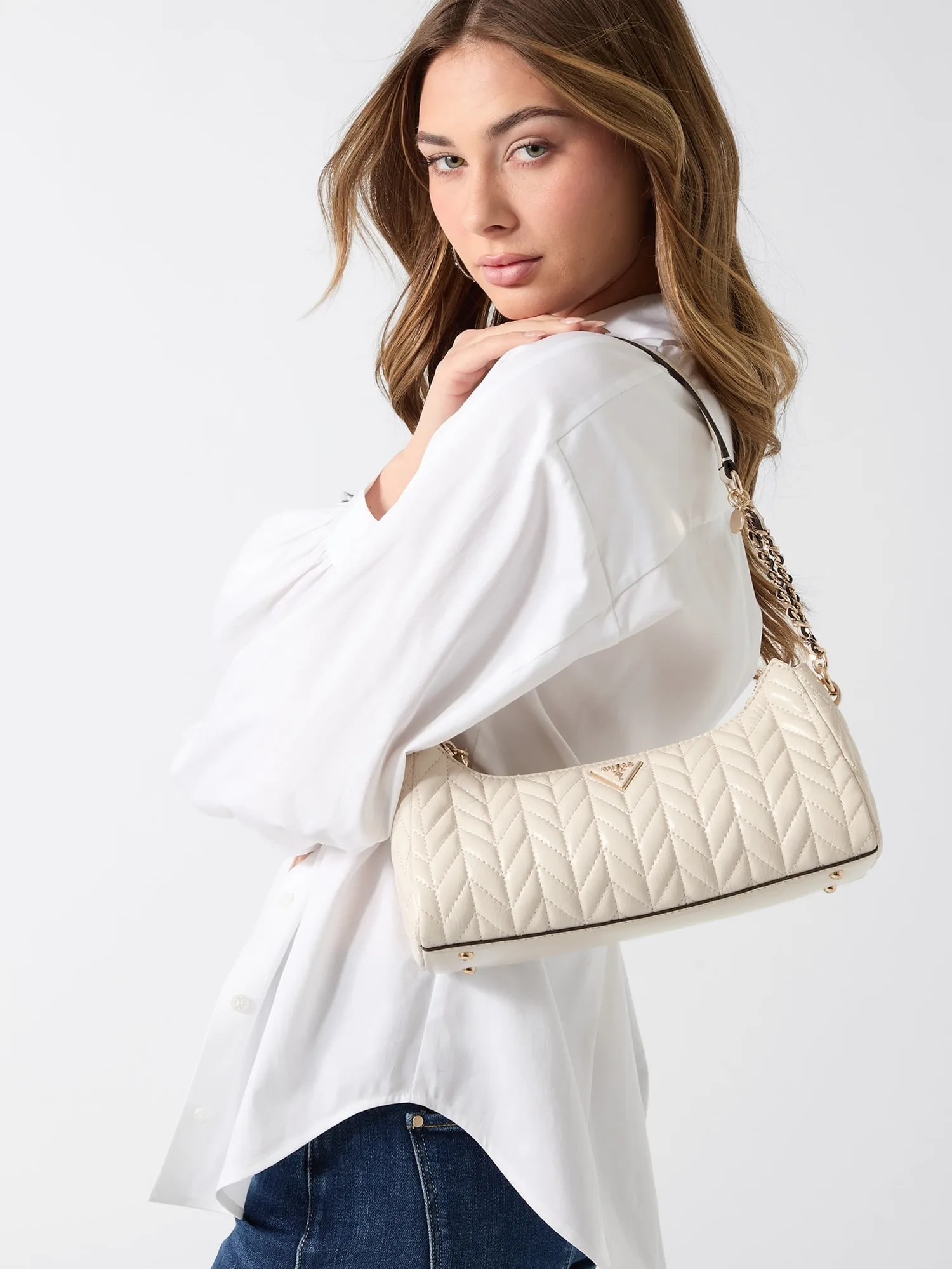 Эта сумка через плечо имеет объемный силуэт с простежкой, создающей элегантную атмосферу.