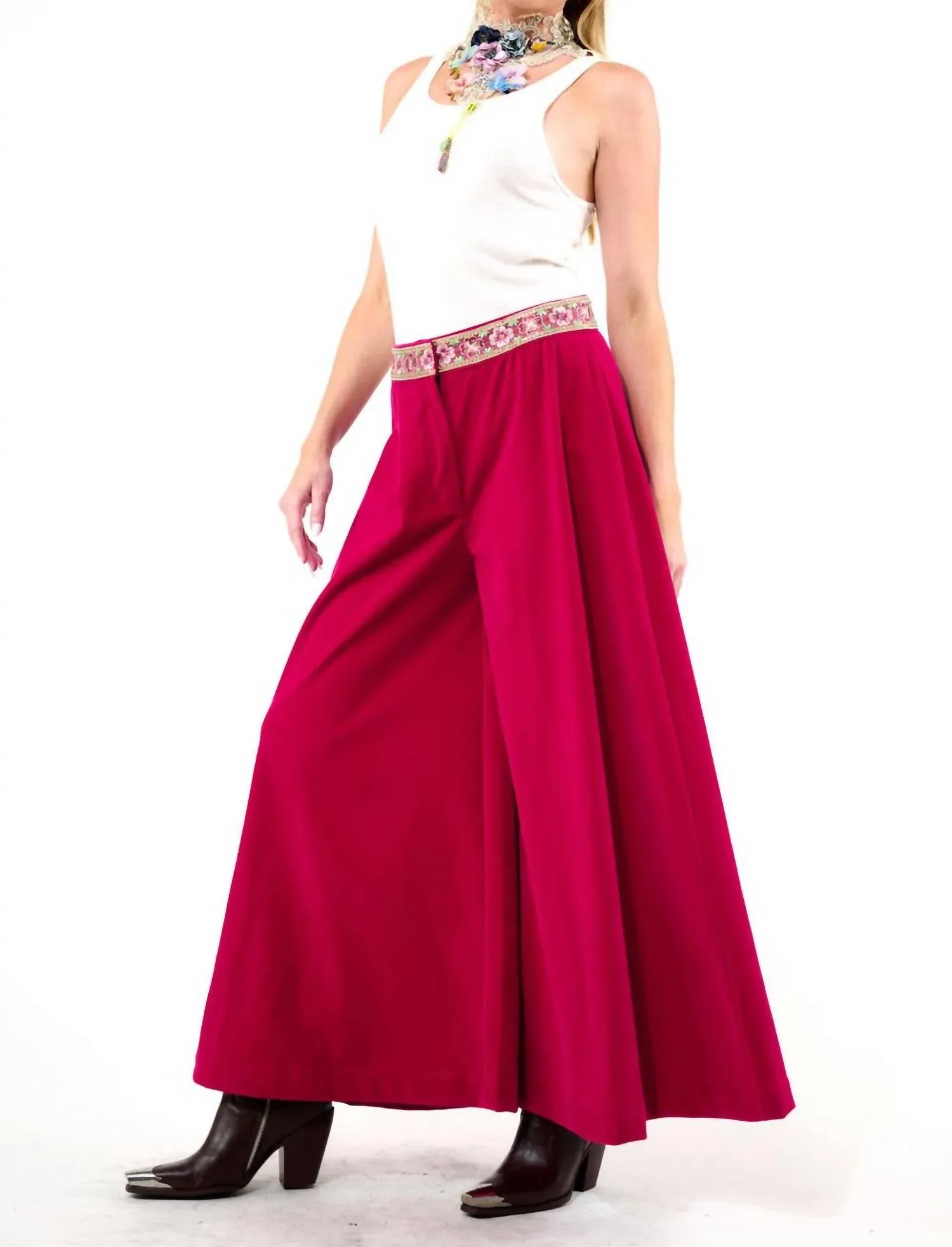 Создайте смелый образ с помощью брюк Jovie от Aratta, воплощения максималистской элегантности. Эти широкие брюки цвета фуксии изготовлены из роскошного полиэстера и украшены изысканной вышивкой на поясе, идеально подходящей для праздничной вечеринки или празднования китайского Нового года. Разработанные для женщин, эти брюки сочетают в себе однотонный крой, практичные карманы и застежку-молнию. Рекомендуется только химчистка.