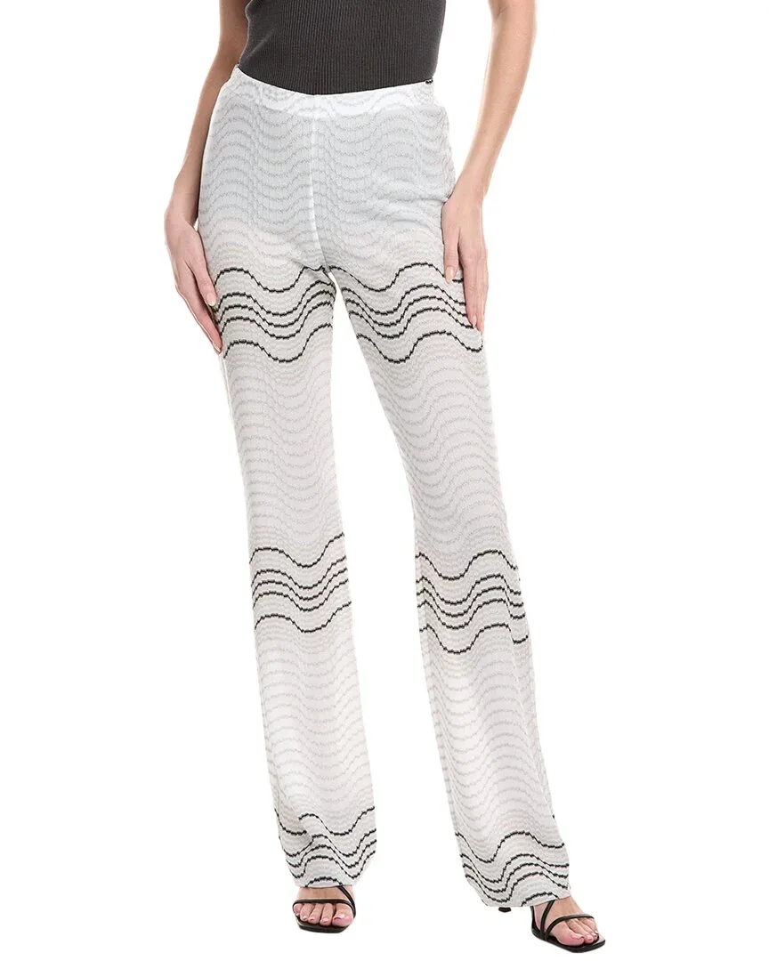 Представляем брюки M Missoni - стильное дополнение к вашему повседневному гардеробу. Эти брюки украшены потрясающим белым/серебристым металлизированным шевронным узором и имеют эластичный пояс для максимального комфорта. Длина внутреннего шва составляет приблизительно 36 дюймов, а высота посадки - 11,5 дюймов, что делает эти брюки идеальными для любого случая. Изготовленные в Италии из 84% вискозы и 16% металлизированного волокна, эти брюки непременно привлекут внимание. Сочетайте их с любимым топом и аксессуарами для создания эффектного образа. Обновите свой гардероб фирменной итальянской трикотажной одеждой M Missoni ярких цветов и фактур.