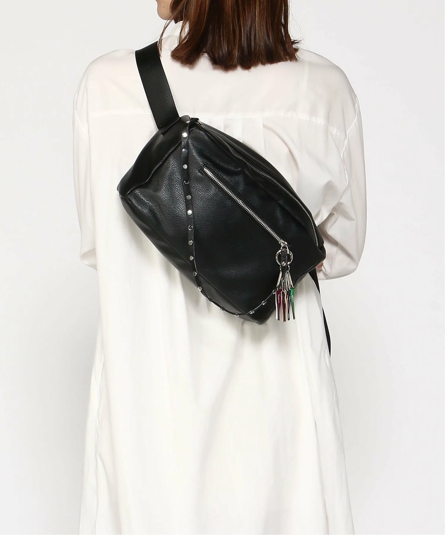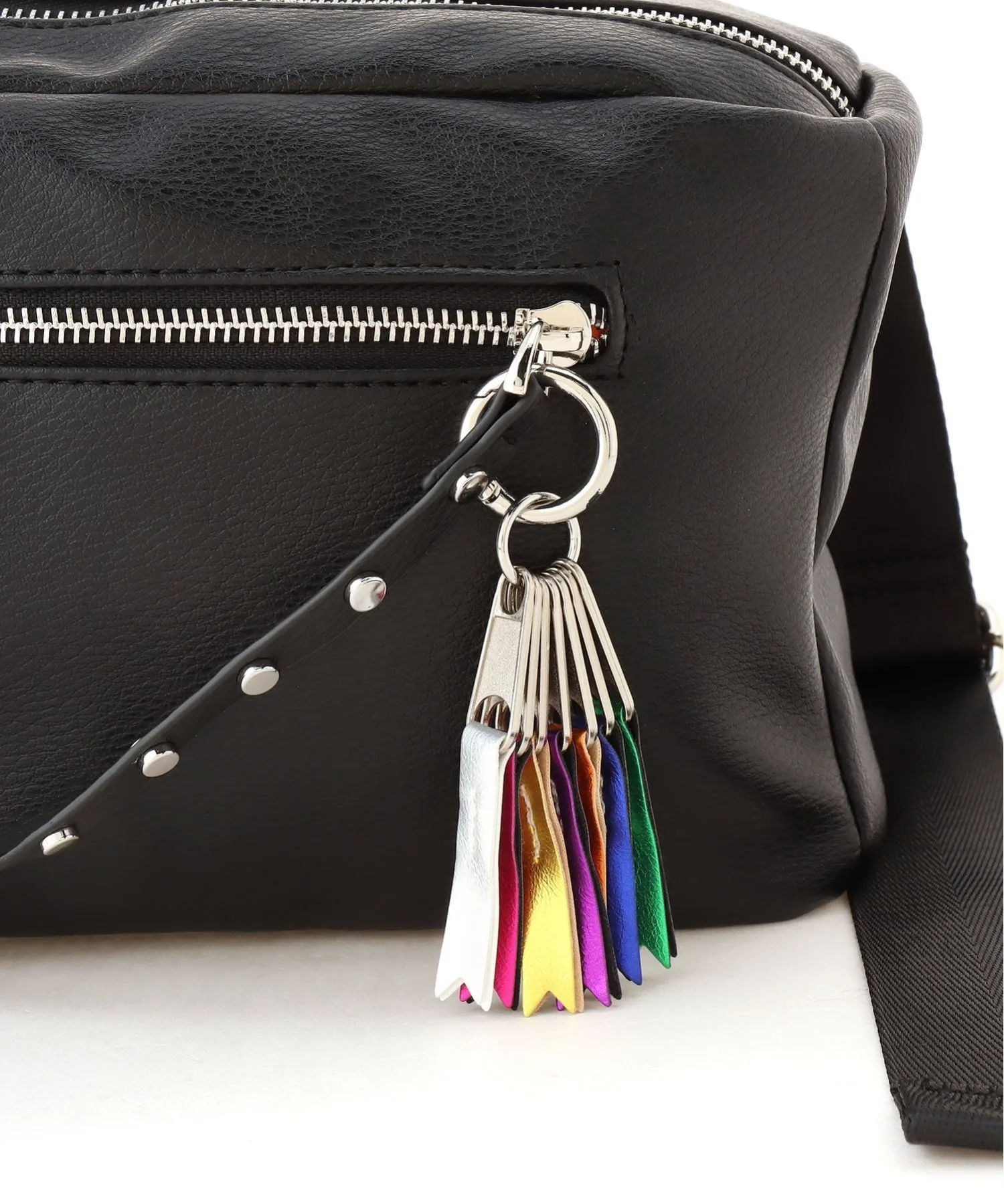 Эта сумка через плечо изготовлена из мягкого материала, удобна в использовании, а яркие цвета и заклепки внутри служат акцентами.