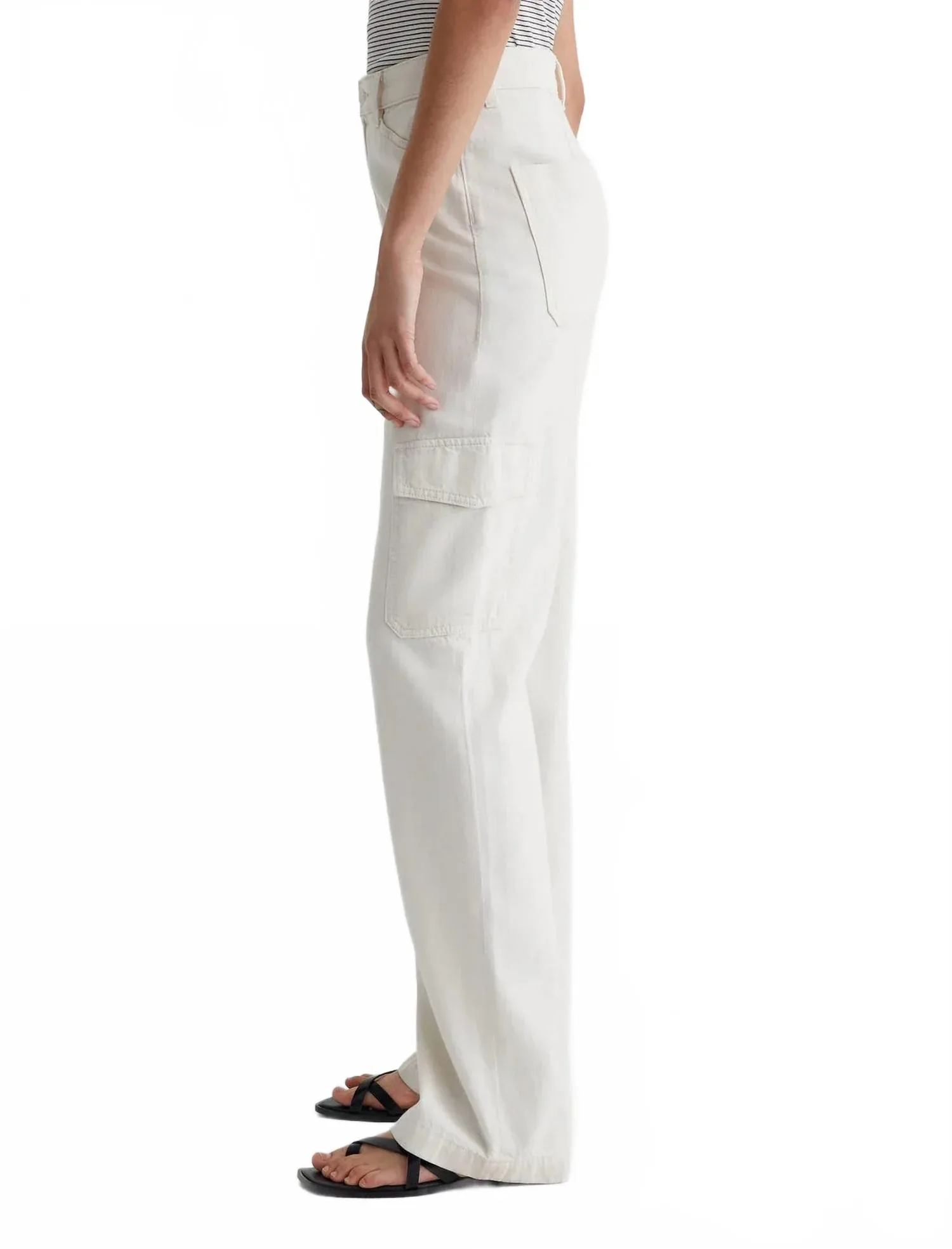 Ощутите практичный шик с брюками-карго AG Jeans Gatina в цвете Opal Stone, изготовленными из джинсовой ткани Hazy Silk Denim плотностью 9,25 унций - роскошной смеси шелка, модала и хлопка. Эти брюки-карго с высокой посадкой имеют длинные, широкие штанины и практичные накладные карманы по бокам, дополненные наклонными боковыми карманами и накладными карманами сзади для удобного хранения вещей. Застежка на пуговицы делает эти брюки минималистичным элементом вашего осеннего гардероба для путешествий.