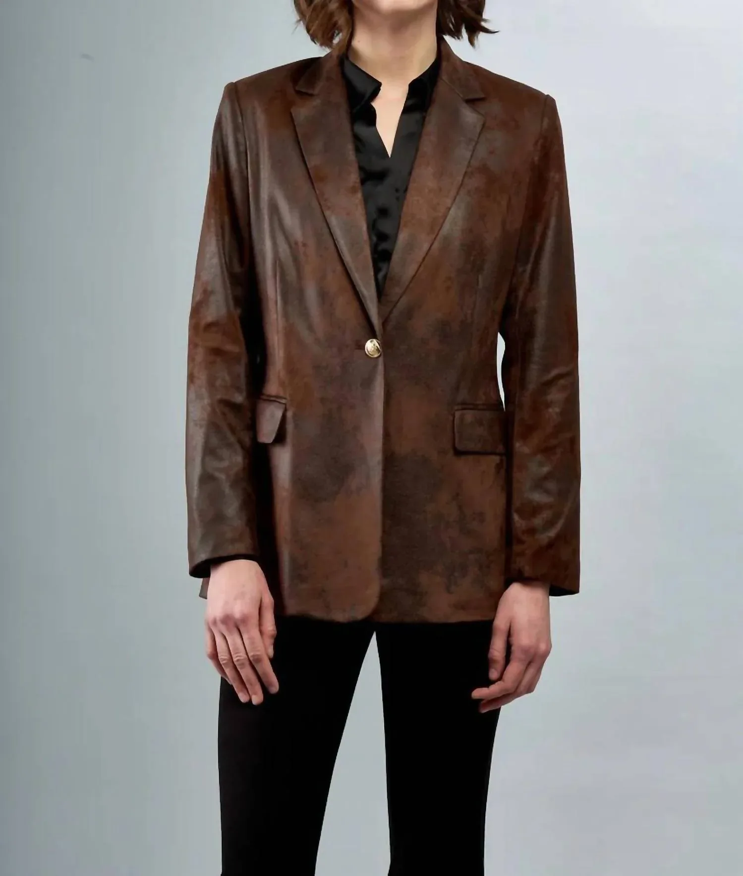 Усовершенствованная версия вашего любимого классического блейзера. Обновите свой гардероб с помощью блейзера Vegan от Insight, сочетающего в себе изысканность и брутальный стиль. Этот блейзер с длинными рукавами в цвете Western Brown имеет застежку на пуговицы и изготовлен из роскошной искусственной кожи, что делает его экологичным выбором. Классический дизайн блейзера обеспечивает универсальность, идеально вписываясь как в деловую, так и в повседневную обстановку благодаря однотонному крою и воротнику. Хотя инструкции по уходу не прилагаются, наличие карманов добавляет функциональности этой элегантной вещи.
