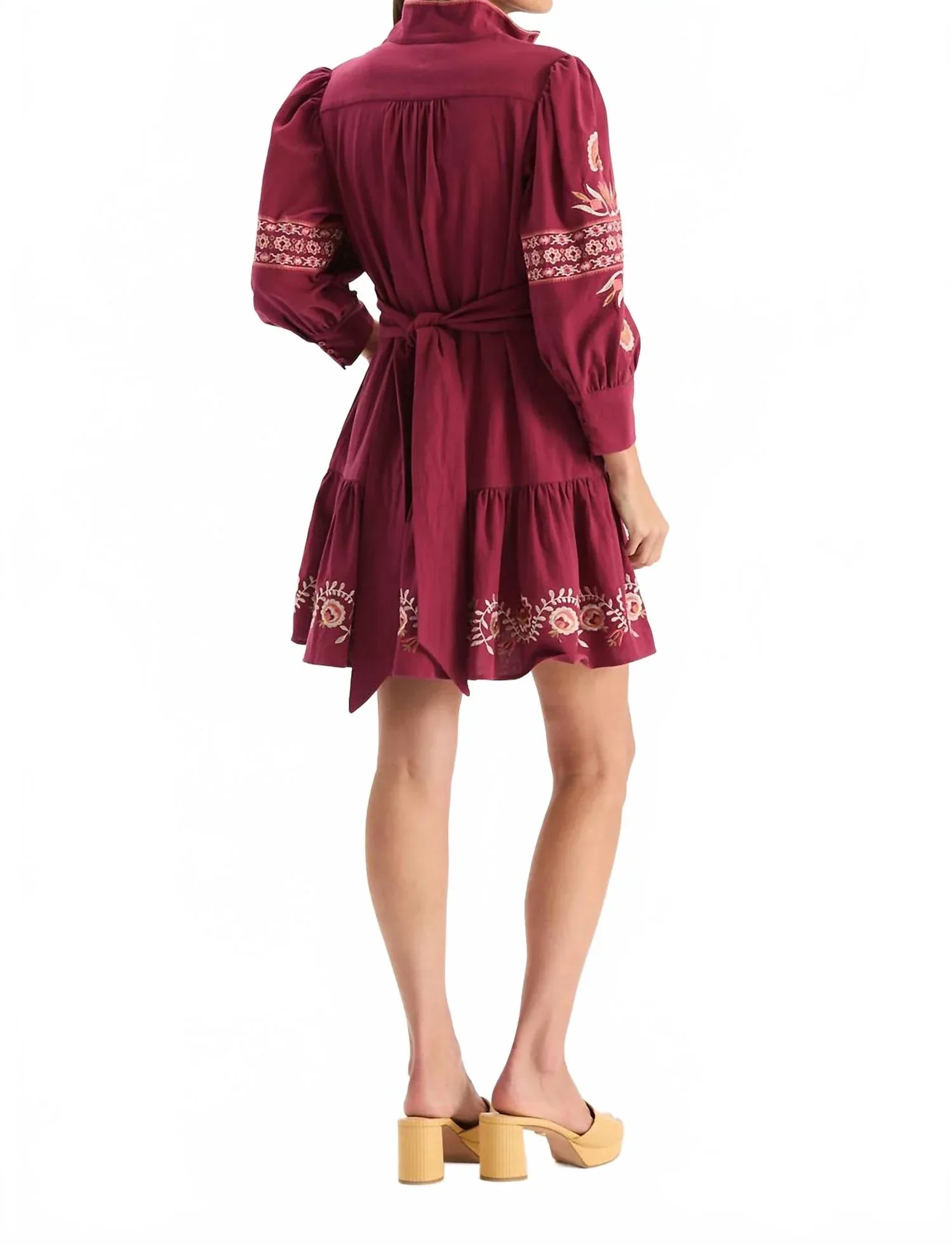 Идеальное мини-платье для теплых месяцев. Обновите свой гардероб с помощью вышитого платья Nikki от Tyler Boe - стильной модели насыщенного анемонового оттенка. Платье имеет рукава три четверти, элегантный воротник-стойку и пояс на талии для идеальной посадки. Изготовленное из 100% хлопка, платье-рубашка имеет красивую драпировку длиной 35 дюймов, украшено замысловатой цветочной вышивкой и оборкой по низу. Застежка - классическая на пуговицах. Рекомендации по уходу: машинная стирка в холодной воде, сушка в расправленном виде.