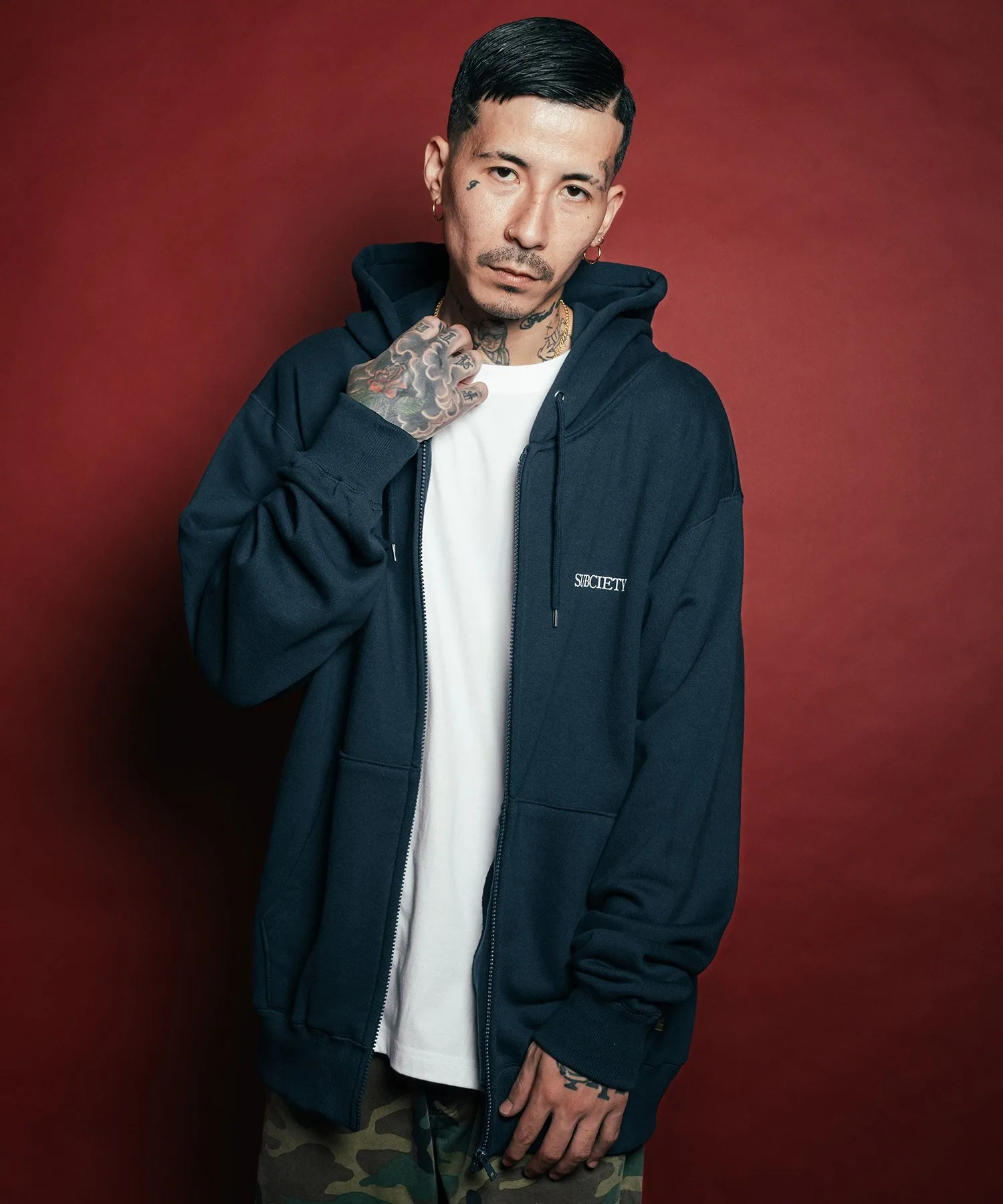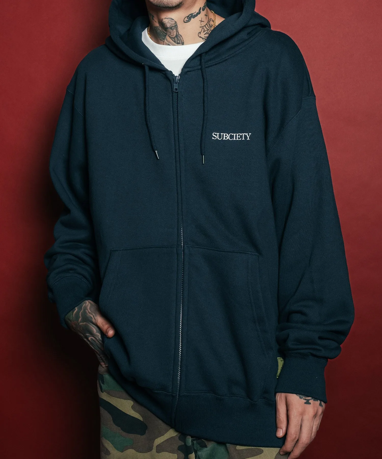 Худи на молнии изготовлено из махровой ткани плотностью 10 унций.