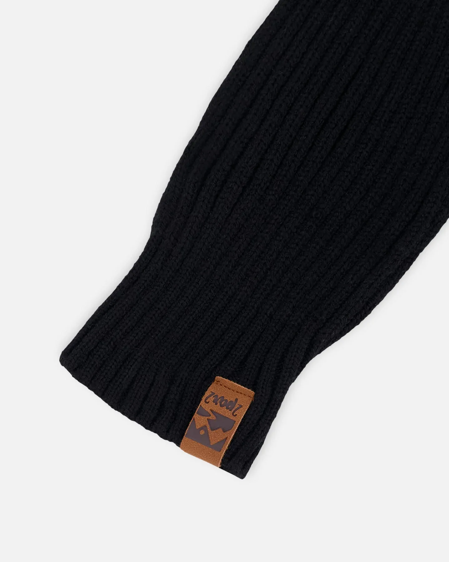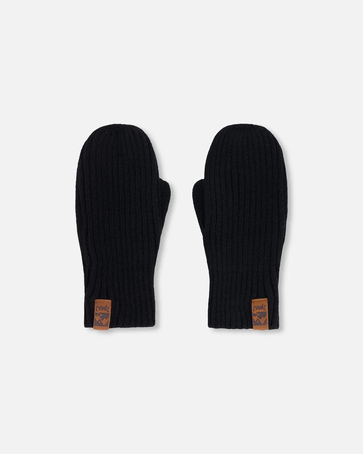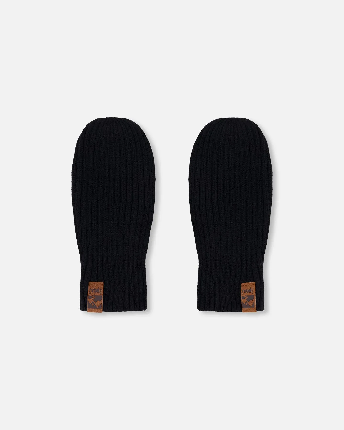 Вязаные варежки в рубчик черного цвета - идеальные уютные аксессуары для маленьких ручек в ветреные дни. Изготовленные из мягкой трикотажной смеси вискозы, полиэстера и нейлона, эти варежки обладают мягкой эластичностью и обеспечивают длительный комфорт. Небольшая этикетка с логотипом на манжете добавляет фирменный штрих Deux par Deux к этому простому, но стильному дизайну - идеально подходящему для повседневной носки.