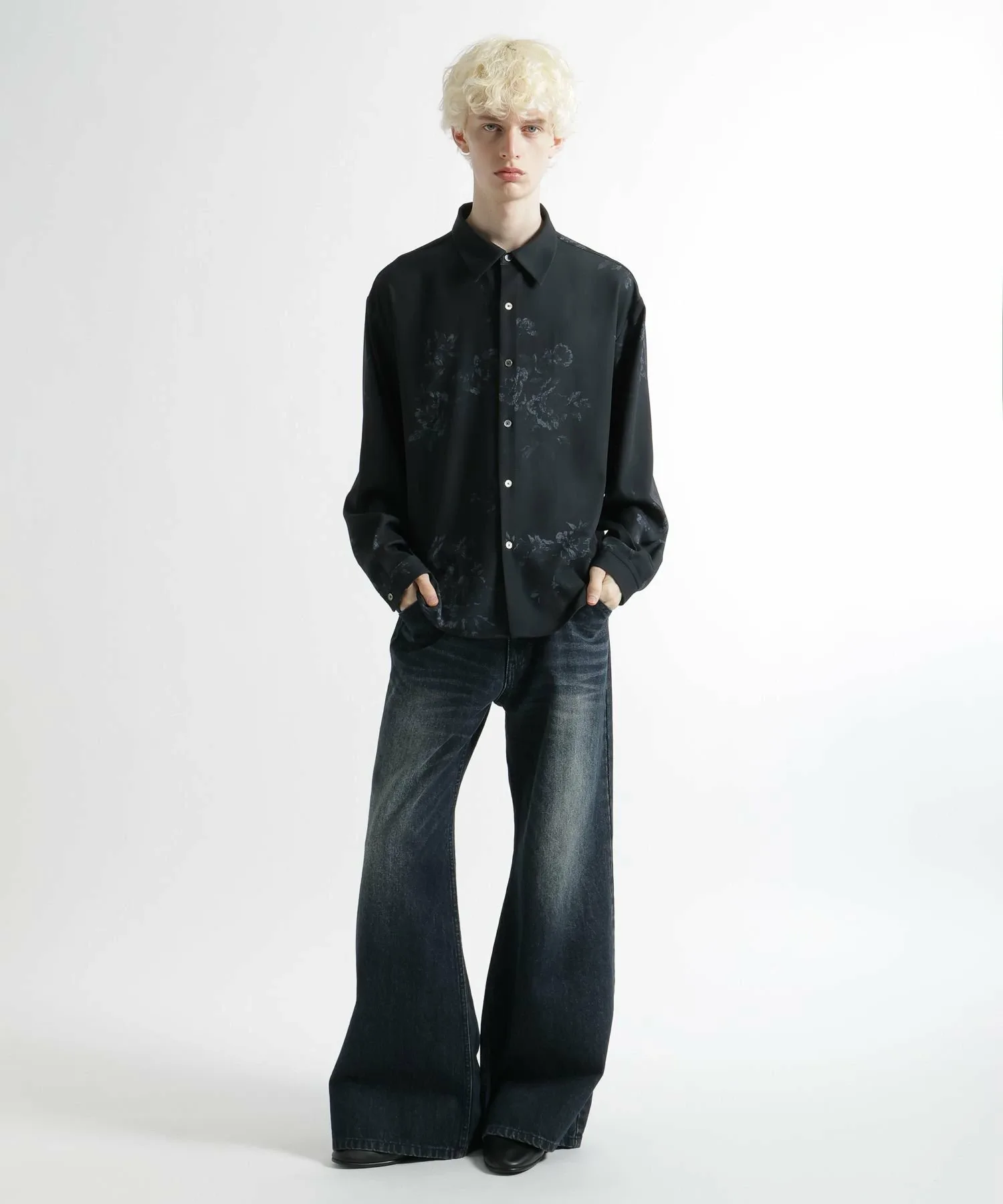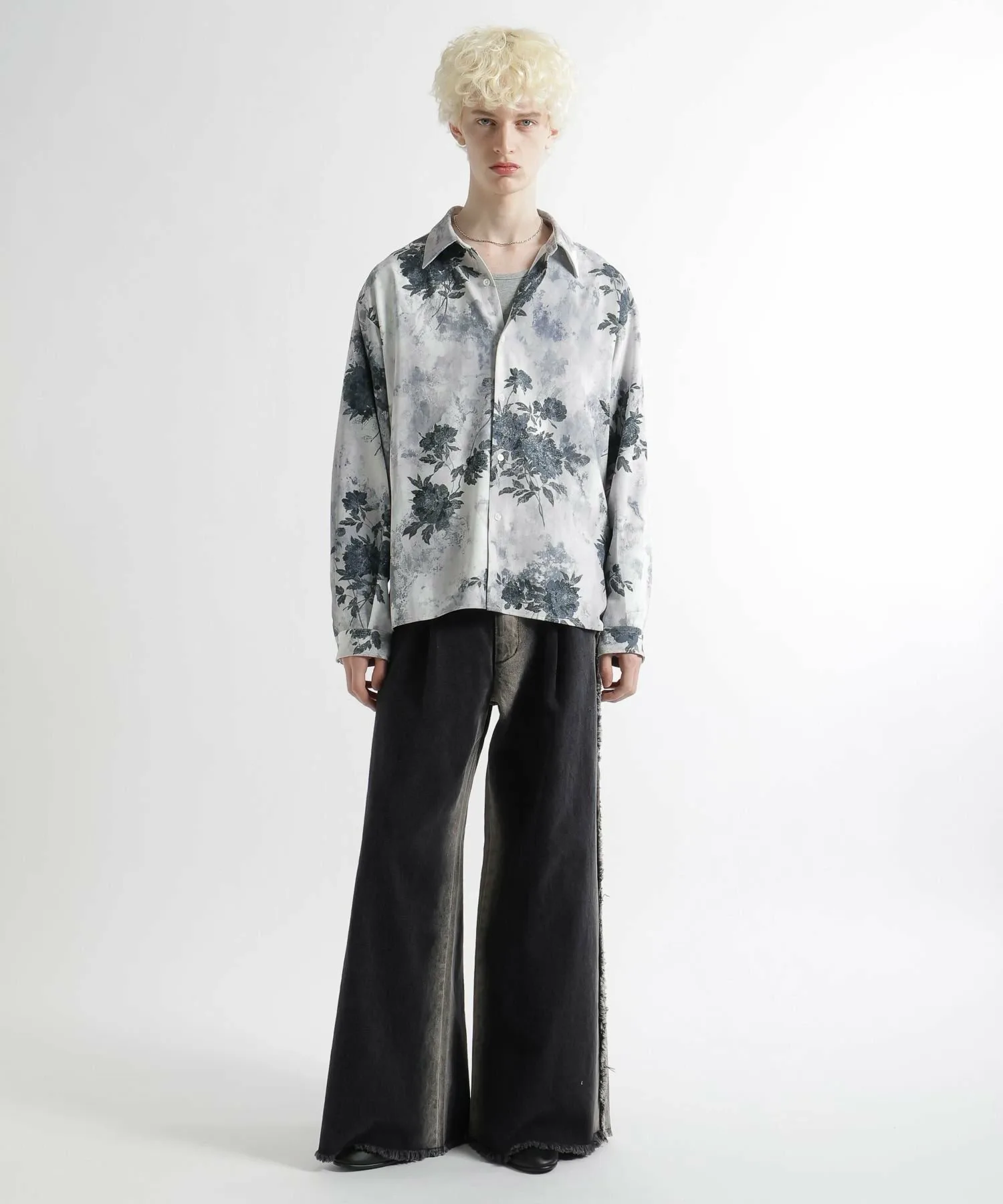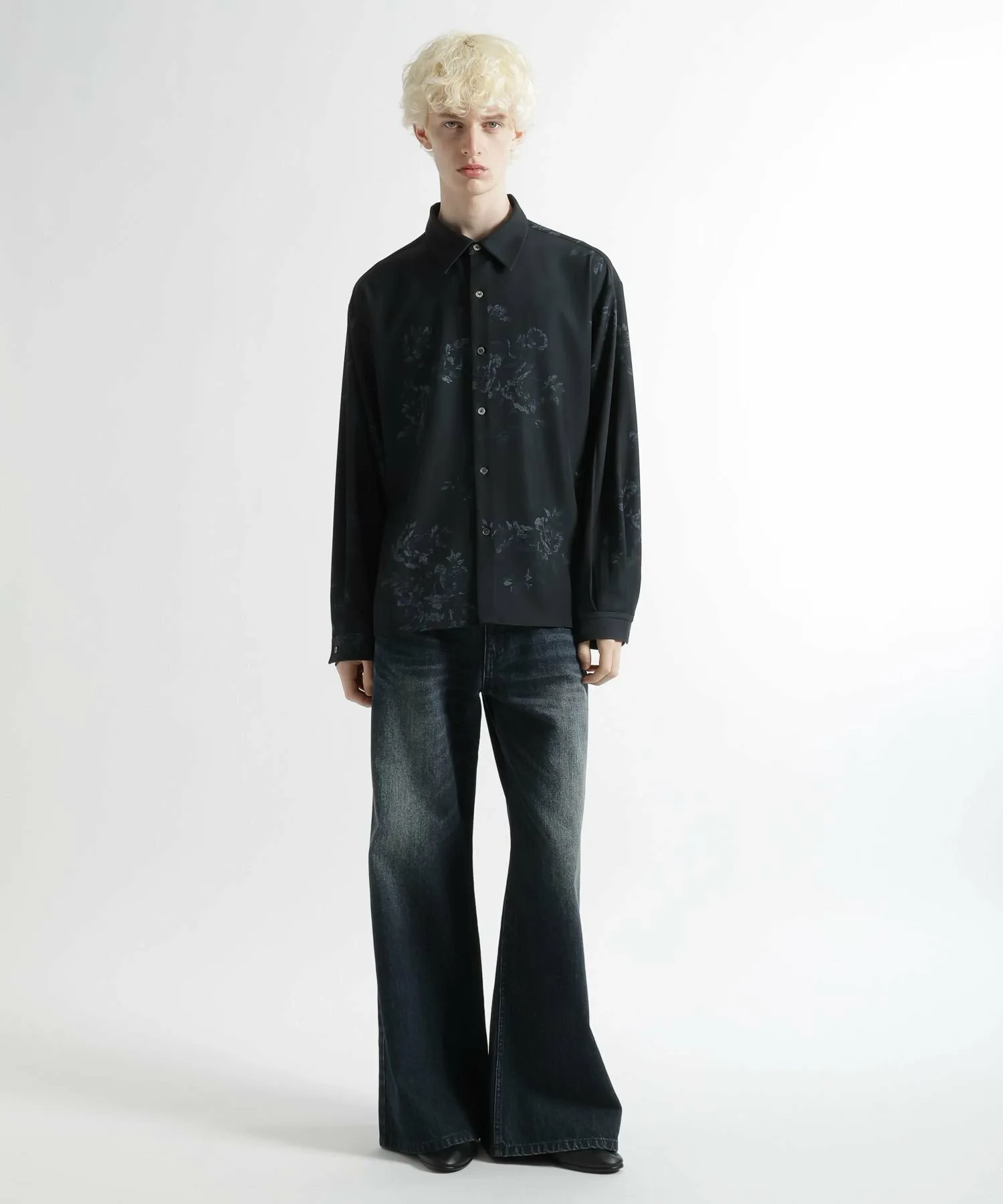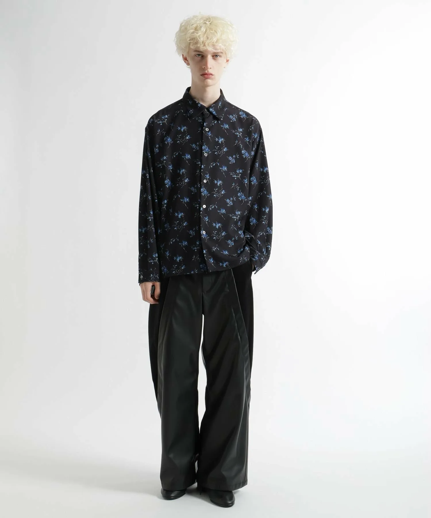 Элегантная рубашка с изысканным, но смелым цветочным рисунком по всей поверхности.