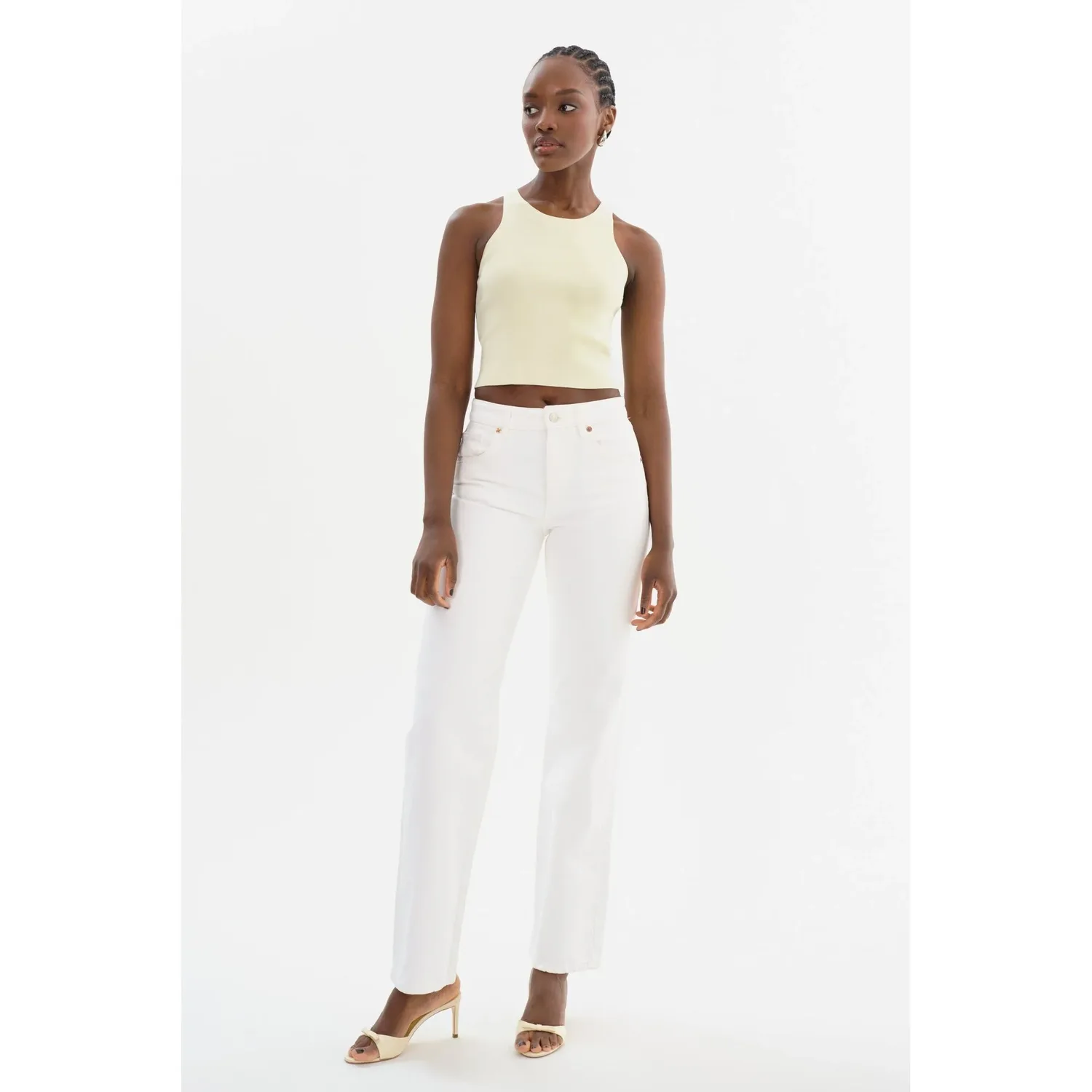 Вязаная майка NEVINA с круглым вырезом и спинкой-борцовкой идеально дополнит ваш летний гардероб. Сочетайте ее с любимыми легкими брюками для создания классического летнего образа или дополните образ верхней одеждой и вашей любимой обувью.