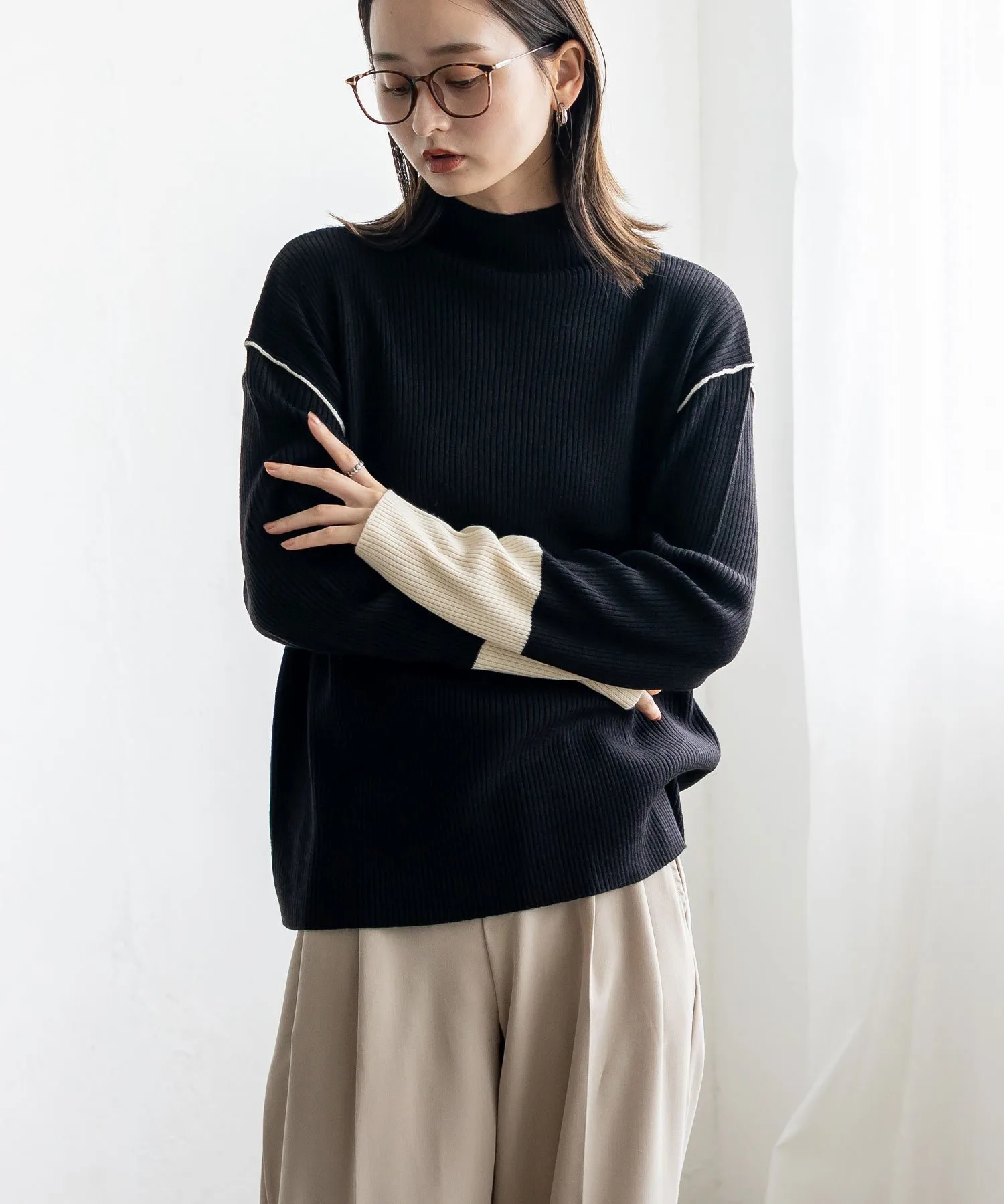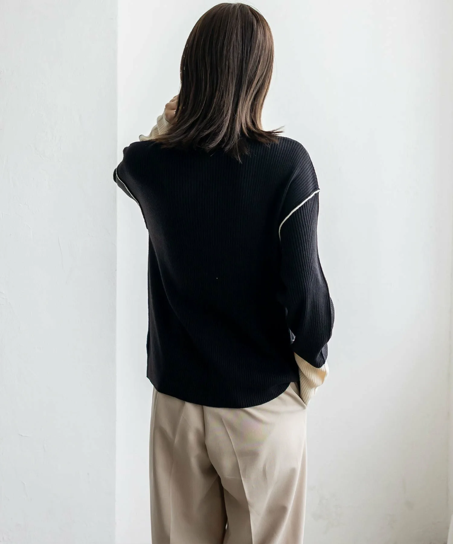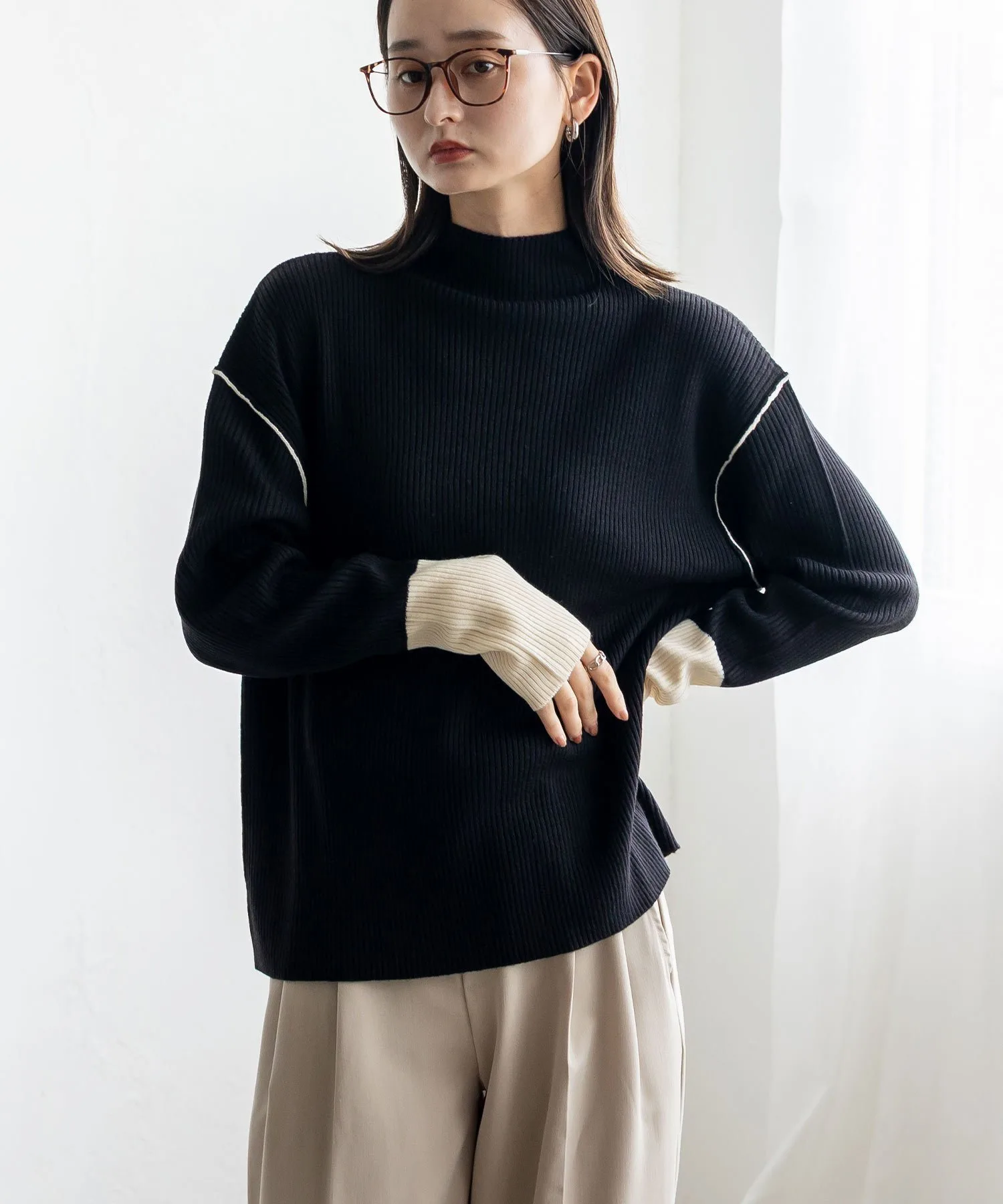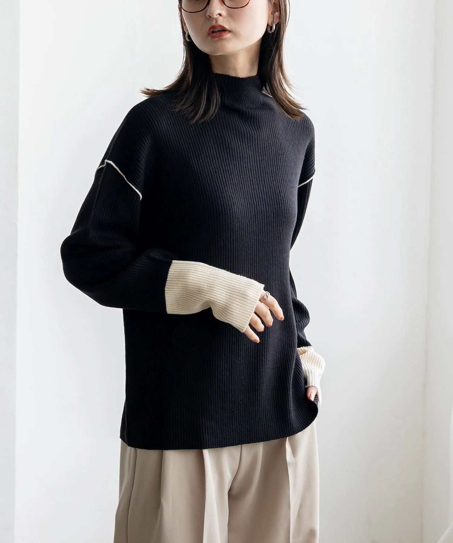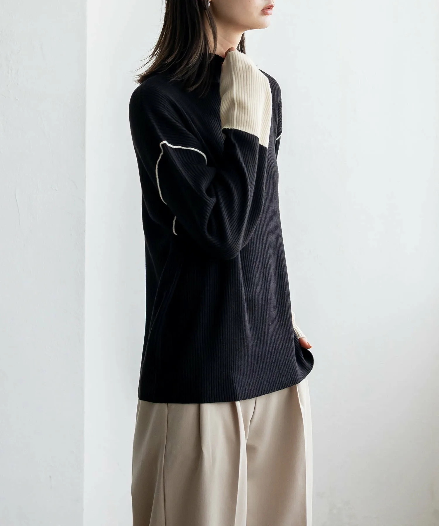 Вязаный топ в рубчик с контрастными манжетами