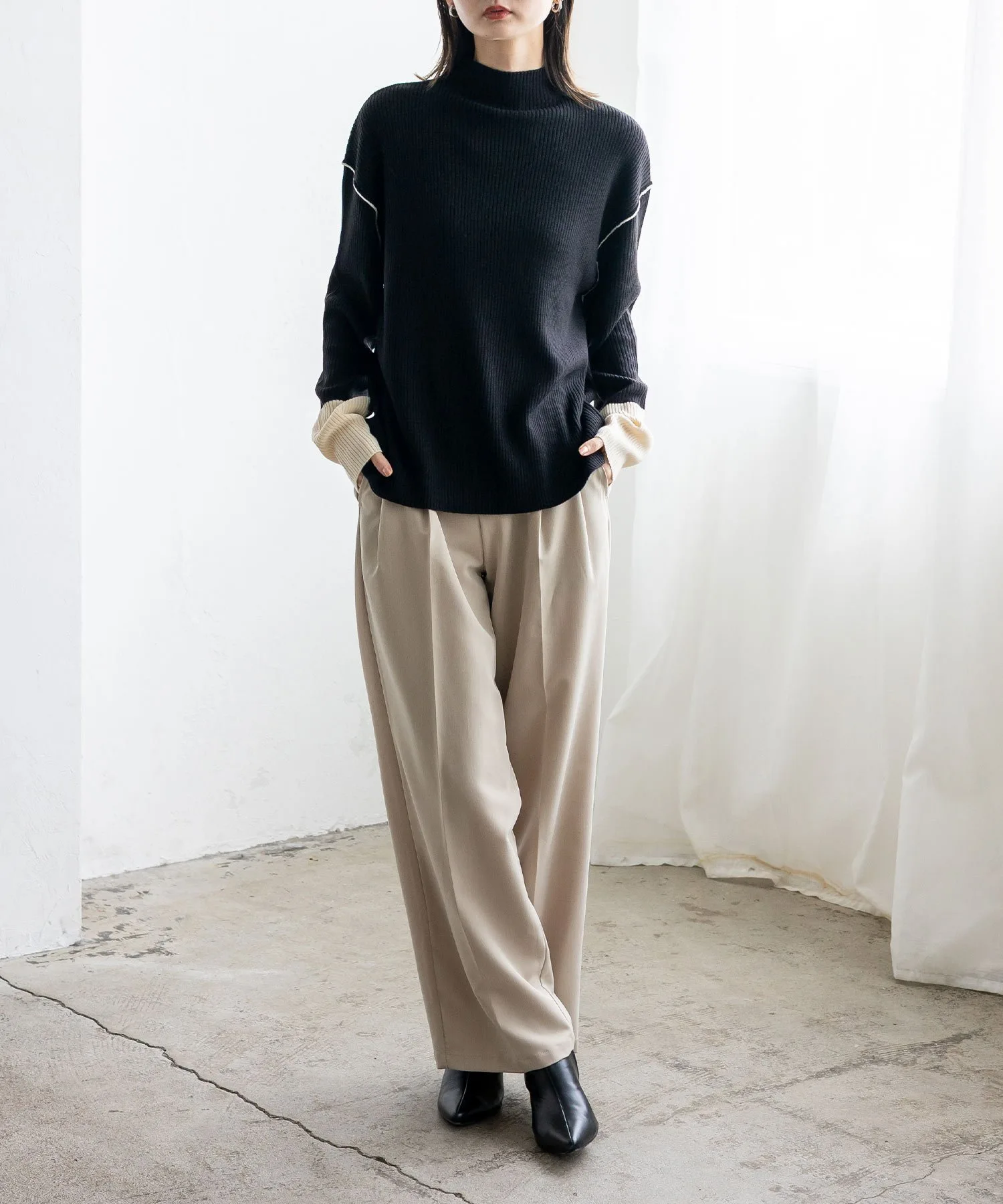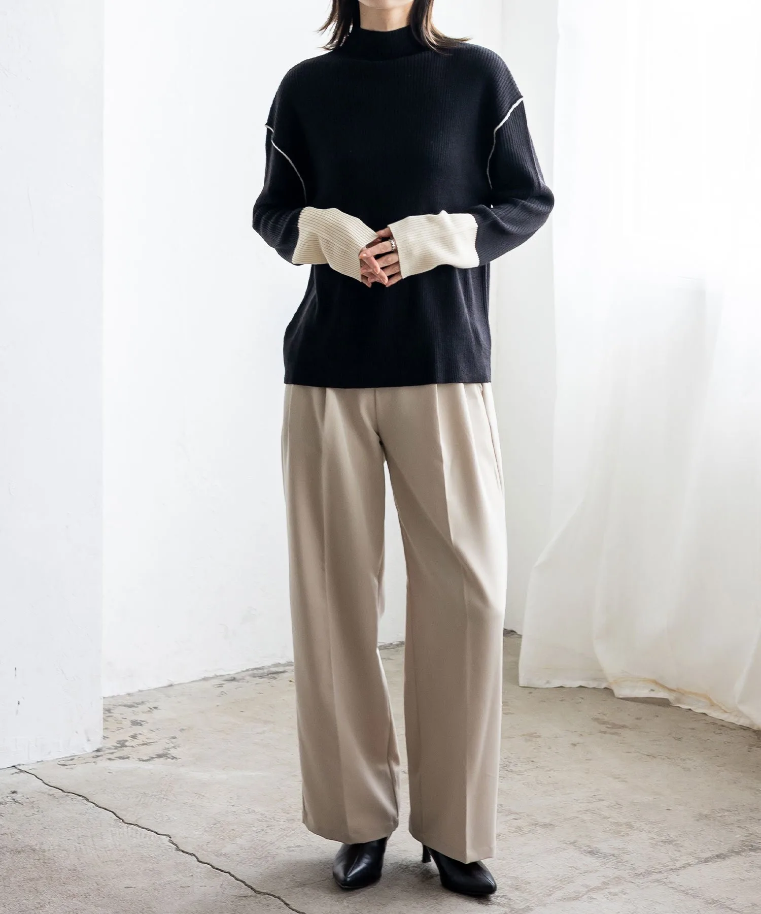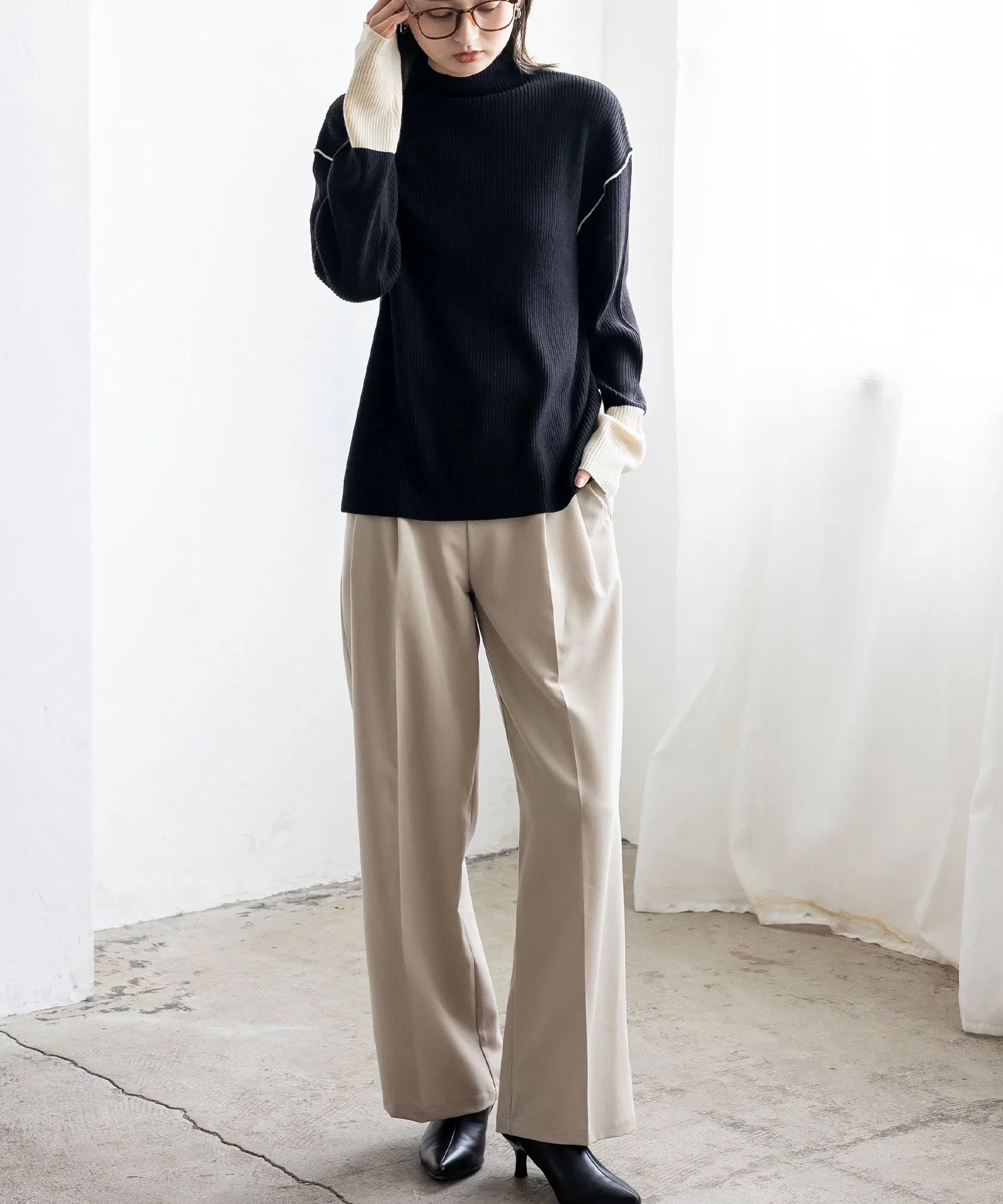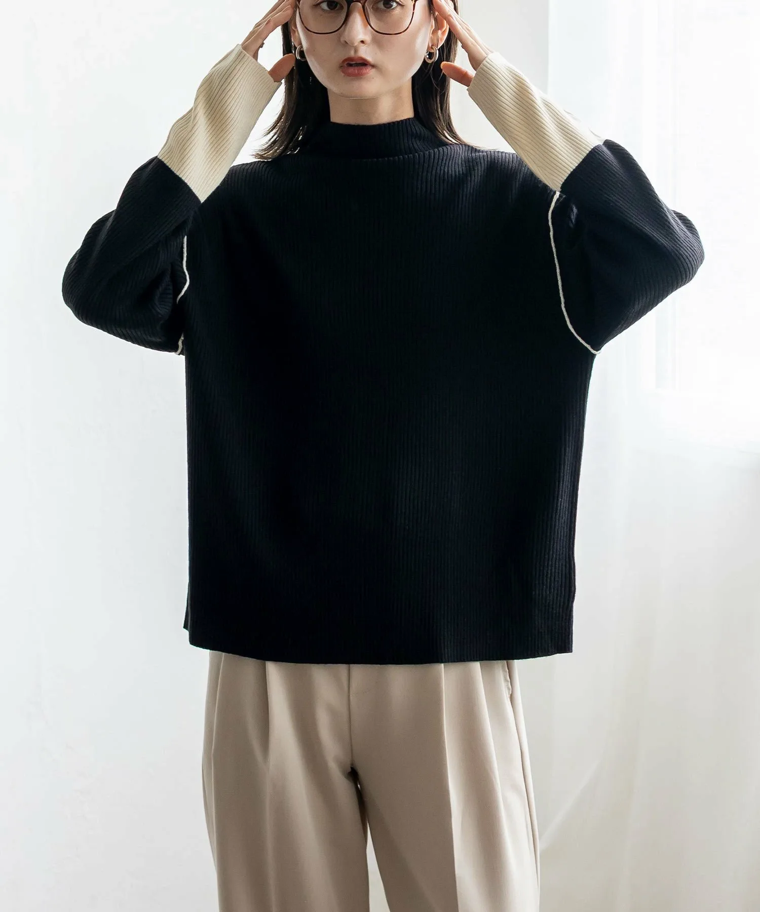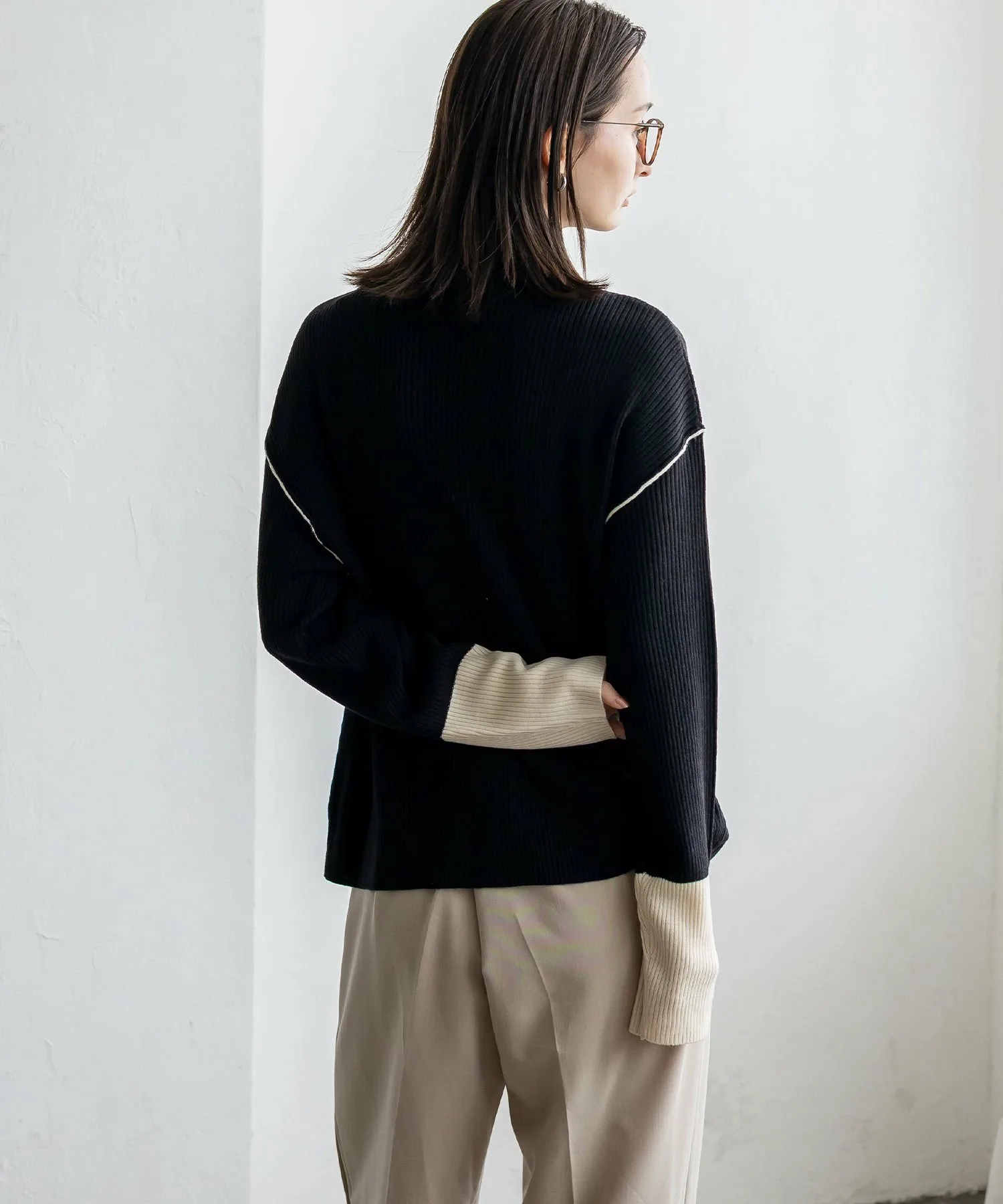 Вязаный топ в рубчик с контрастными манжетами