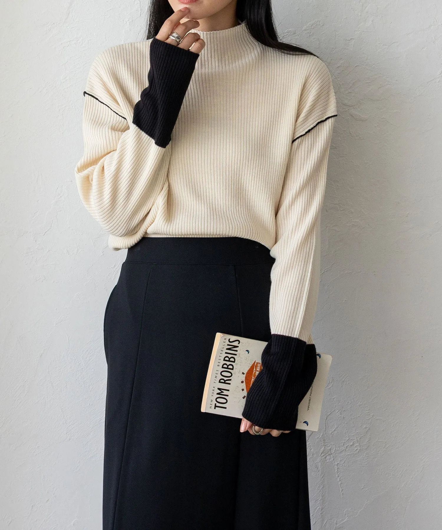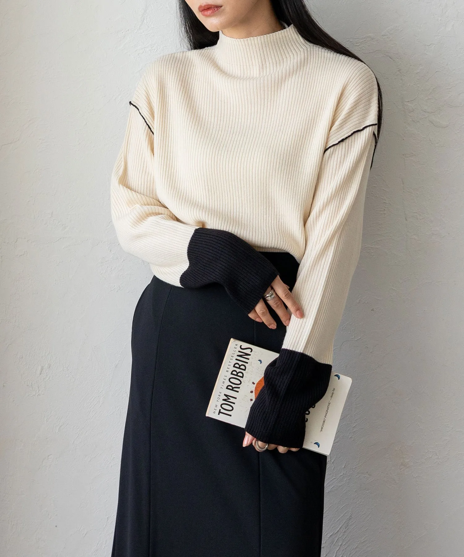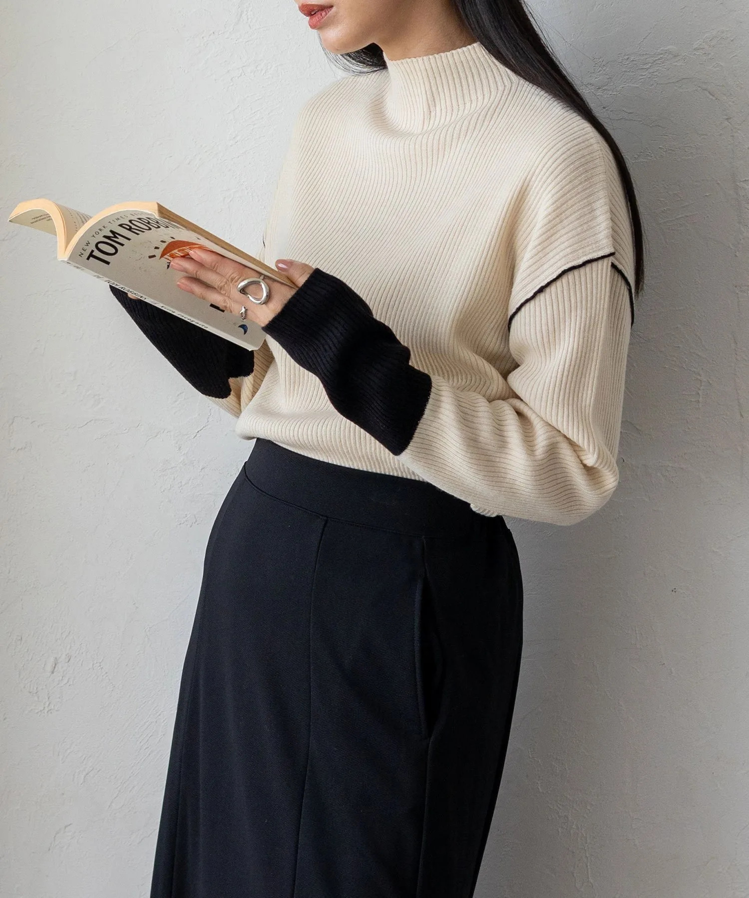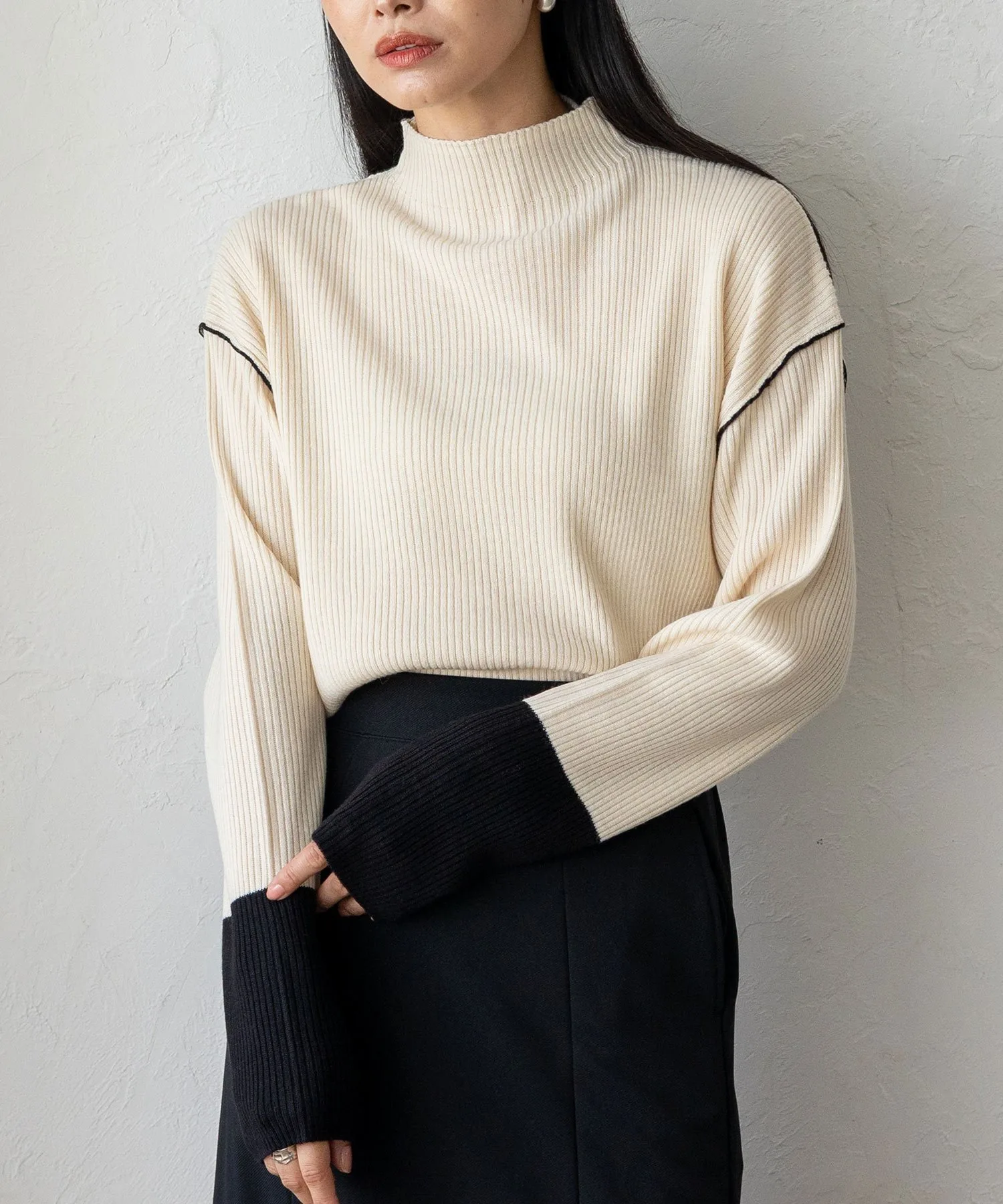 Вязаный топ в рубчик с контрастными манжетами