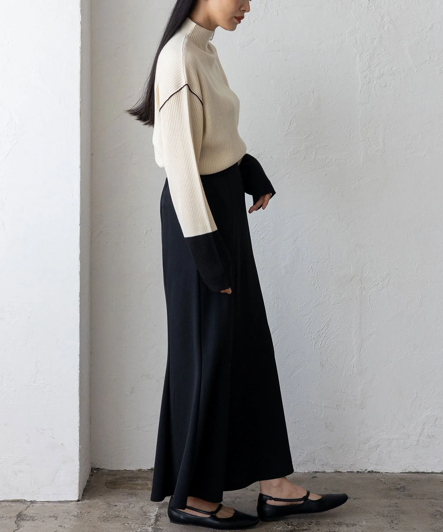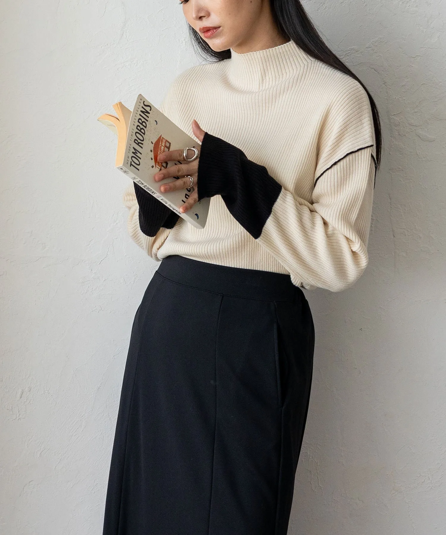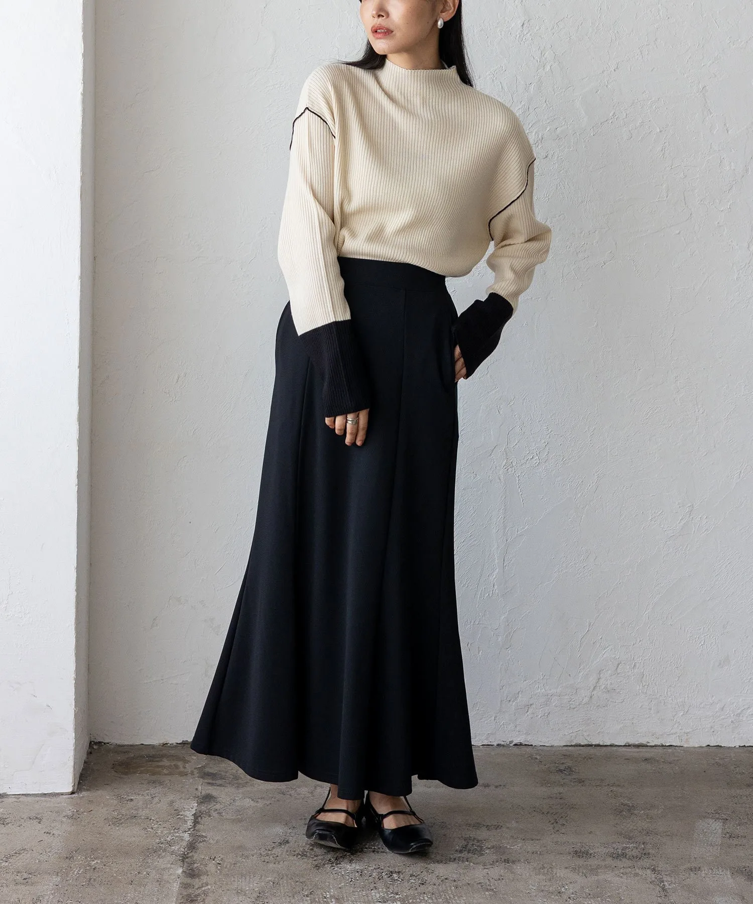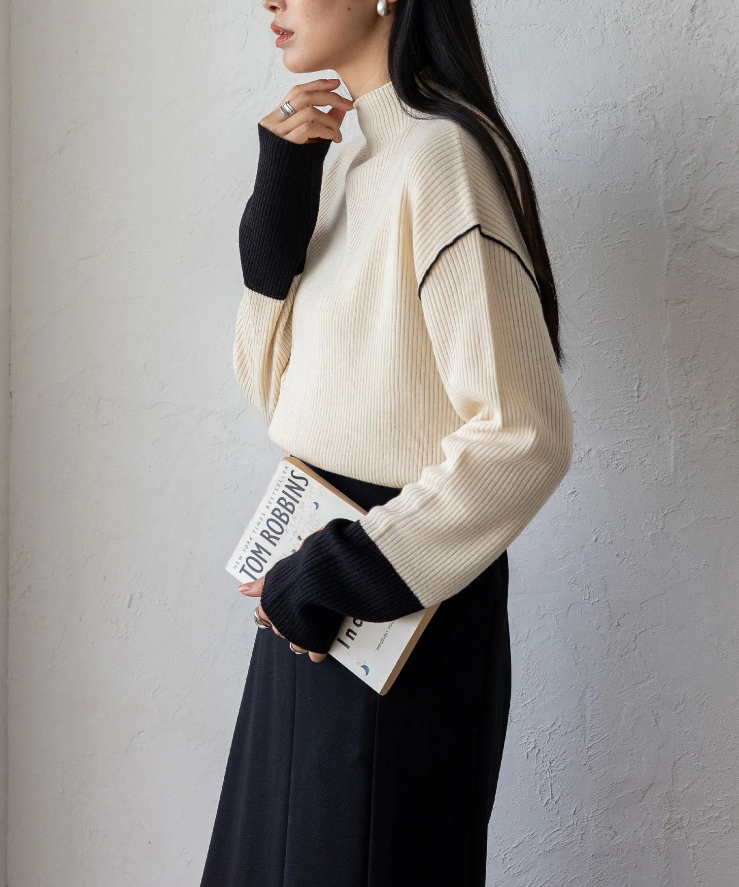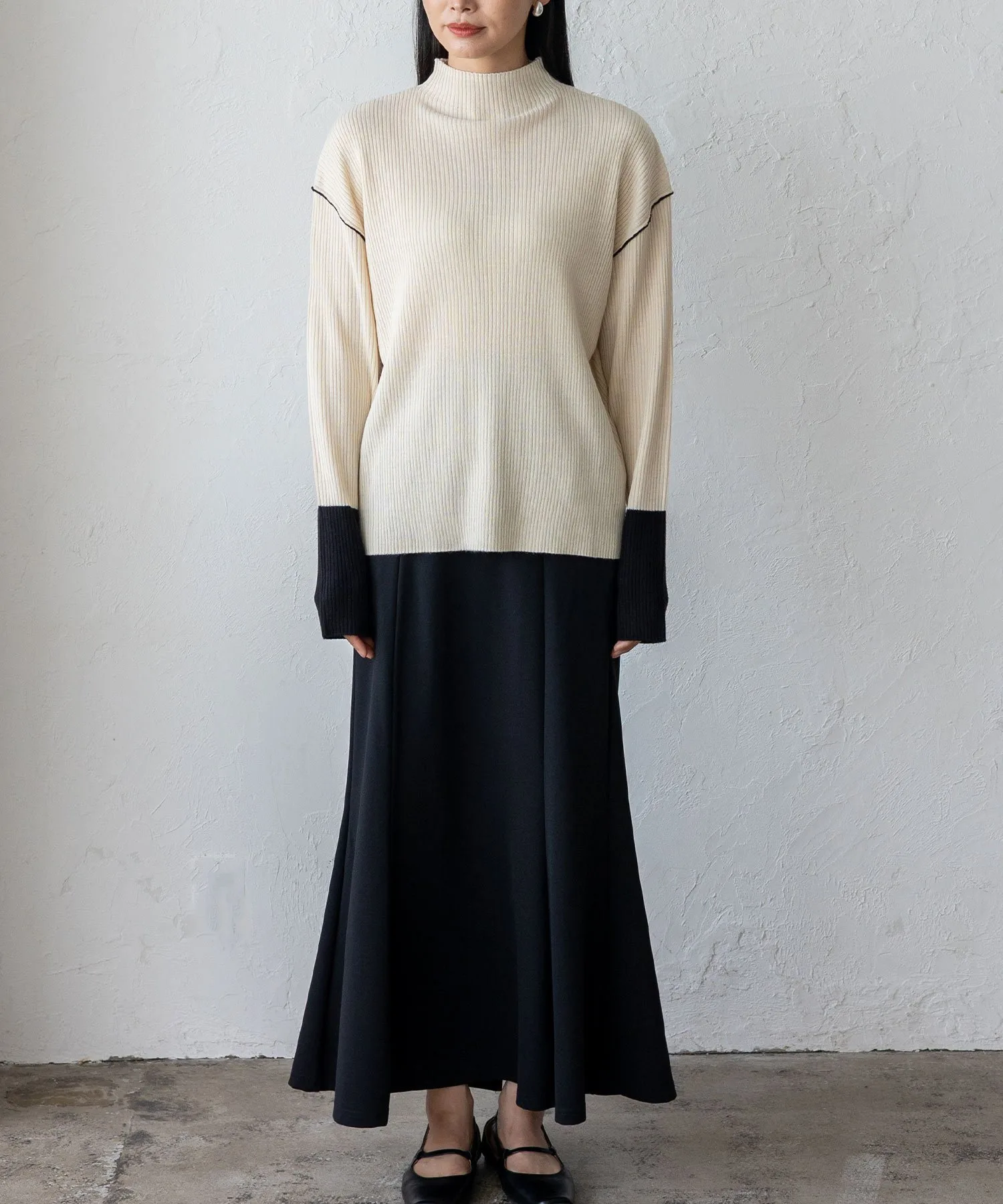 Вязаный топ в рубчик с контрастными манжетами