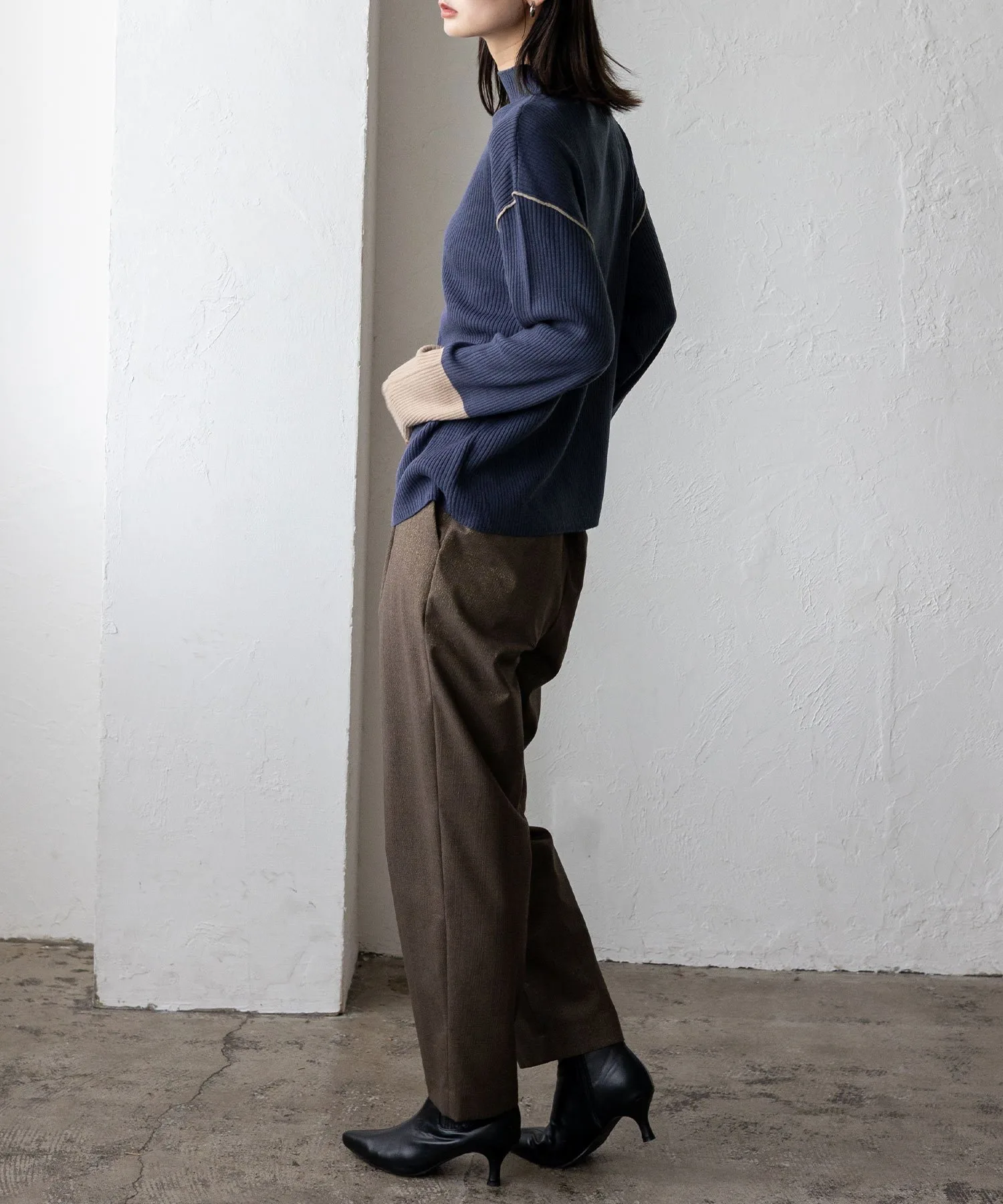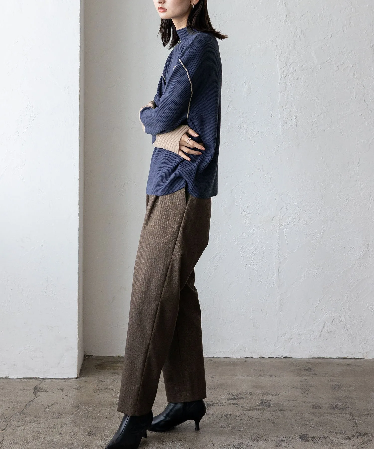 Высокий воротник создает аккуратный вид вокруг лица и добавляет нотку элегантности.