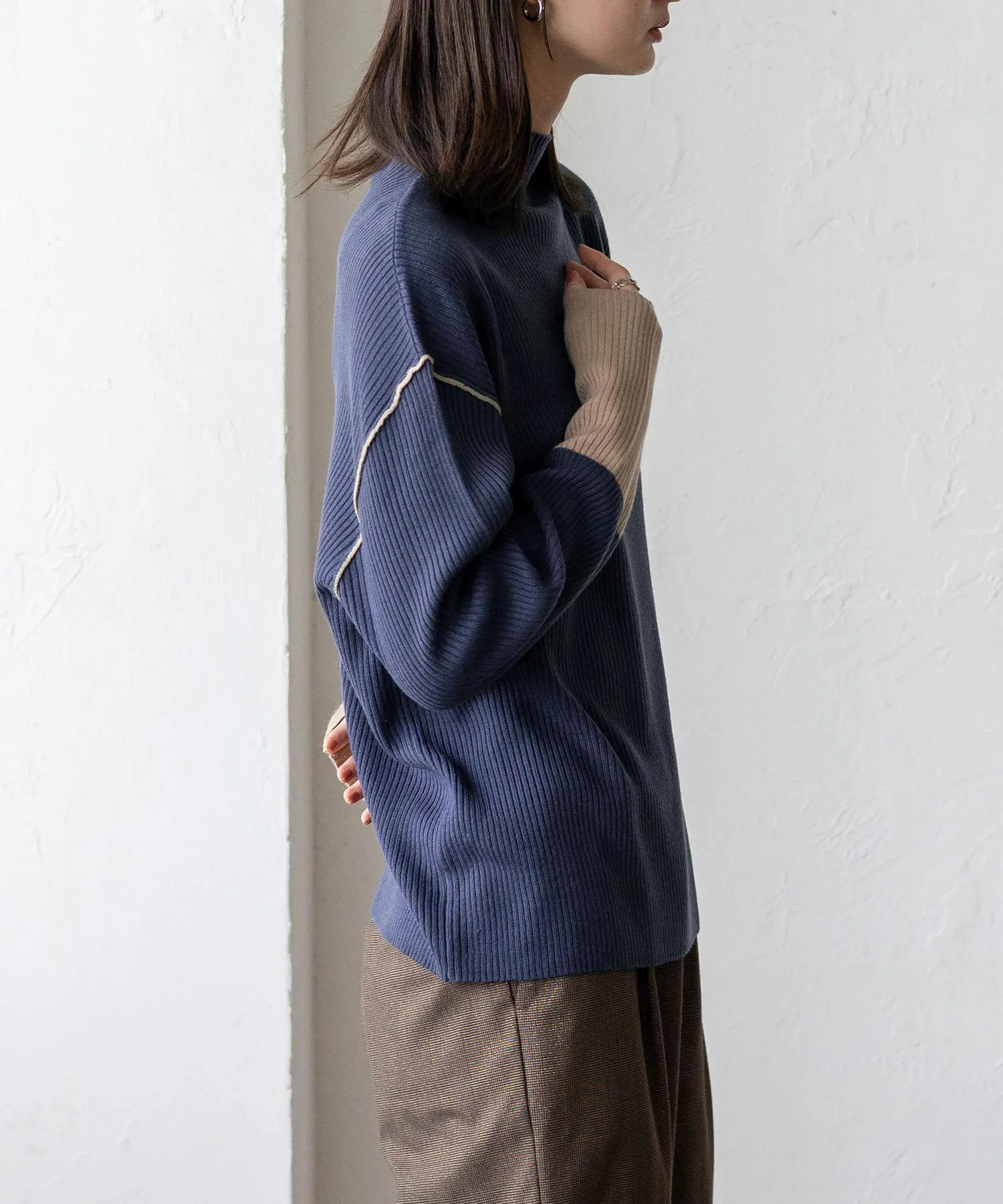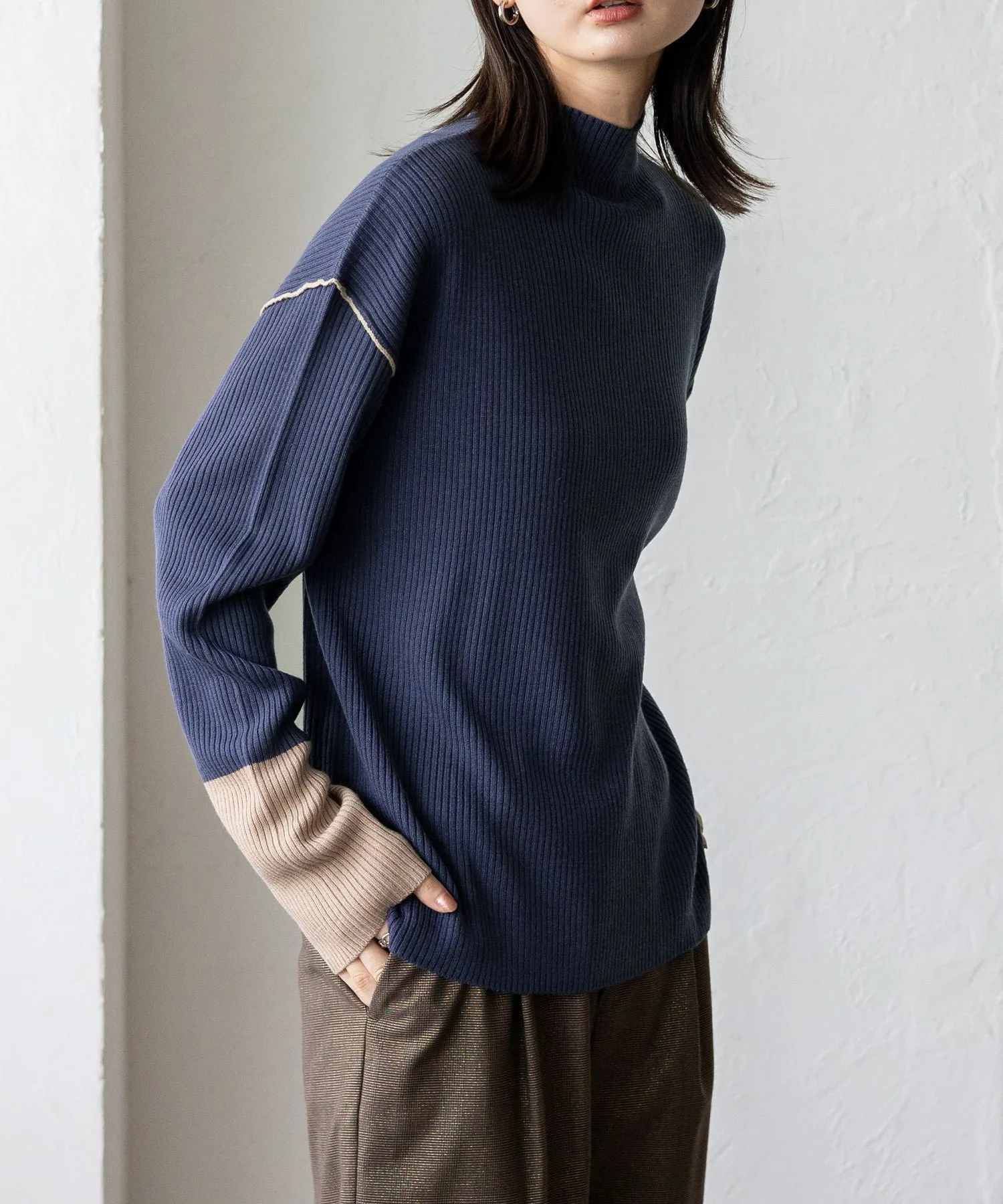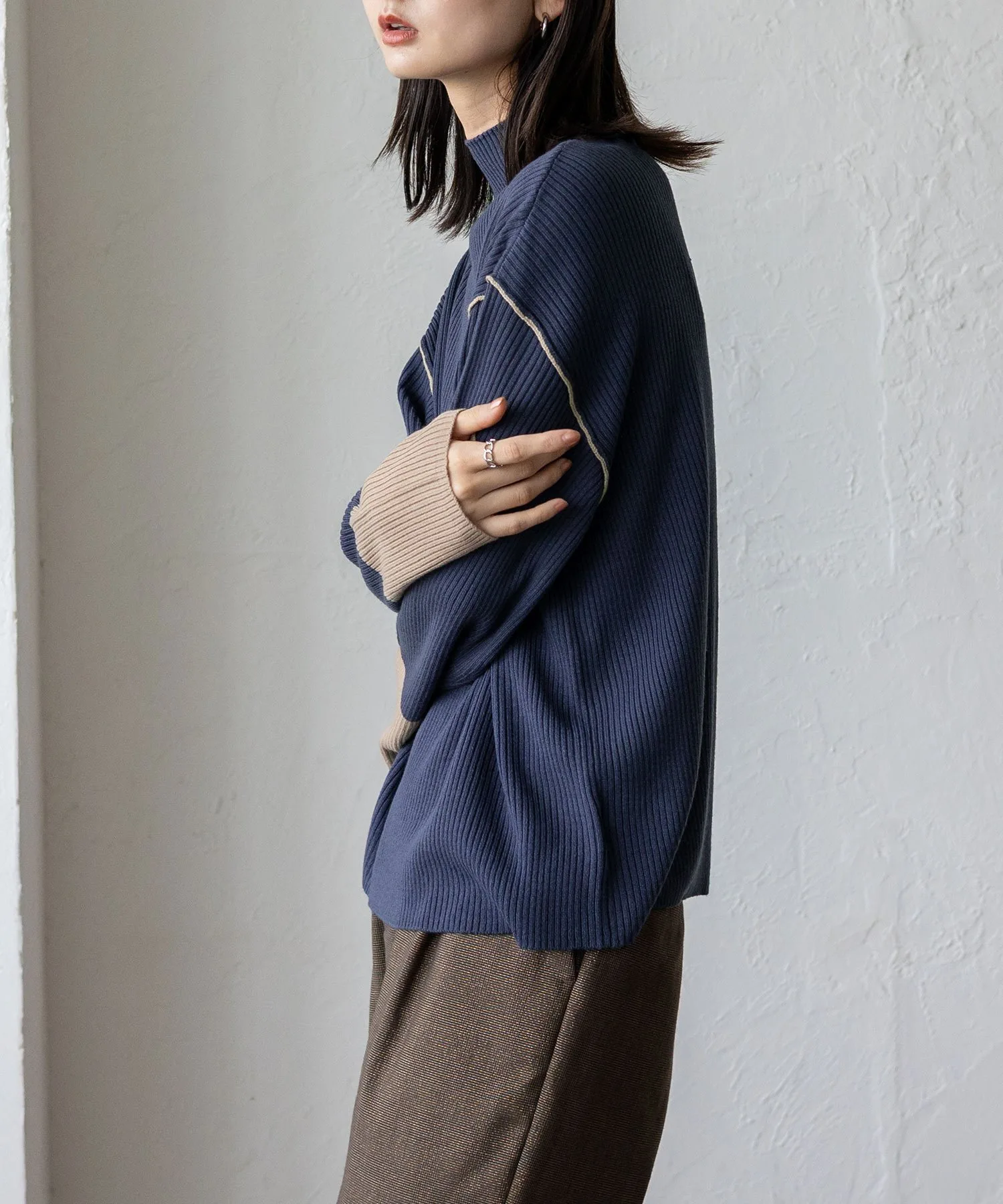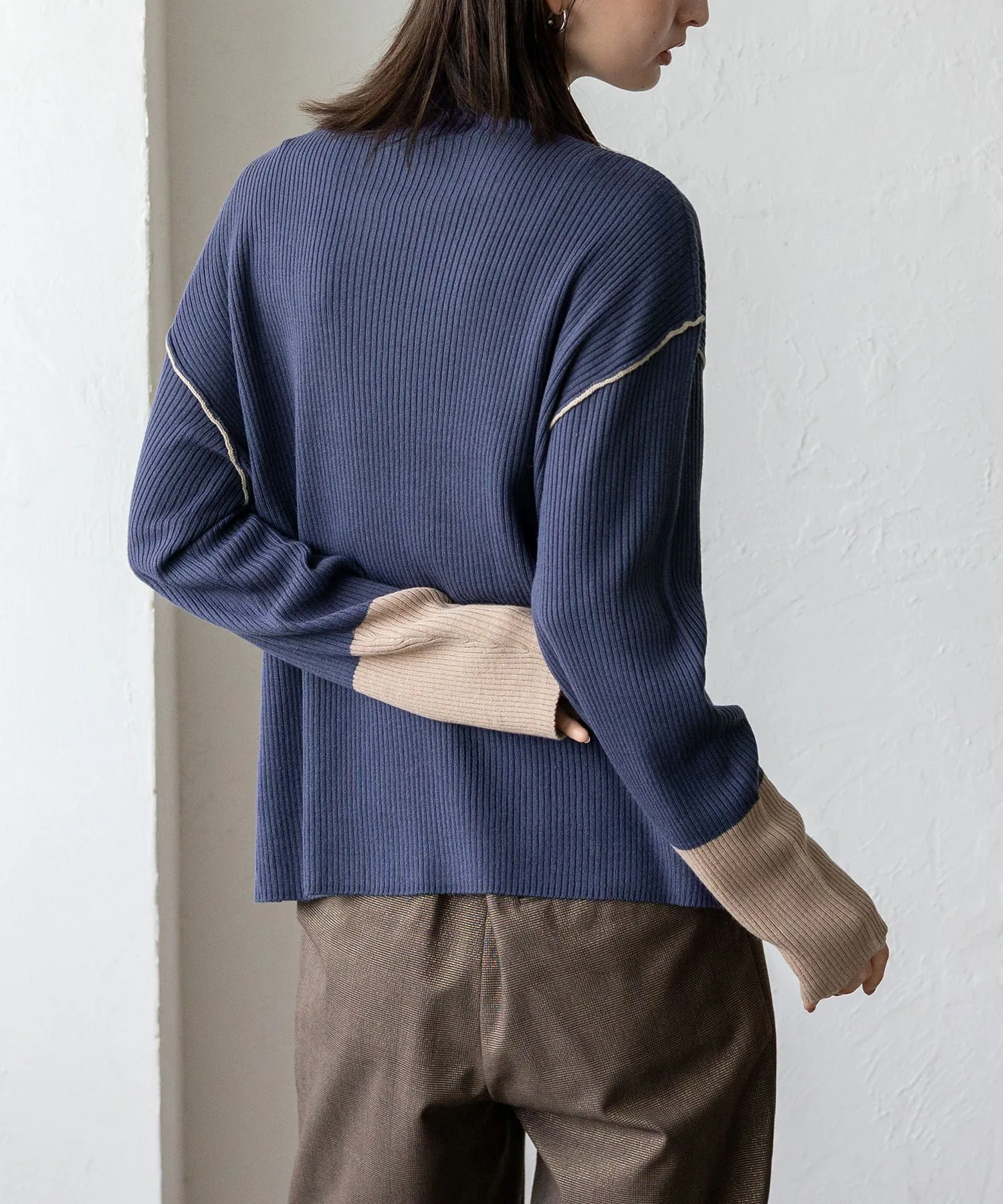 Вязаный топ в рубчик с контрастными манжетами