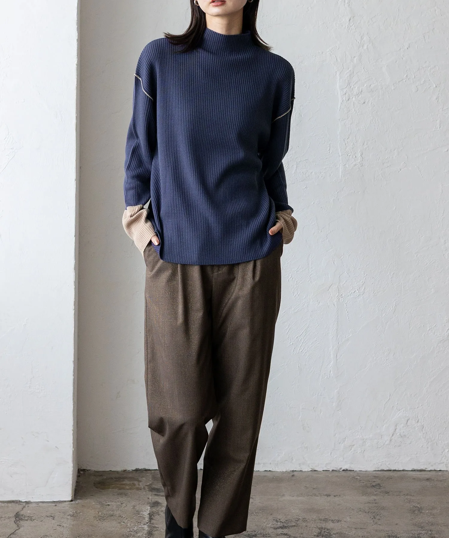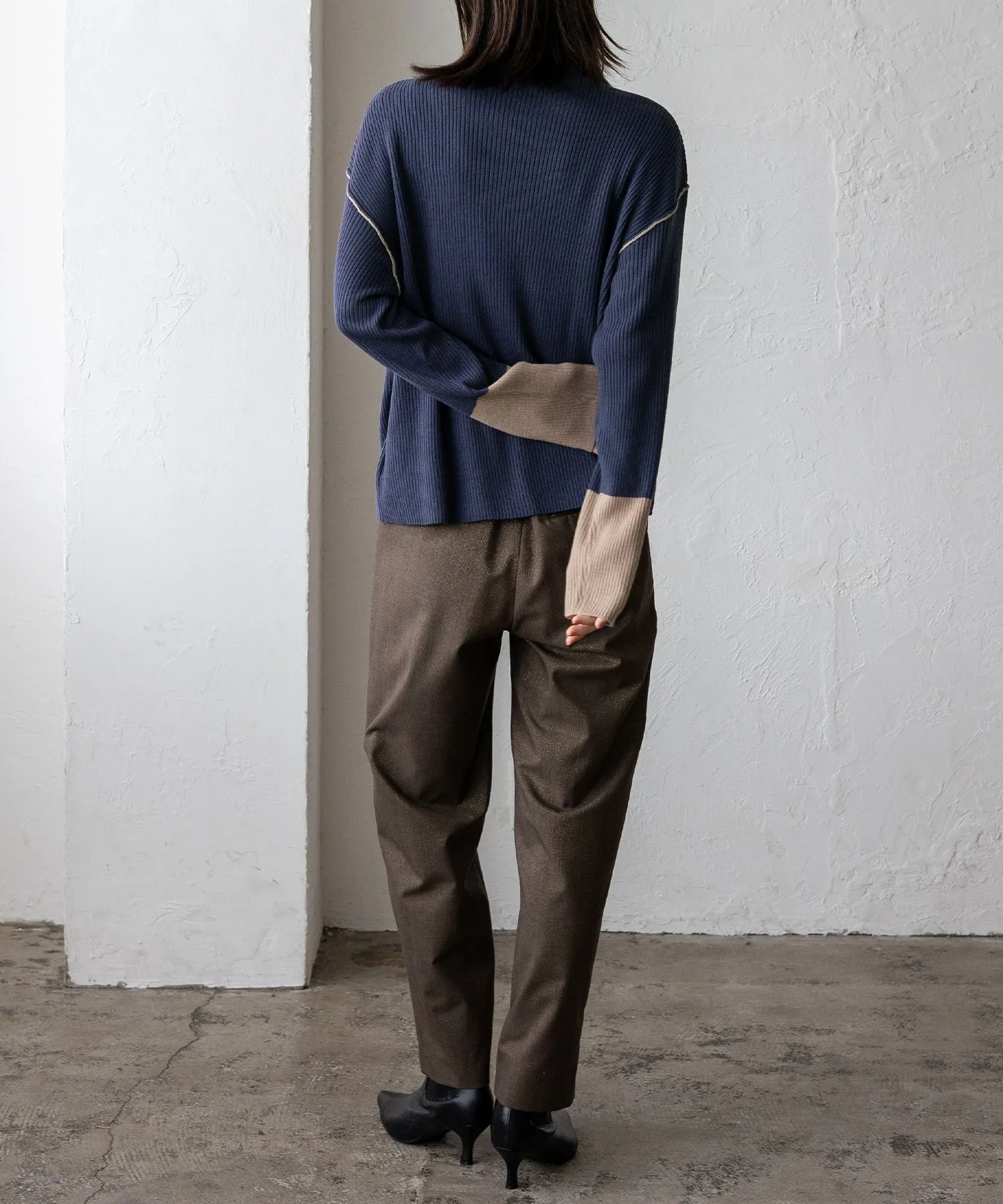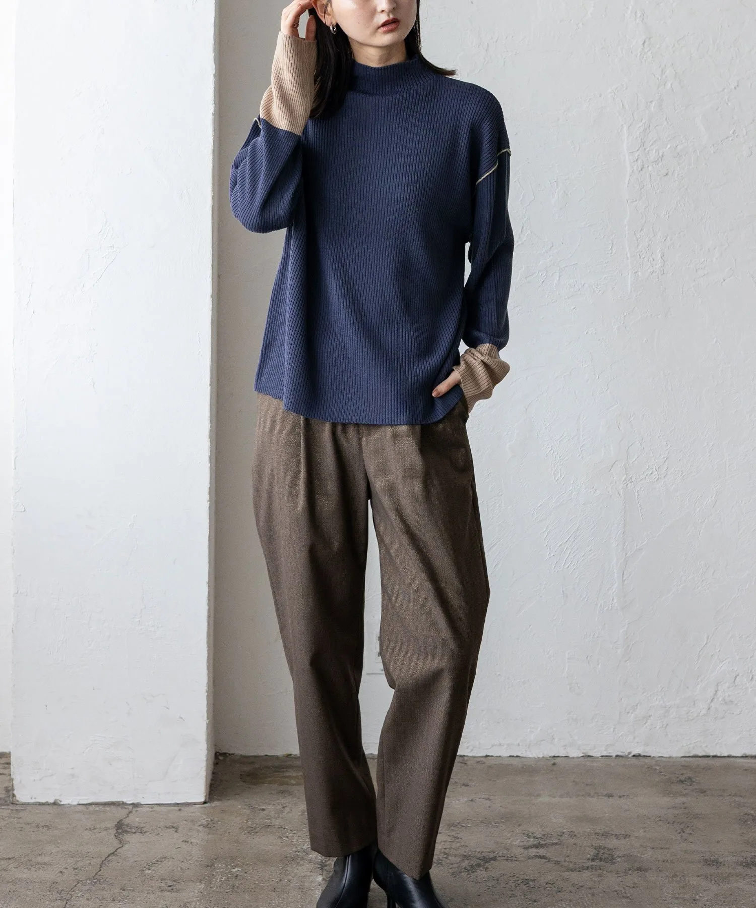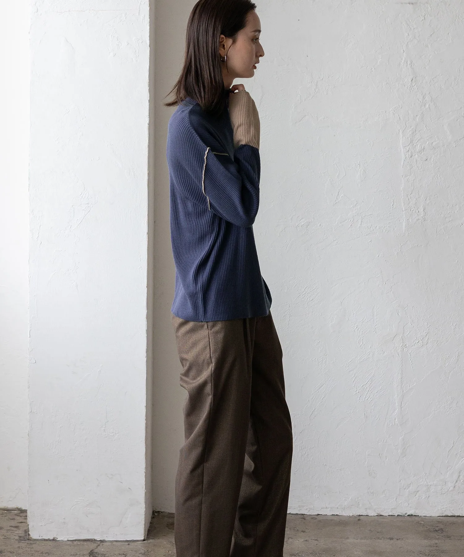 Вязаный топ в рубчик с контрастными манжетами
