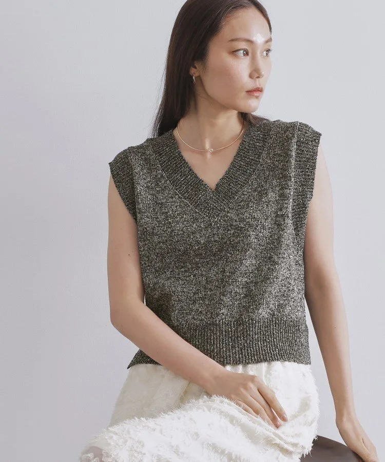 - V-образный вырез создает красивый силуэт декольте и может носиться как вязаный топ без рукавов, сочетая его с майкой или топом без рукавов.