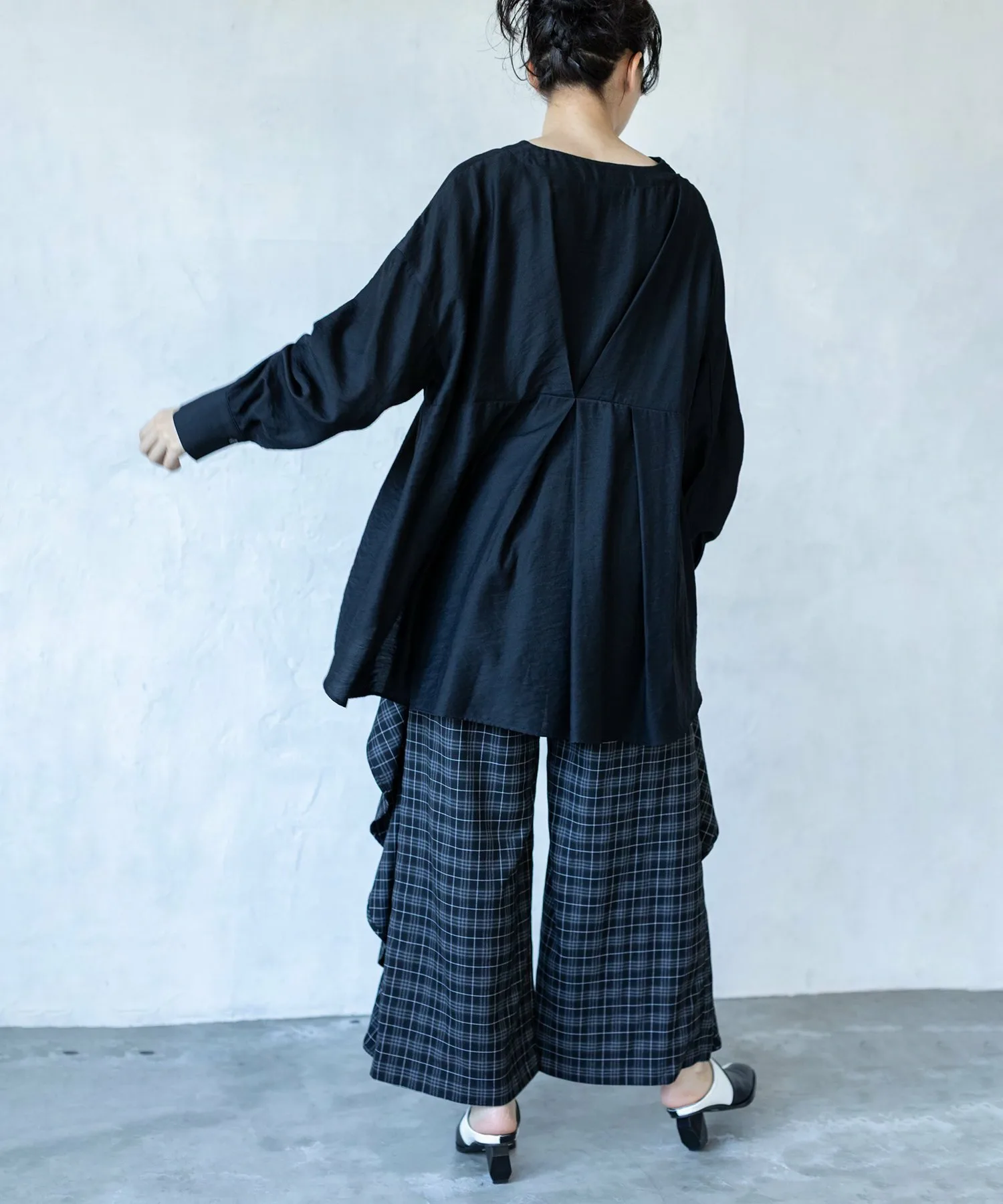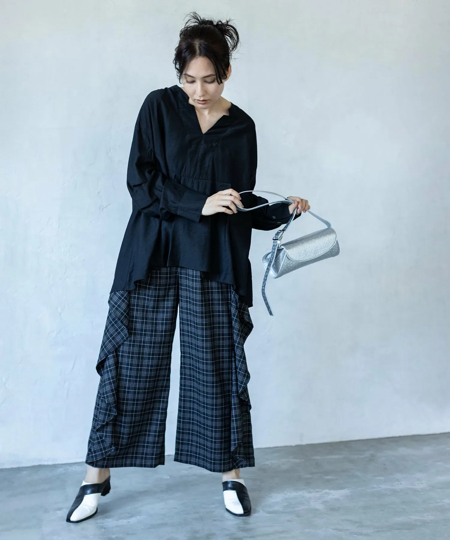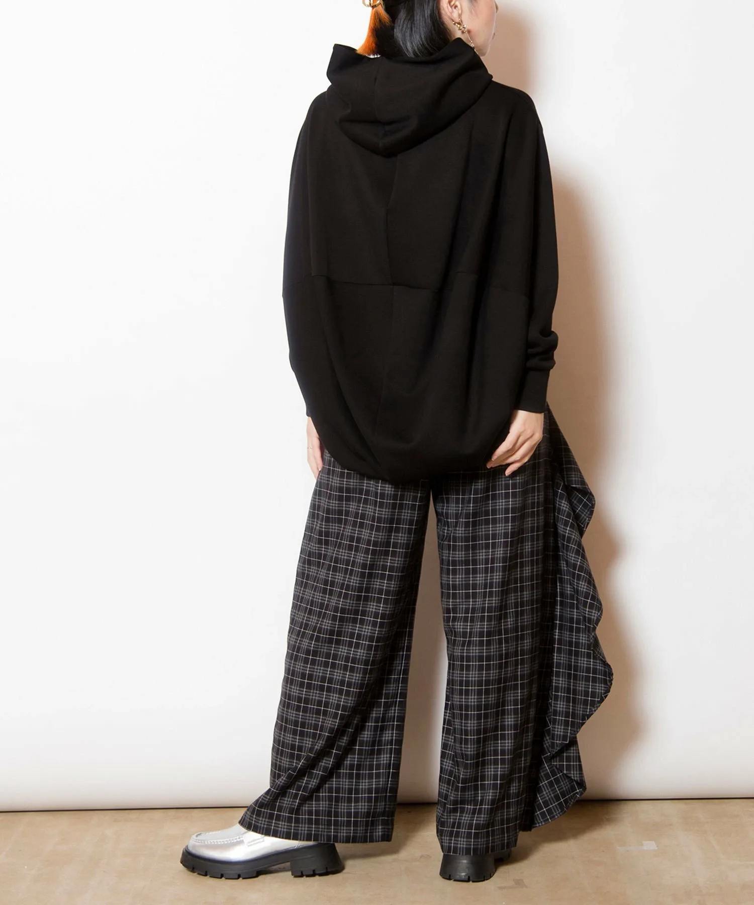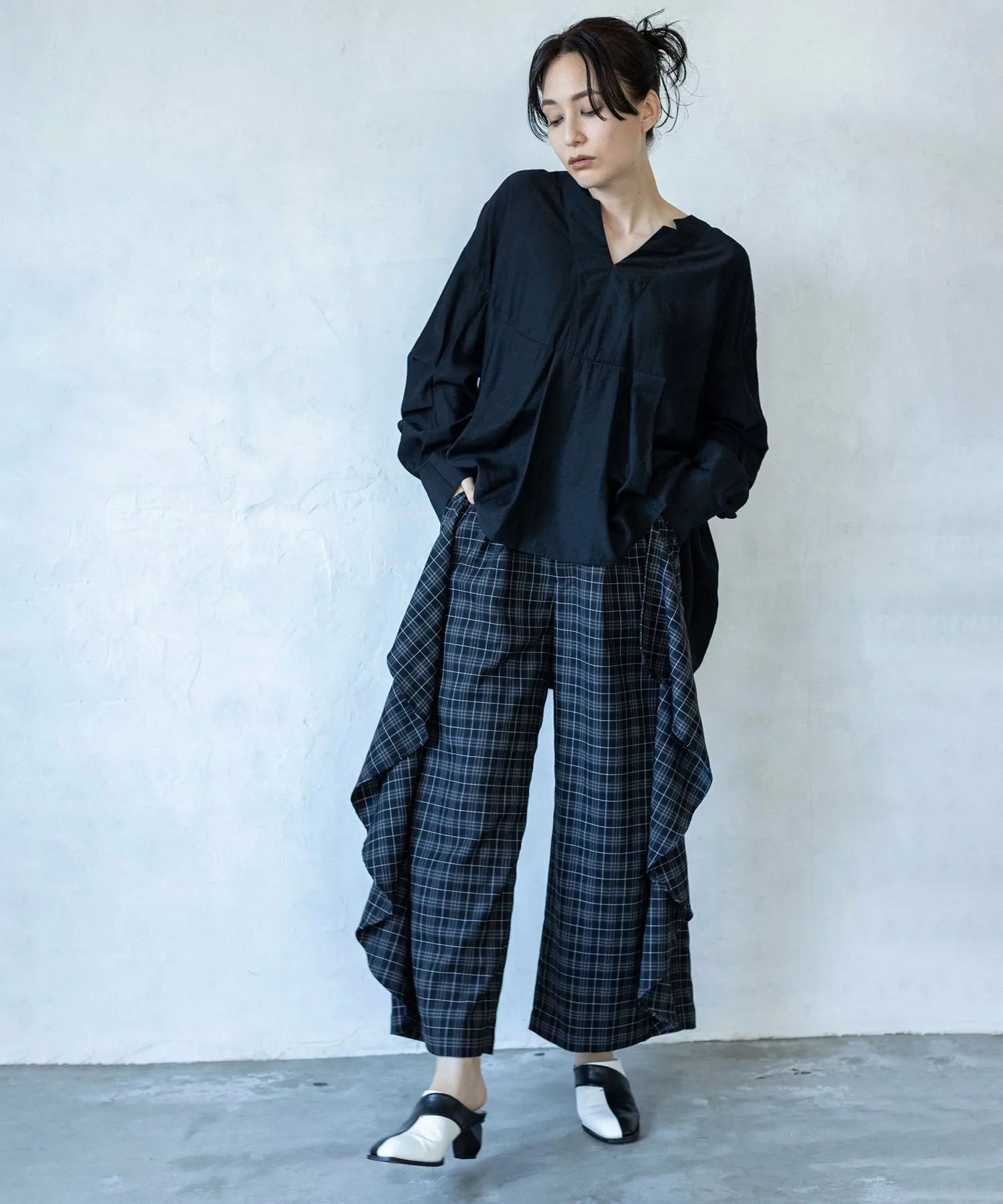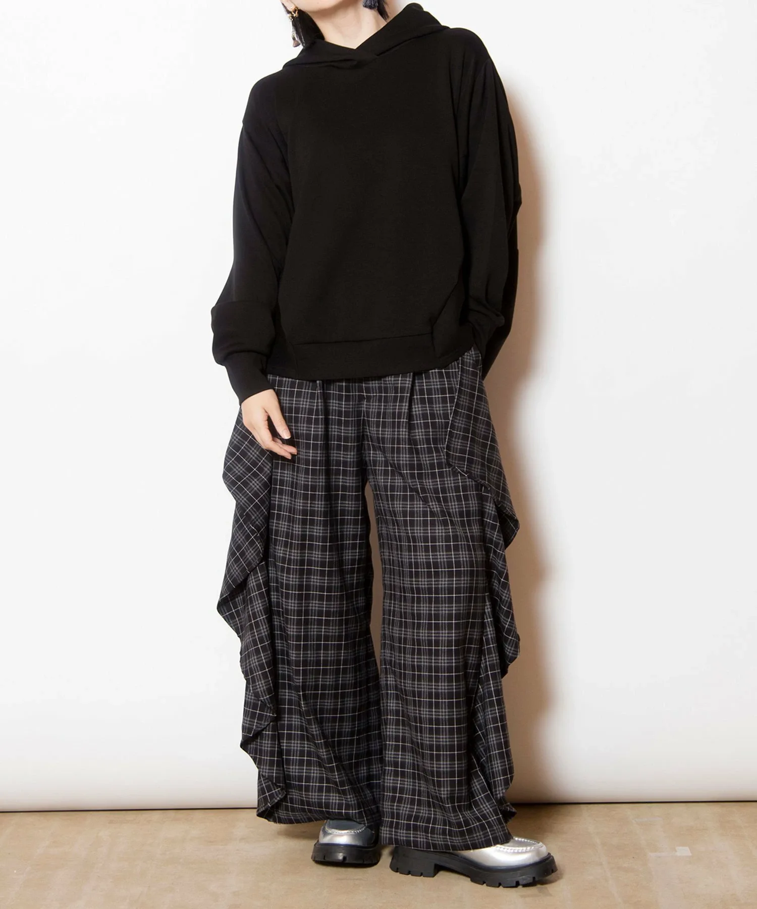 Культовые клетчатые брюки приобретают модный вид благодаря каскадному крою.
