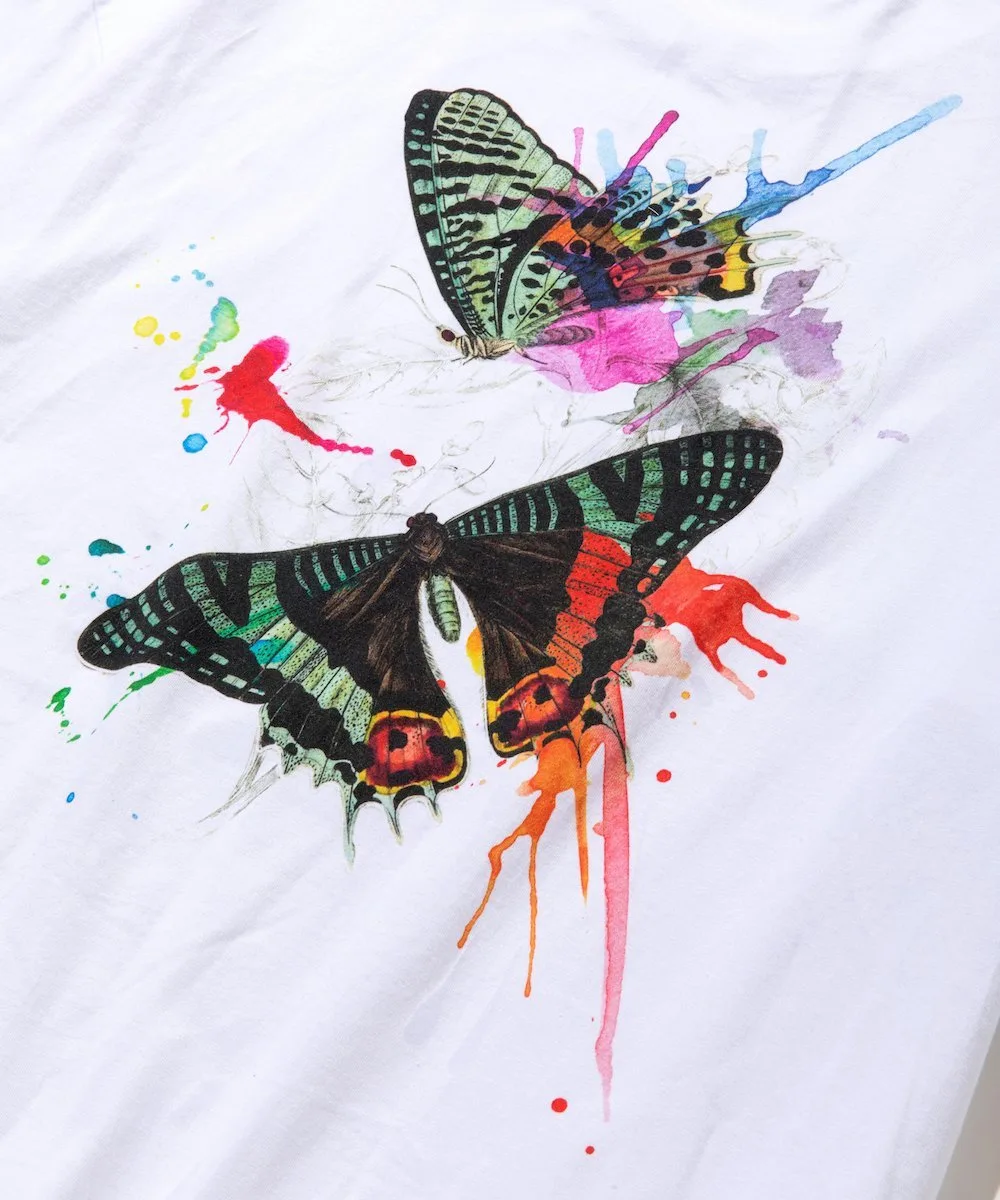 На передней части — графический принт в виде капель, имитирующий брызги акварельной краски.