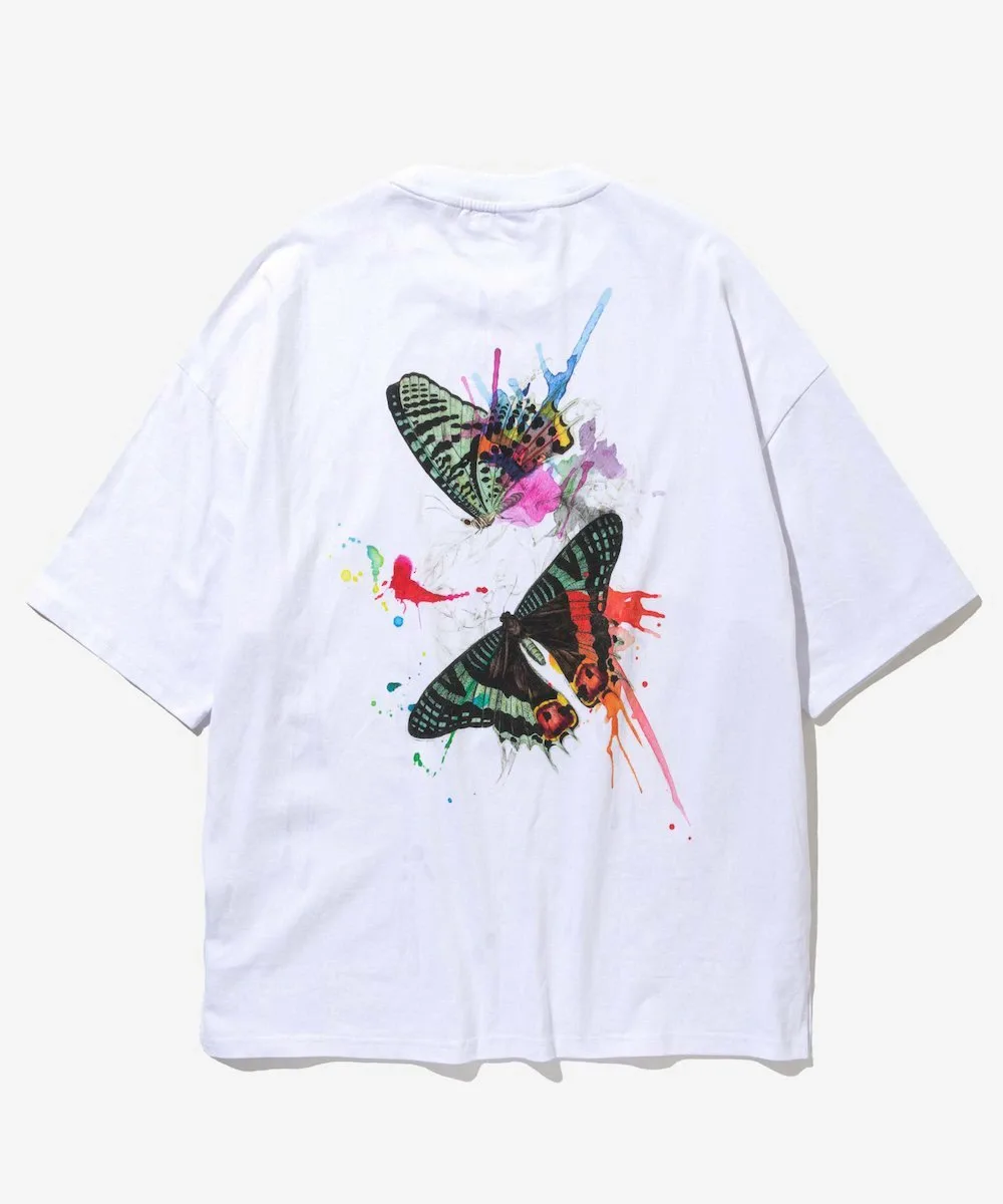 На спине — эффектный графический принт винтажного экземпляра, раскрашенный акварелью.