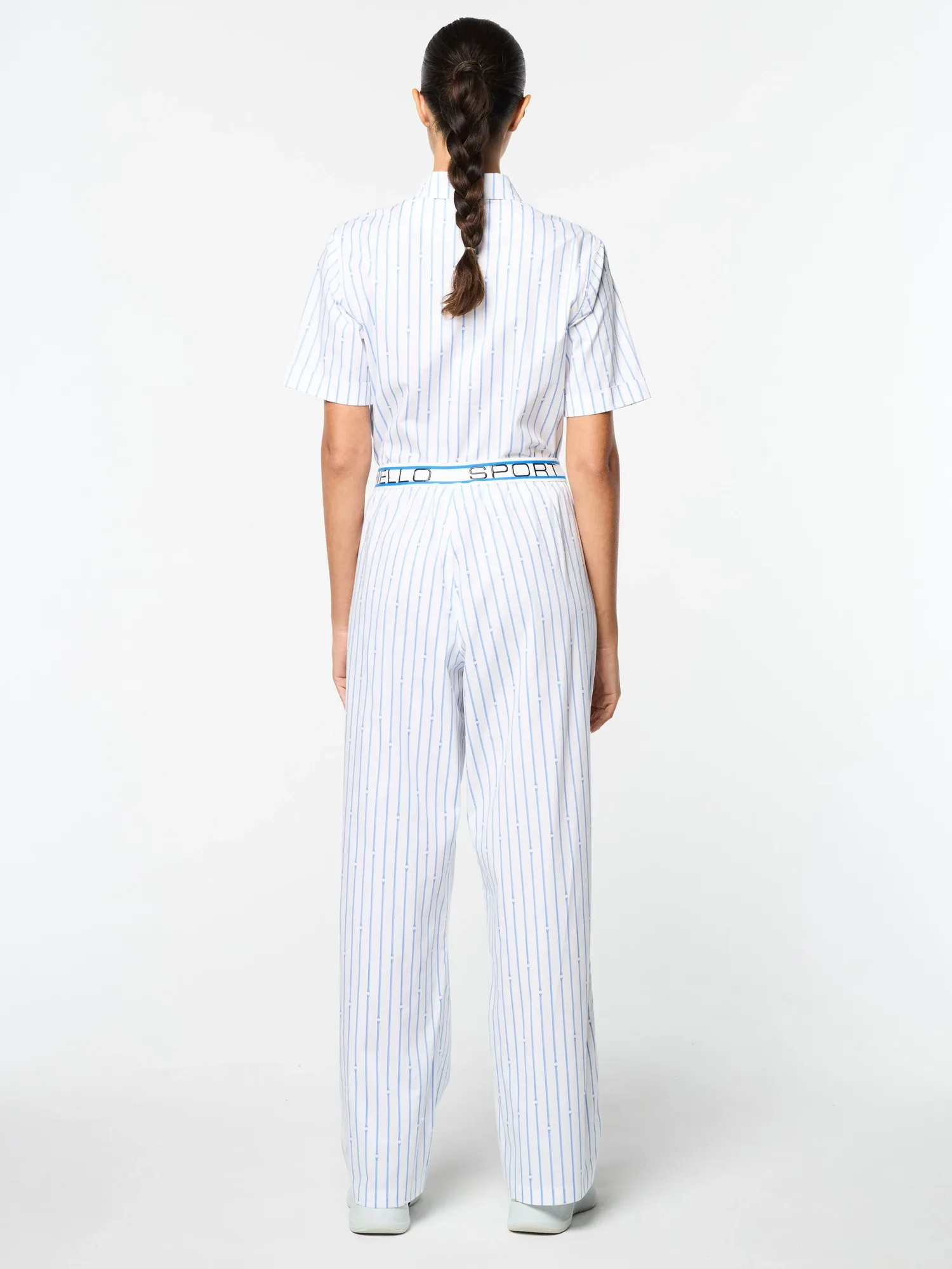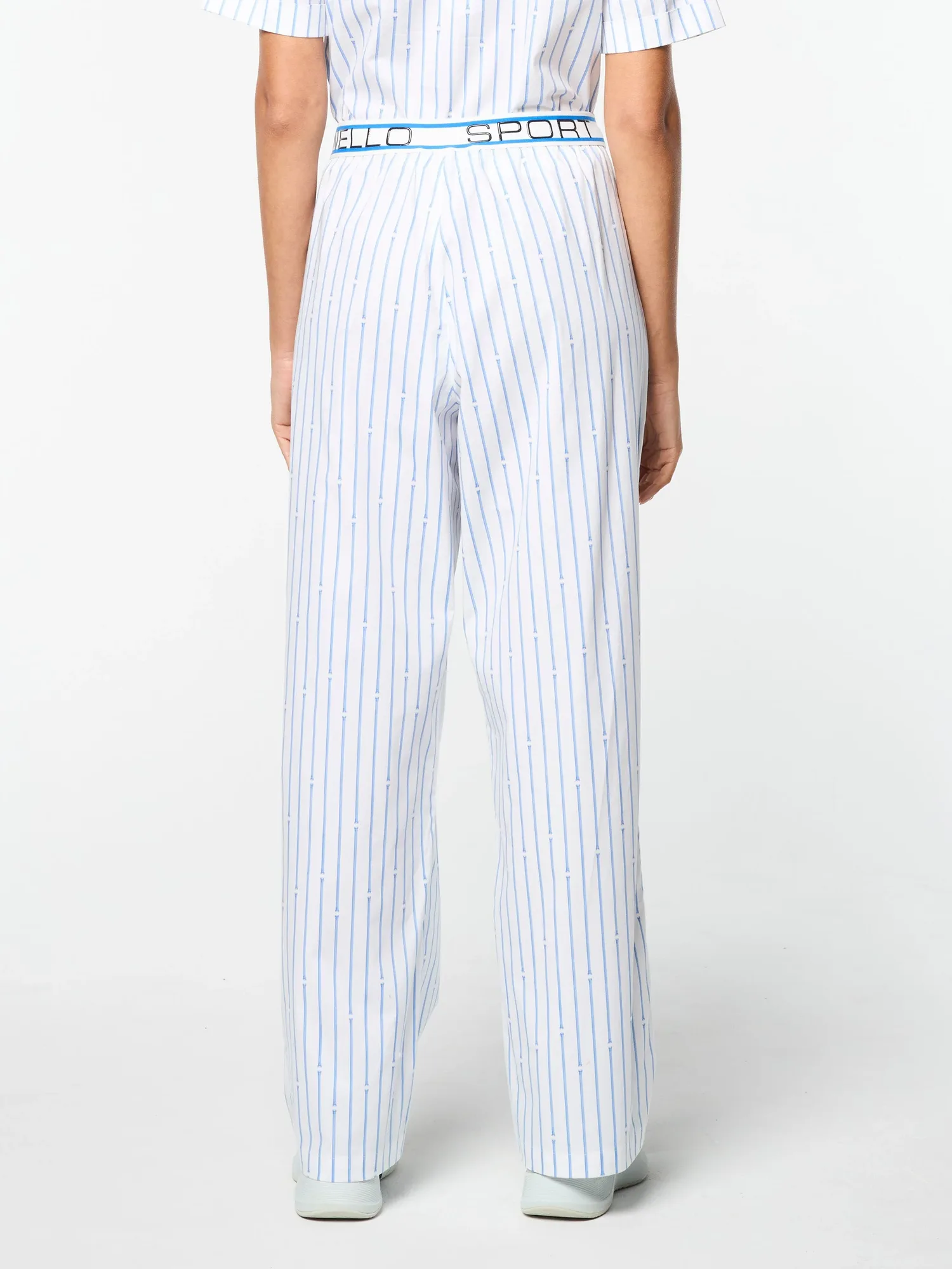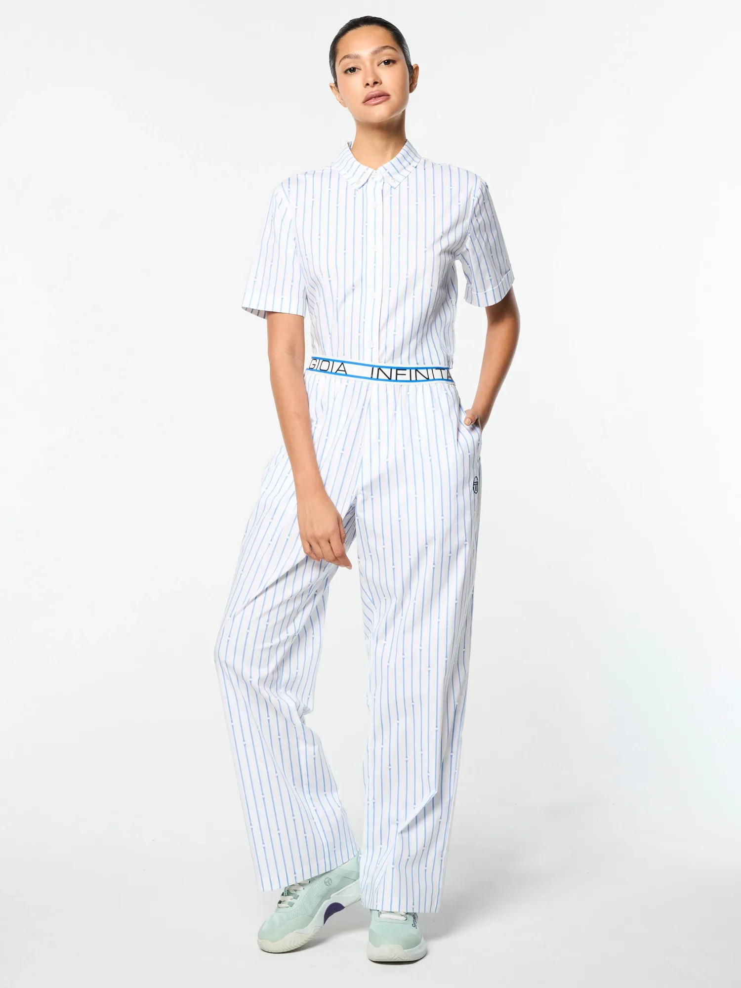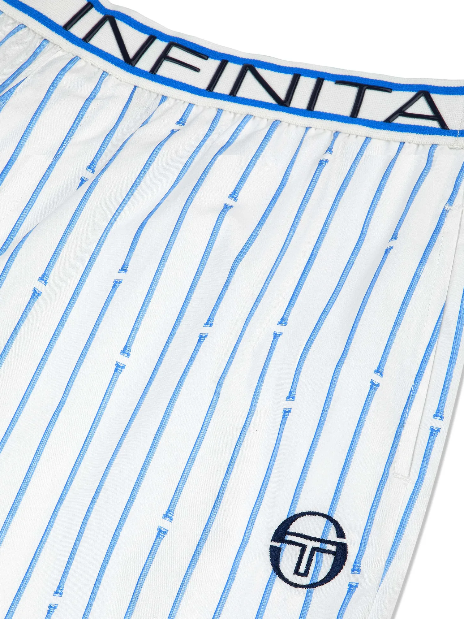 Вдохновленные римскими колоннами - дань уважения итальянскому наследию Sergio Tacchini. Наши женские брюки Colonna изготовлены из роскошного эластичного хлопкового поплина с принтом в виде тонких полосок римских колонн, создавая повседневный образ с ноткой элегантности. Эластичный пояс подчеркивает слоган бренда "Gioia Infinita Nello Sport". Эти стильные брюки легкие и дышащие, с легкой эластичностью, идеально подходят для путешествий и теплой погоды. Для создания полного образа сочетайте их с укороченной женской рубашкой Colonna (продается отдельно).