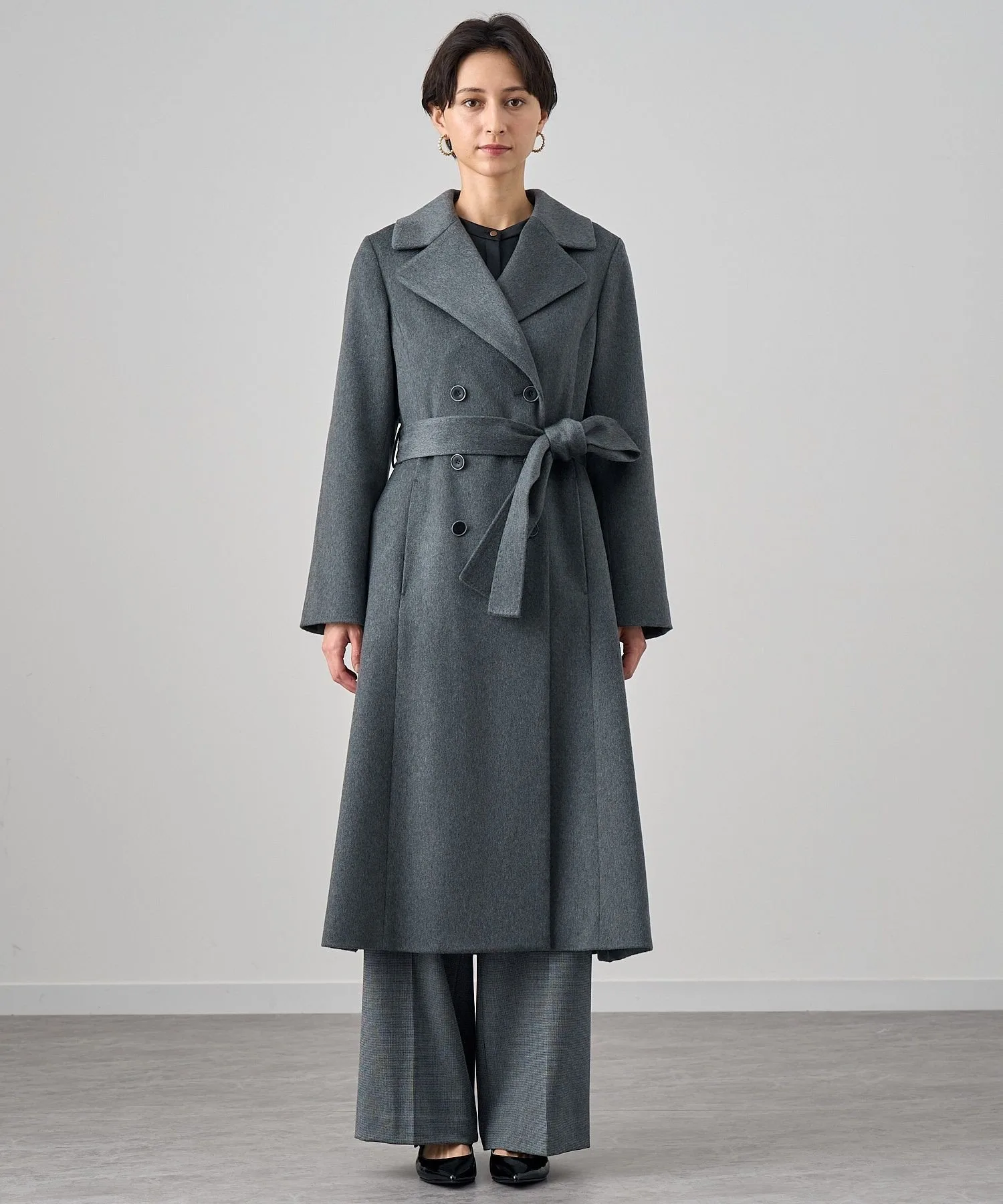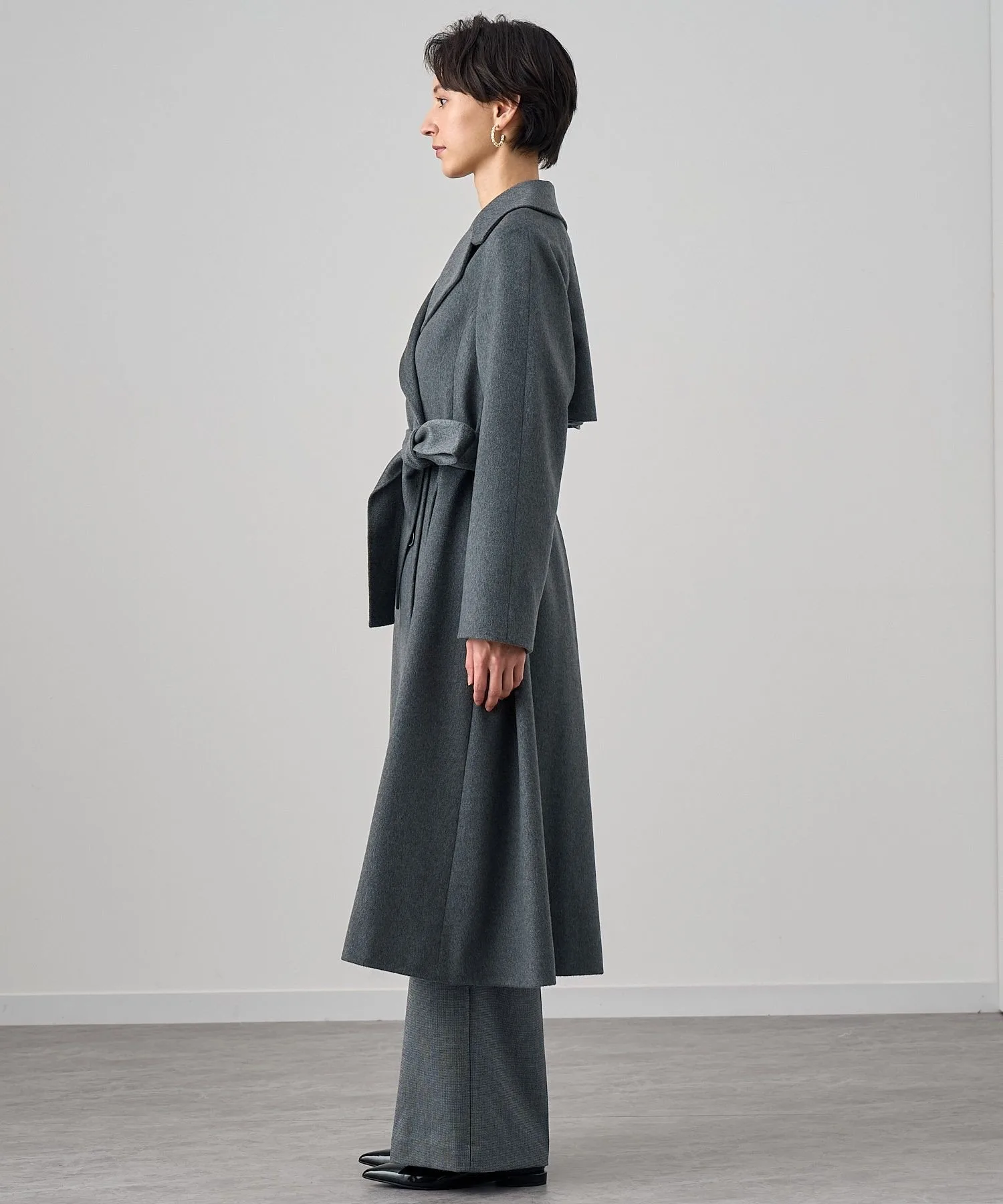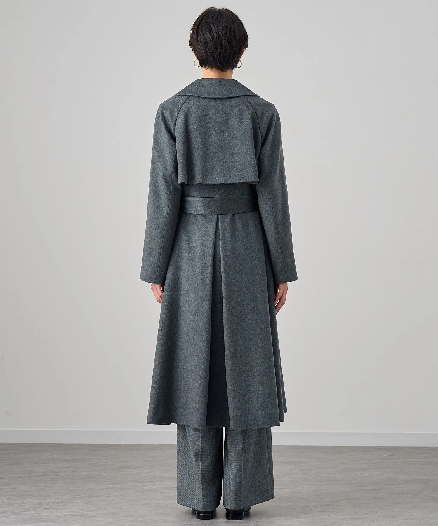 Большой воротник и расклешенная линия, расширяющаяся к подолу, создают роскошный силуэт платья-тренча.