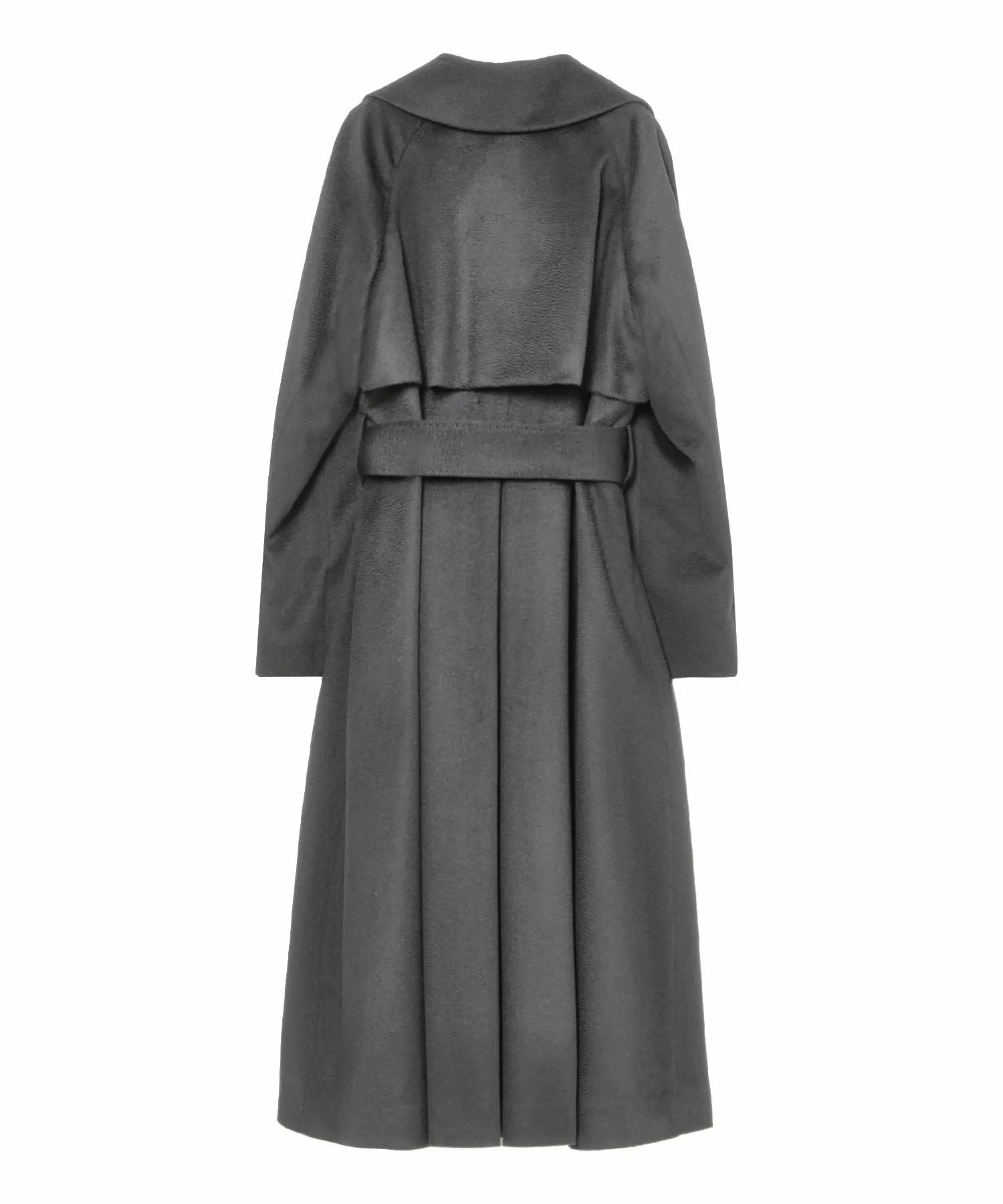 Общий силуэт расклешенный, но на спинке есть обратная складка, создающая ощущение объема.