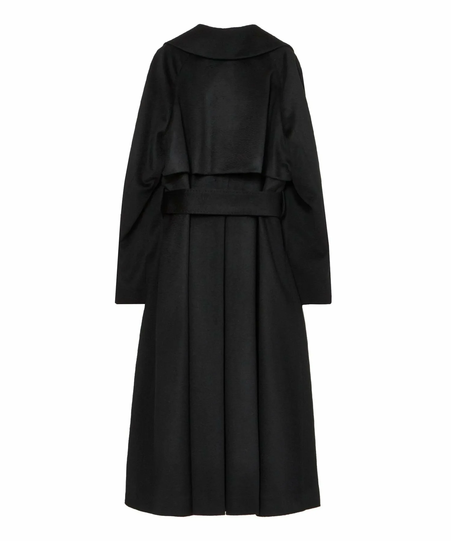 Общий силуэт расклешенный, но на спинке есть обратная складка, создающая ощущение объема.