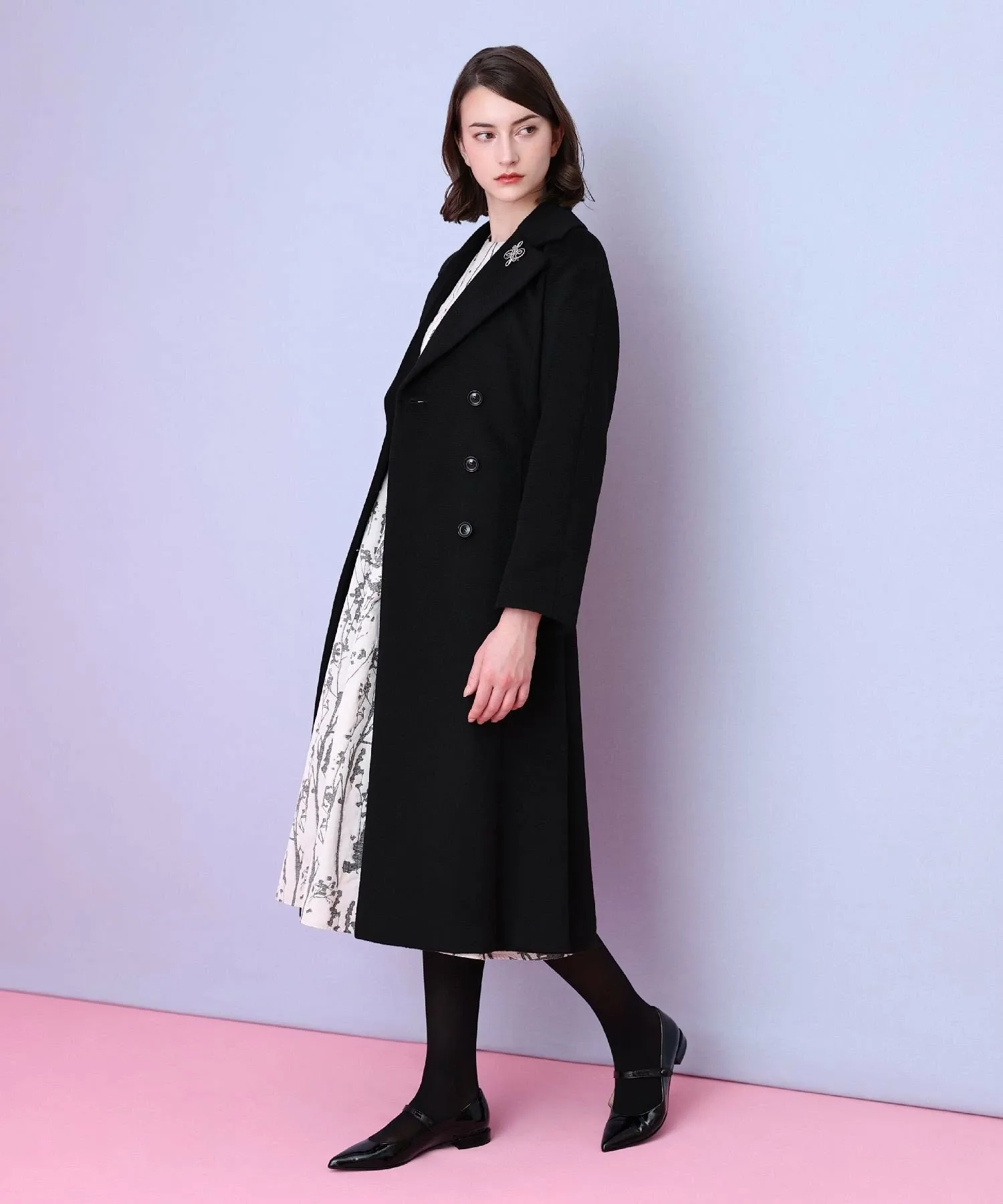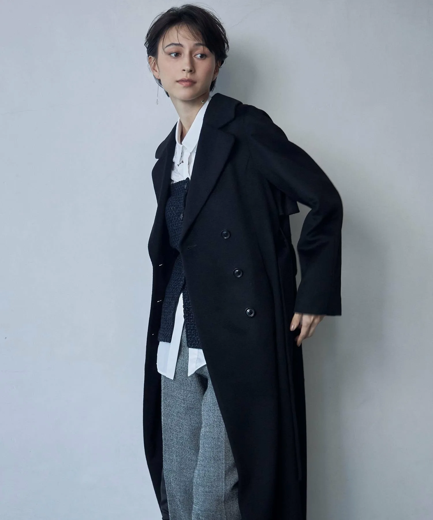 Большой воротник и расклешенная линия, расширяющаяся к подолу, создают роскошный силуэт платья-тренча.