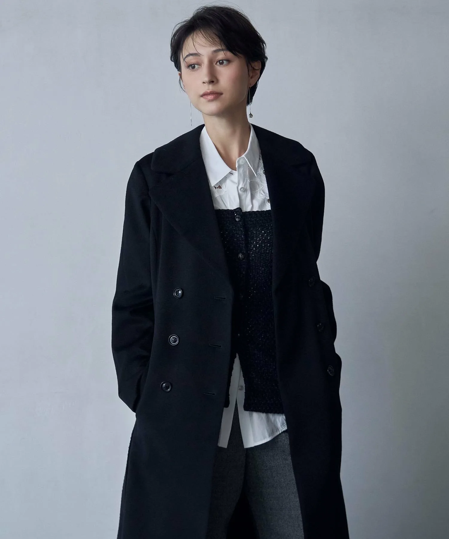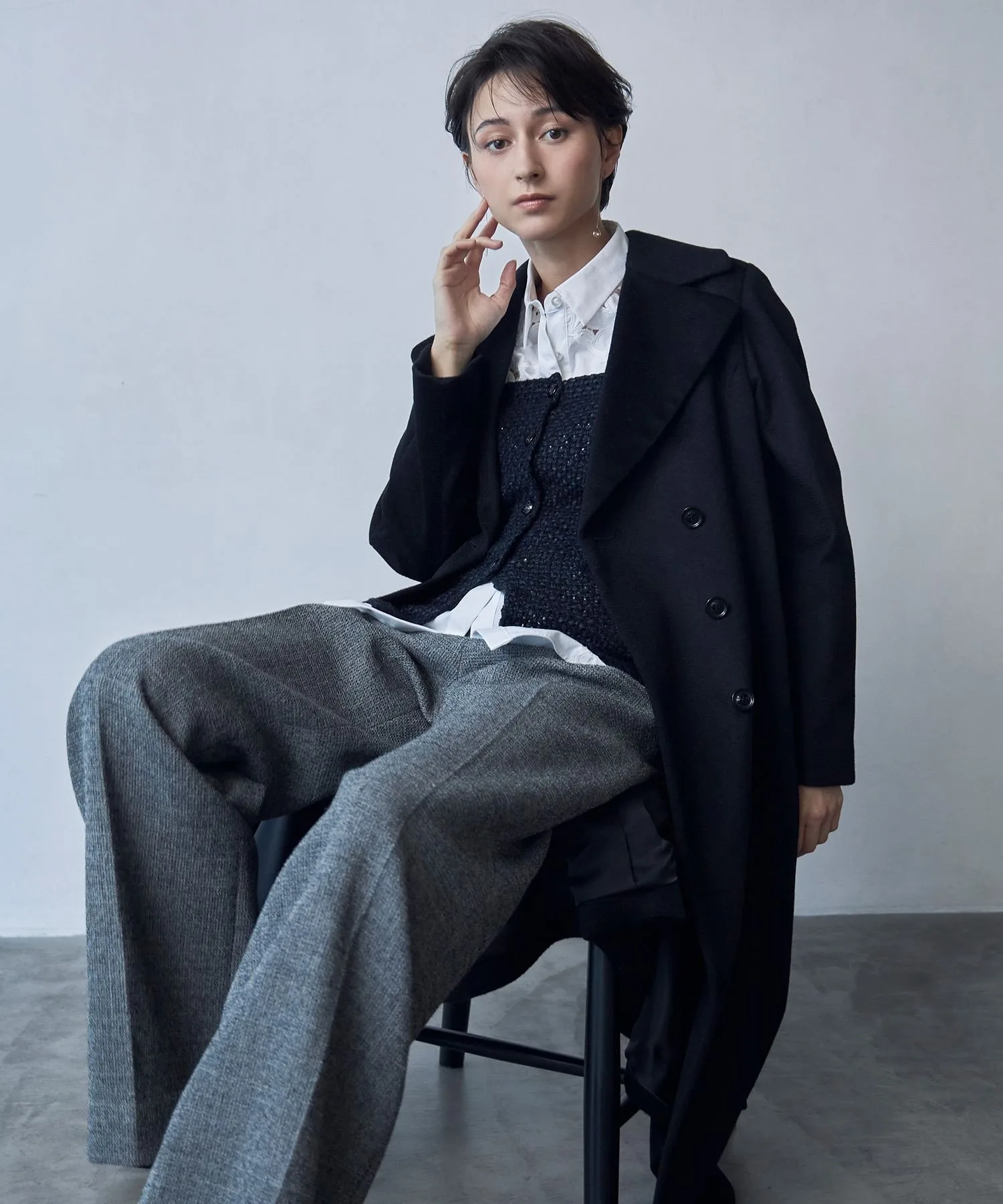 В сером/черном: Модель: 168 см, Размер: 38