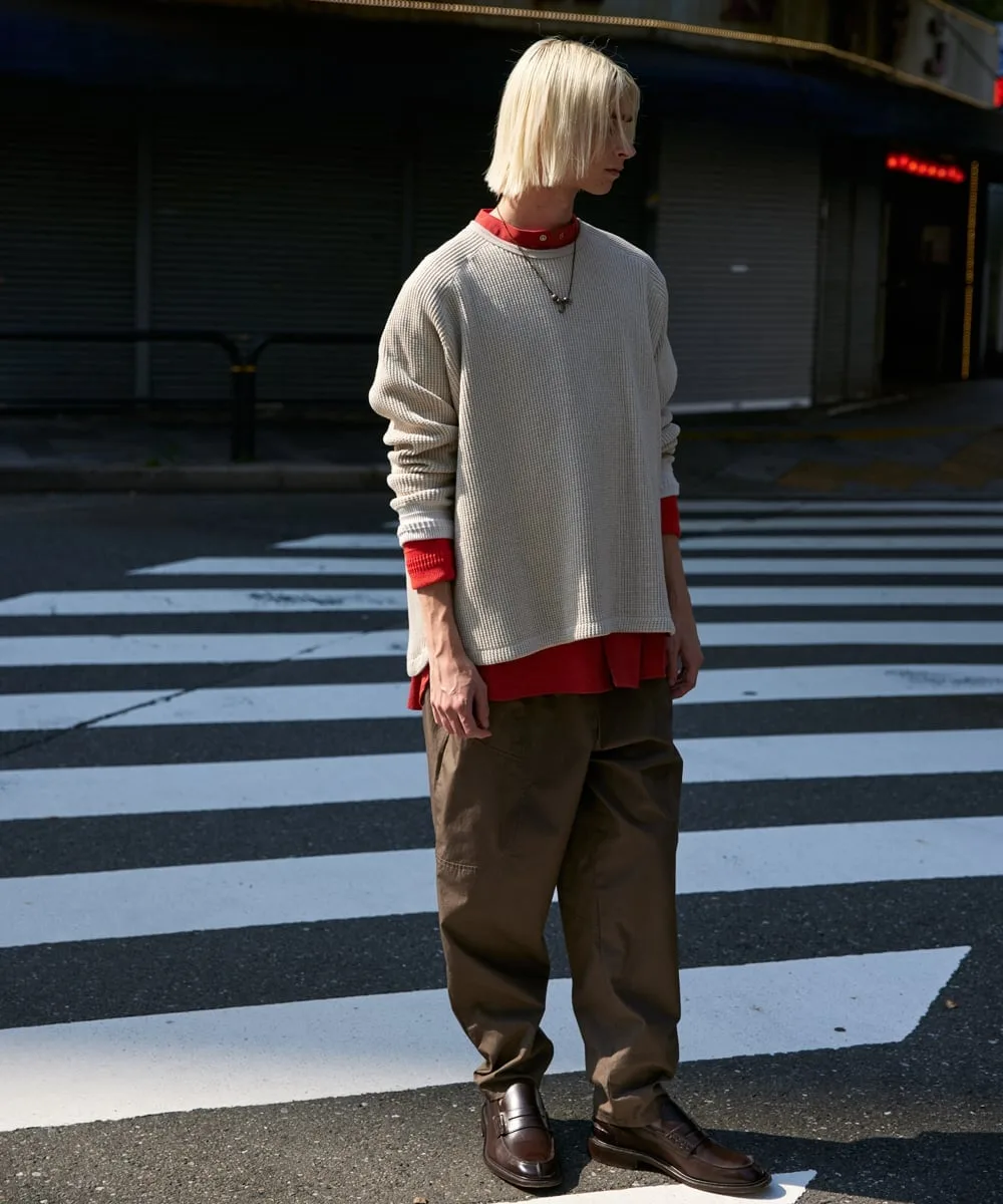 Эта плотная, упругая ткань с крупным вафельным рисунком эластична и удобна в носке.