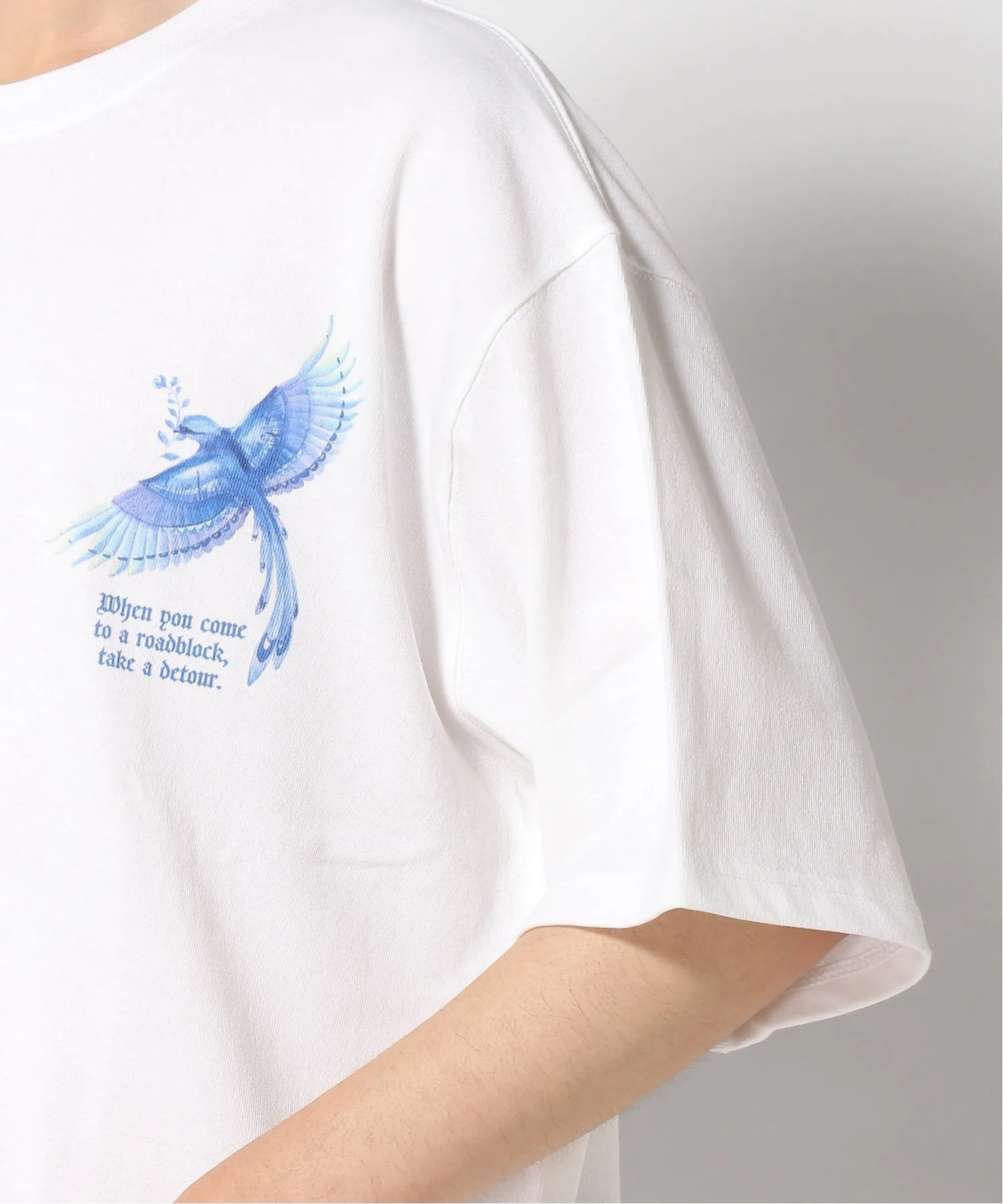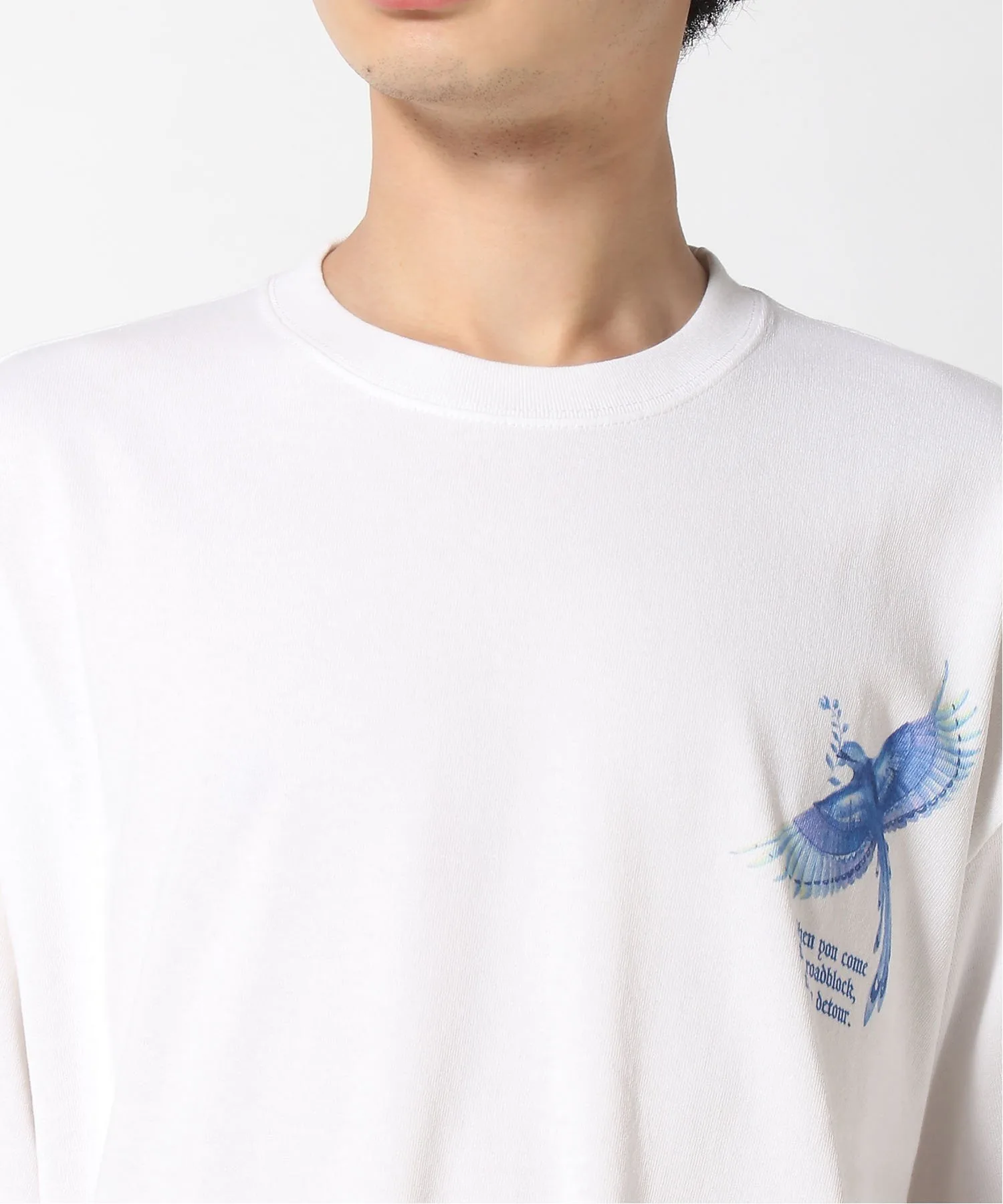 Красивые синие графические изображения нанесены струйным методом на переднюю и заднюю части изделия. Принт тщательно наносится по одному экземпляру на фабрике в Японии. Широкий силуэт с широкой грудью и плечами обеспечивает комфортную посадку как для мужчин, так и для женщин.