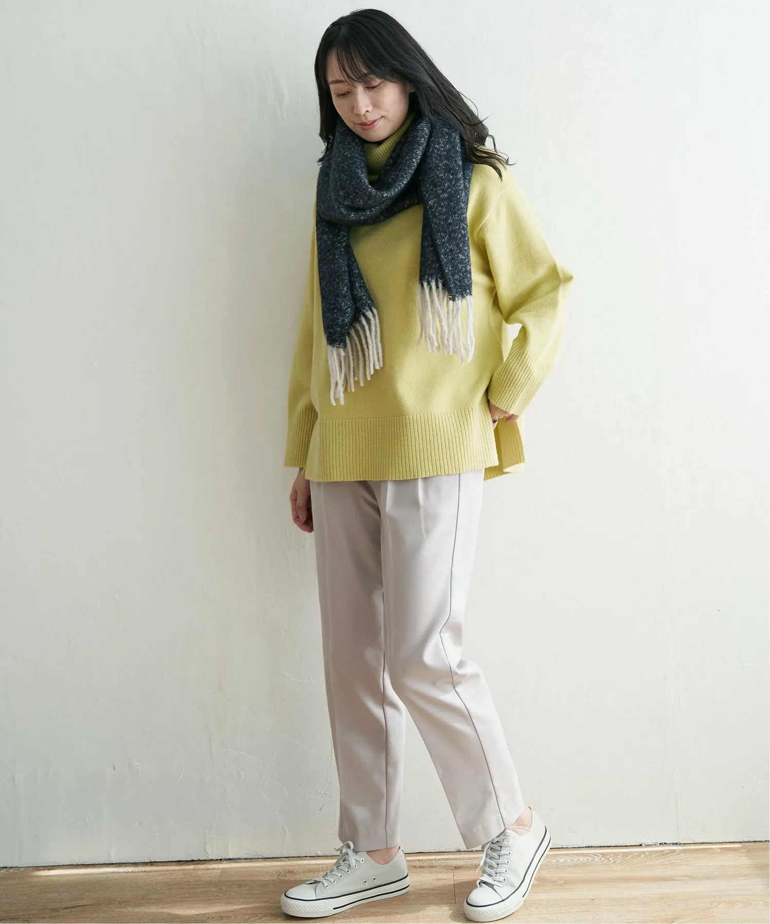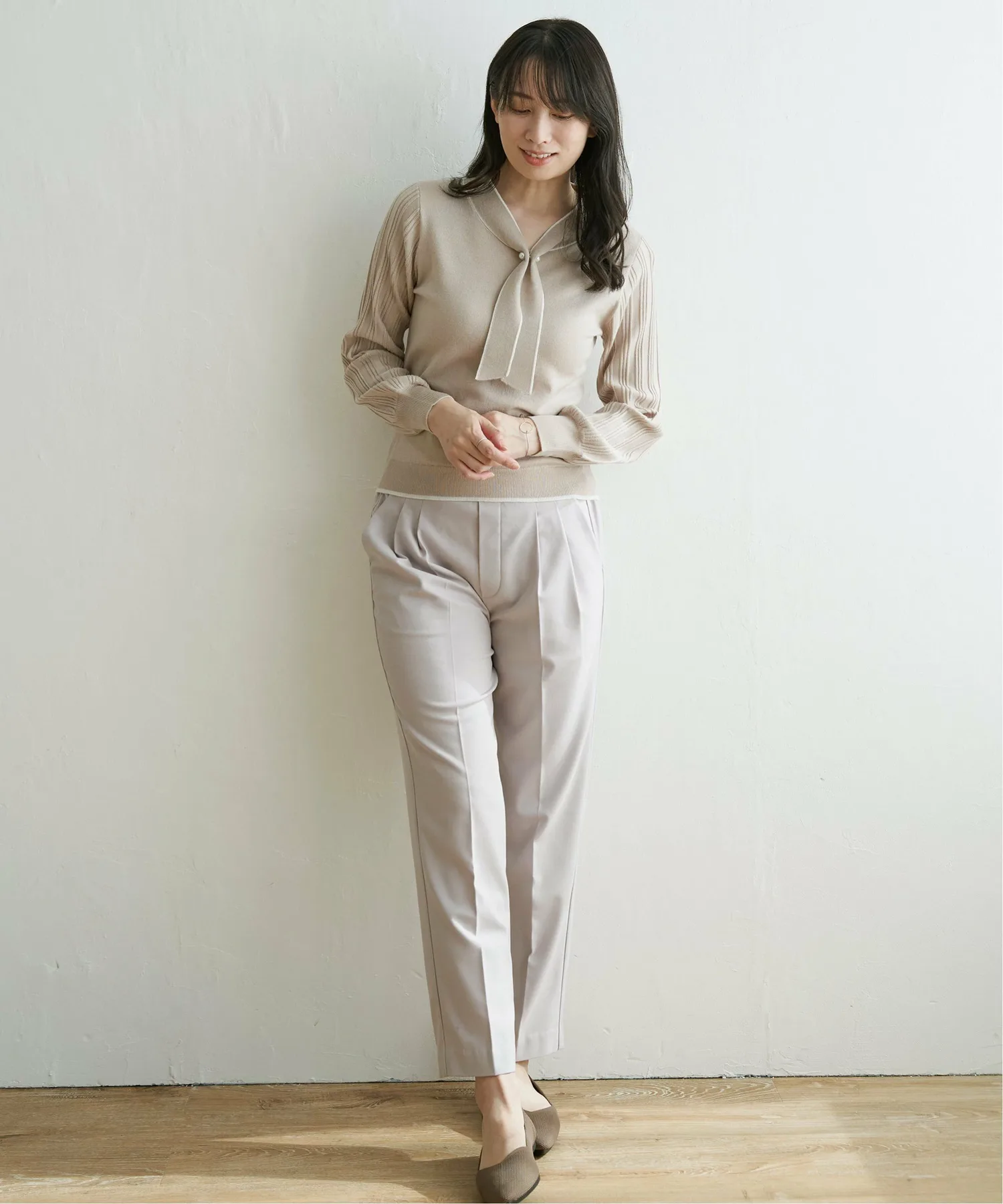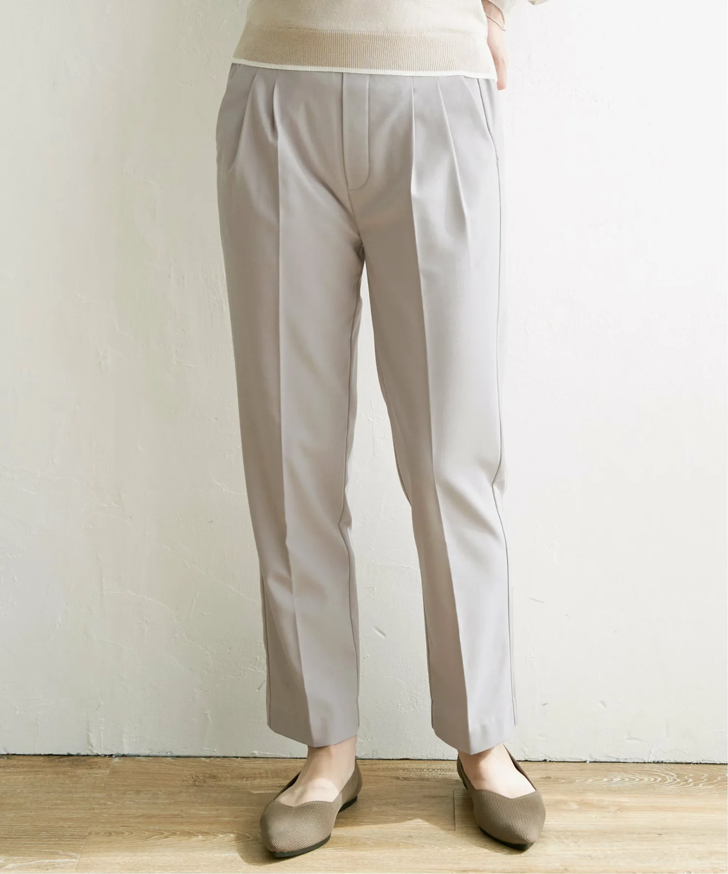 Свободные зауженные брюки с двумя складками на талии.