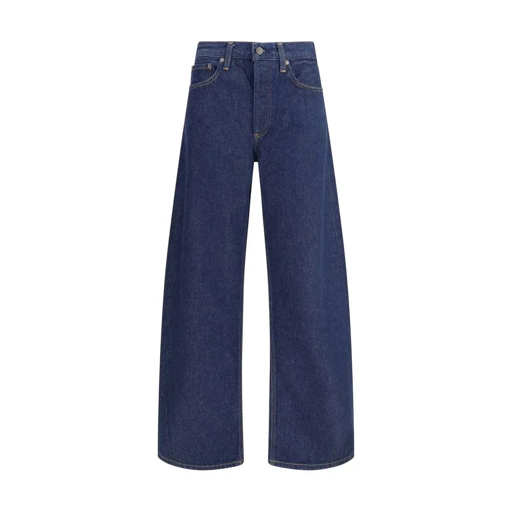 Джинсы из хлопкового канваса от Agolde сочетают в себе структуру и стиль: широкие штанины и смелый дизайн. Высокая талия, застежка на пуговицу и молнию, петли для ремня на поясе и классический дизайн с пятью карманами. Универсальная вещь, идеально подходящая для современных, смелых образов.