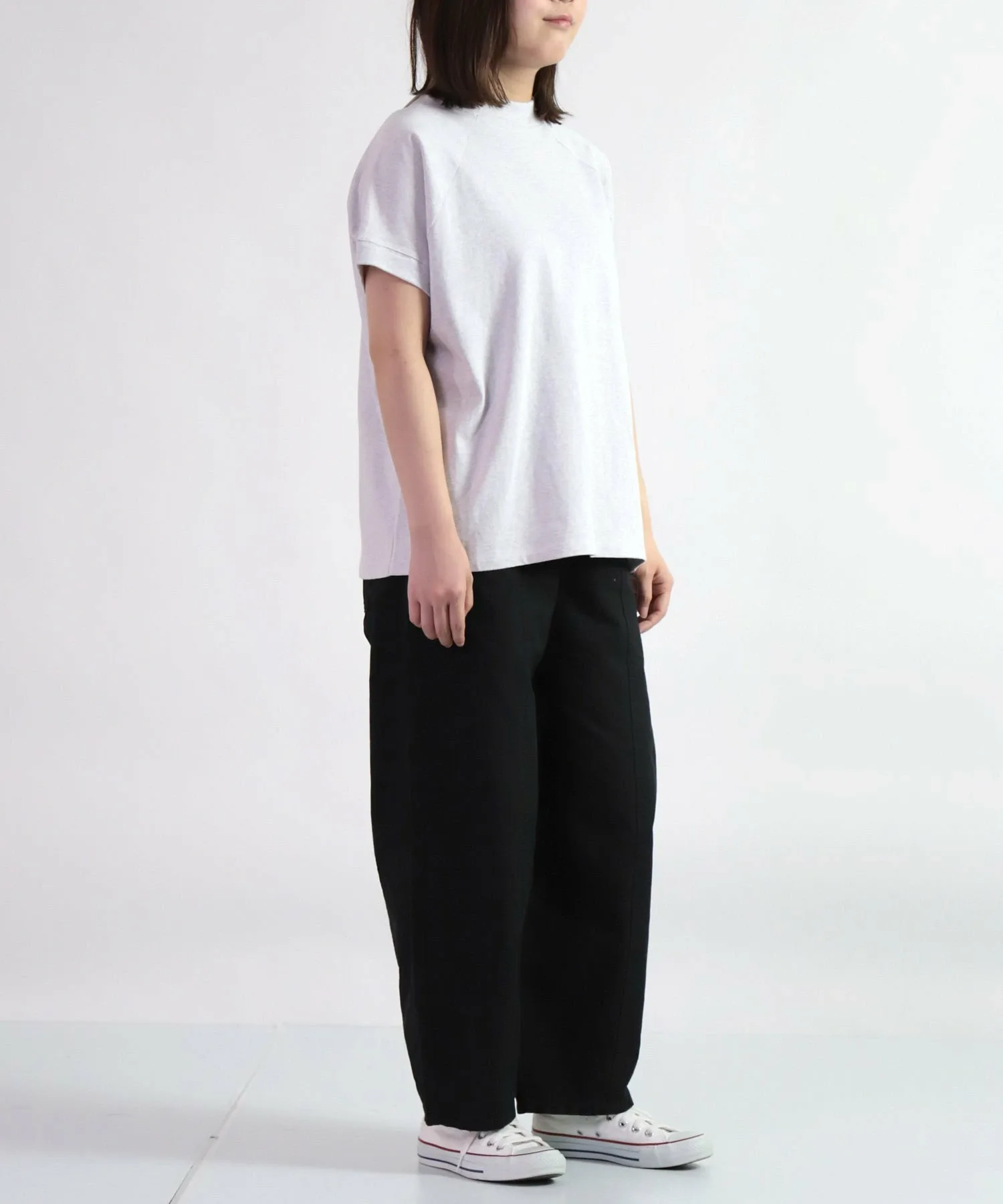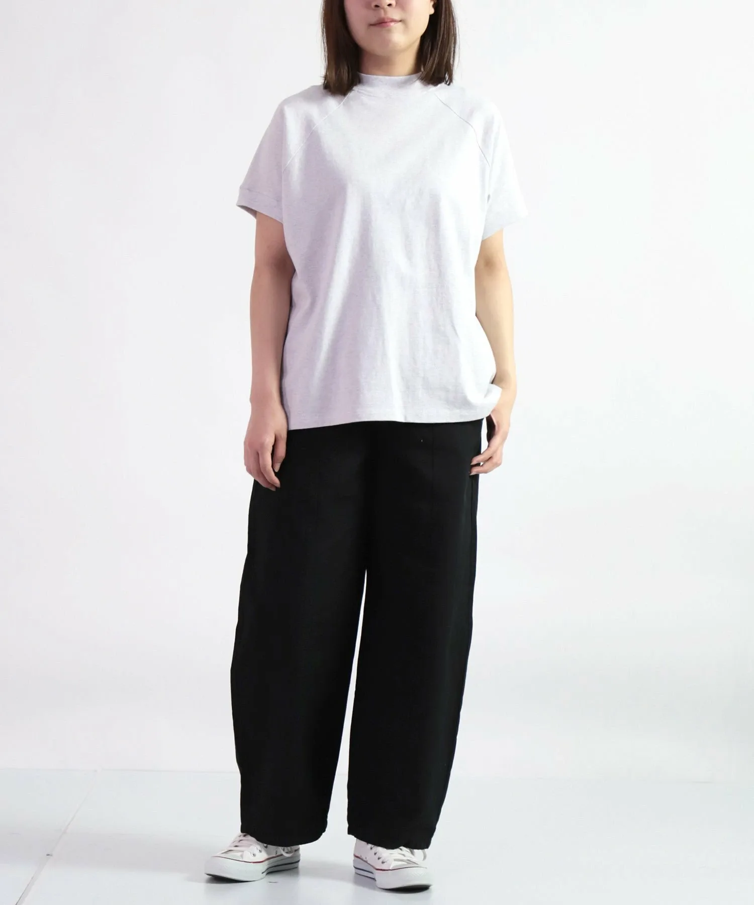 H162/Размер: FREEЭта футболка выпускается в одном размере и удобна в ношении. Обычно я ношу размер M, но в целом она довольно свободная. Воротник плотно прилегает, поэтому у вас не возникнет проблем с выбором нижней рубашки! Длина достаточно большая, чтобы носить ее заправленной или навыпуск, поэтому она универсальна. Не слишком свободный крой делает ее универсальной вещью, которая вам никогда не надоест.
