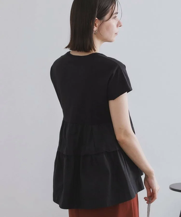 - Низ футболки имеет многоярусный дизайн с оптимальным объемом.