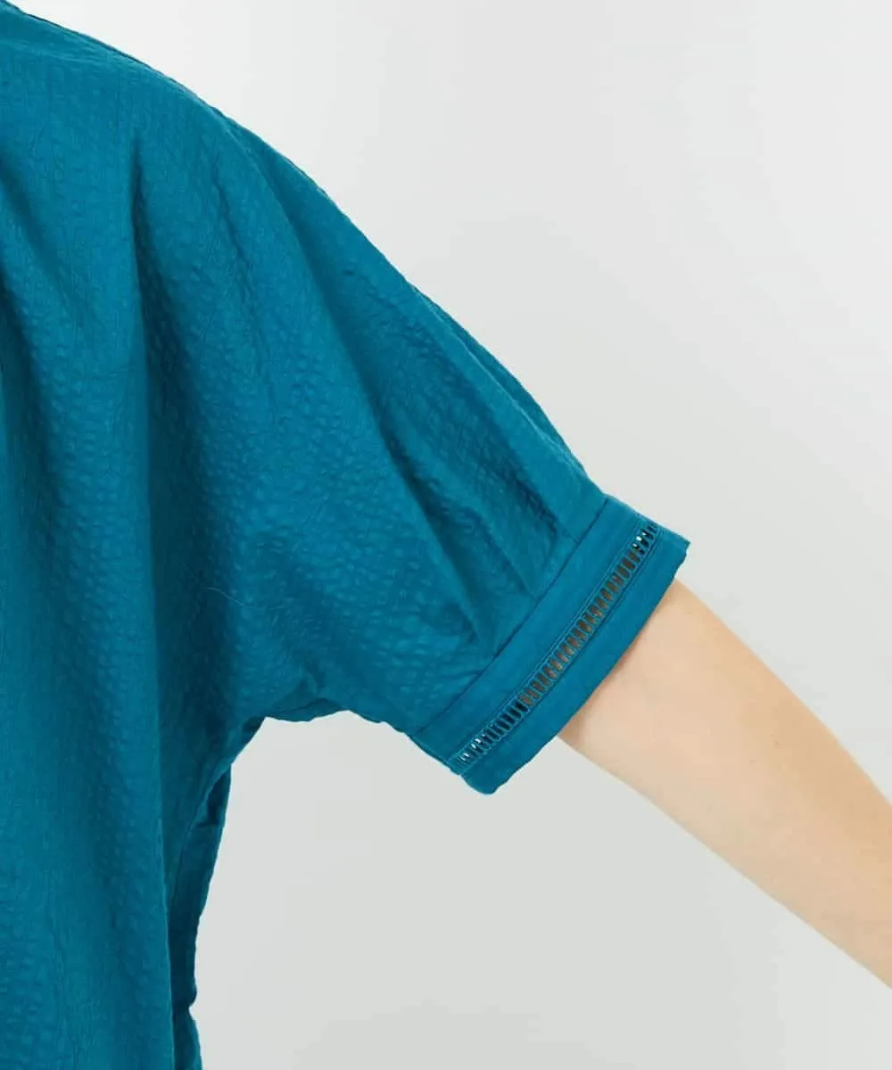 Изготовлено из 100% хлопка с мягкой текстурой и легким ощущением. Изысканное сочетание волнистой и вертикальной обработки создает умеренную плотность и текстуру, напоминающую футбольный мяч. Текстурированная ткань приятна на ощупь, что делает ее комфортным материалом для ношения летом. Еще одно замечательное преимущество – вы можете носить ее, не беспокоясь о складках после стирки или во время носки.