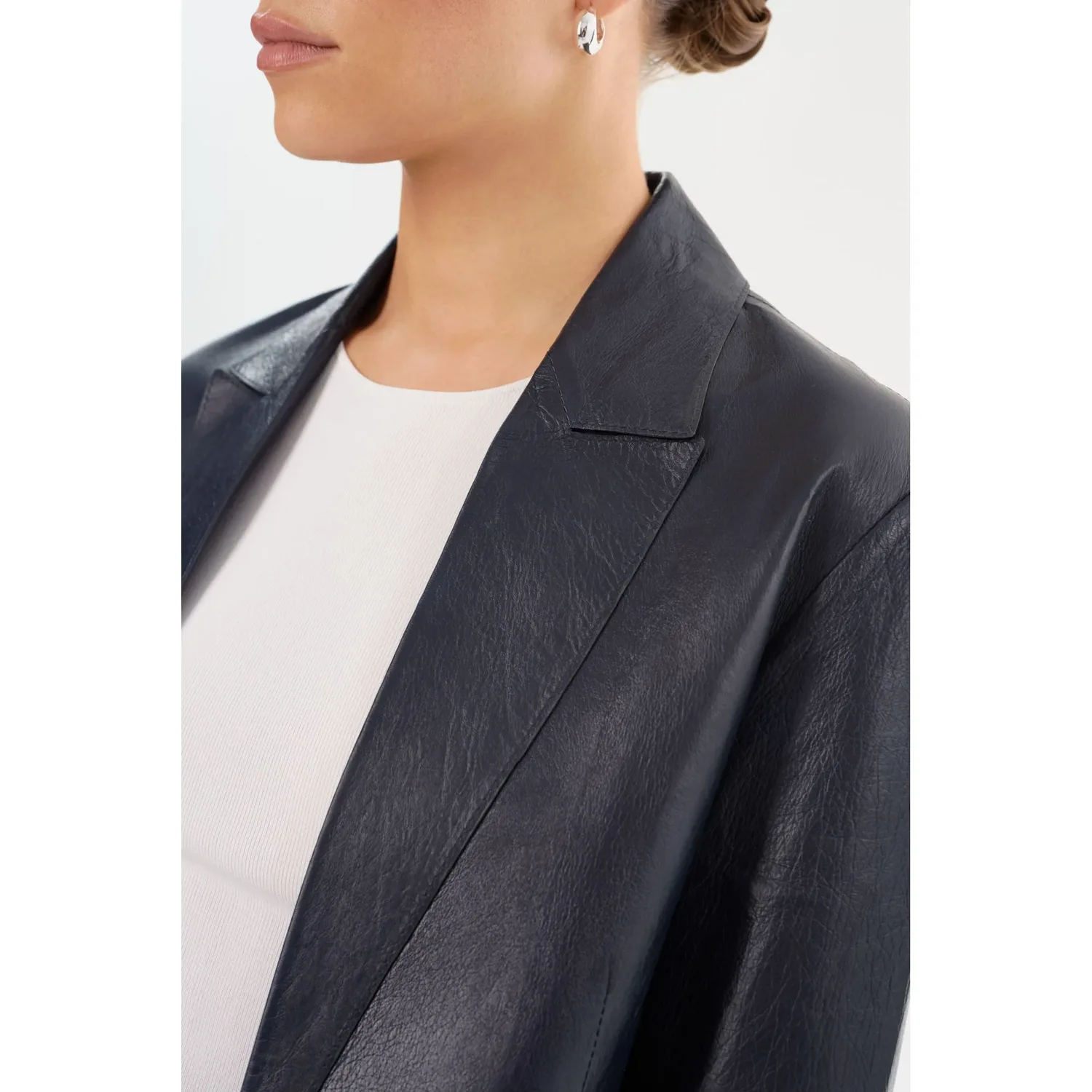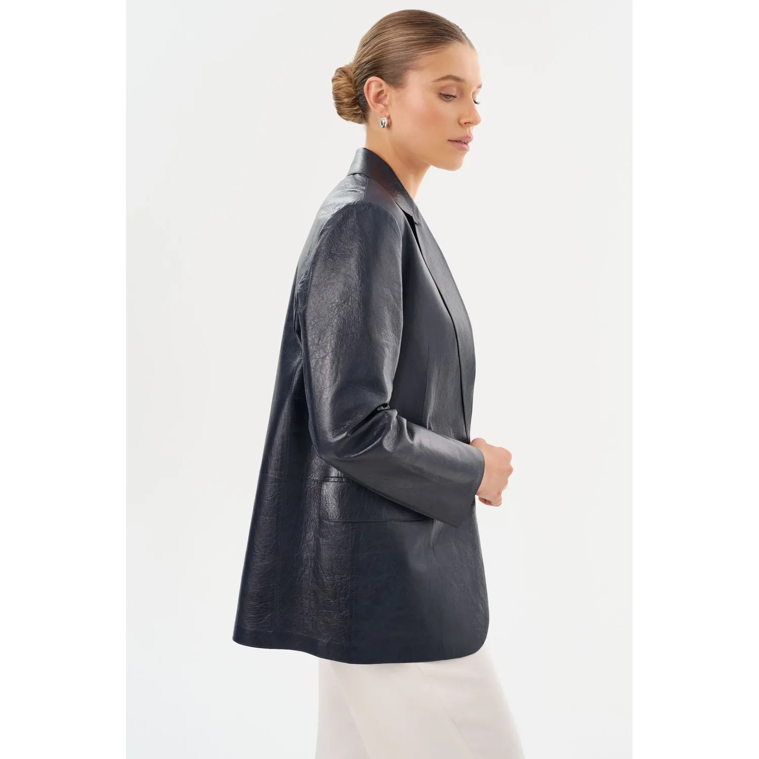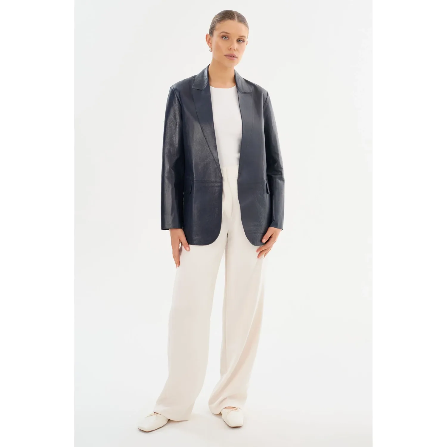 Побалуйте себя вневременной элегантностью кожаного блейзера QUIRINA, незаменимого элемента гардероба каждой взыскательной женщины. Этот блейзер с заостренными лацками и классическими накладными карманами излучает изысканность и универсальность. Отсутствие подкладки обеспечивает ощущение легкости, идеально подходящее для переходных сезонов. Легко сочетайте его с джинсами и футболкой для сдержанного, но шикарного образа, или подчеркните утонченный профессионализм с кожаными брюками YAREN и туфлями на каблуках.