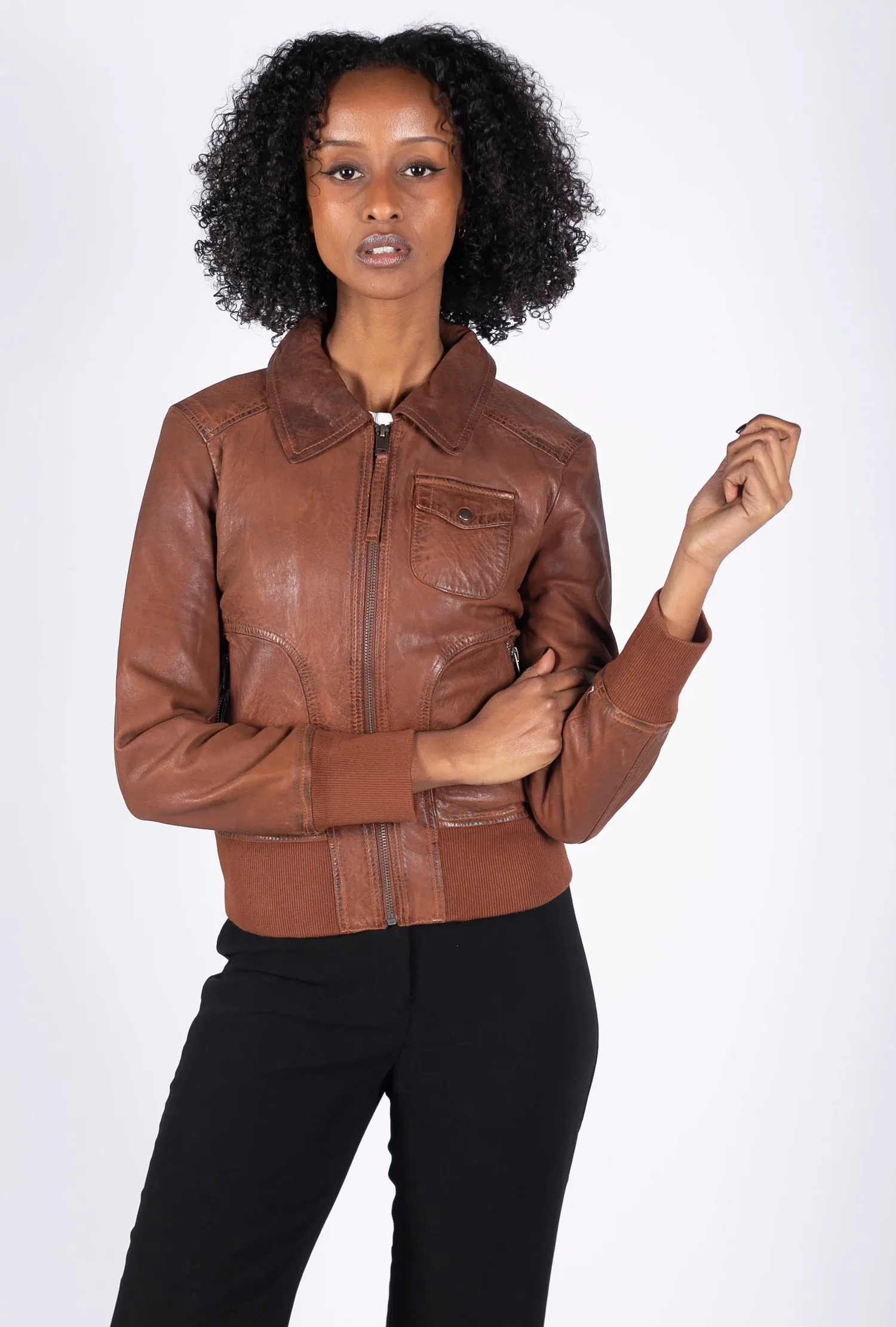 • Женская короткая куртка-бомбер в 4 потрясающих цветах • Застежка-молния спереди, боковые карманы на молнии, нагрудный карман на кнопке и внутренние карманы • Изготовлена ​​из мягкой натуральной кожи наппа с отложным воротником • Классический стиль, идеально подходит для повседневной носки в стиле smart casual, универсальная, изготовлена ​​из дышащей кожи, идеально подходит для легкой и умеренной погоды