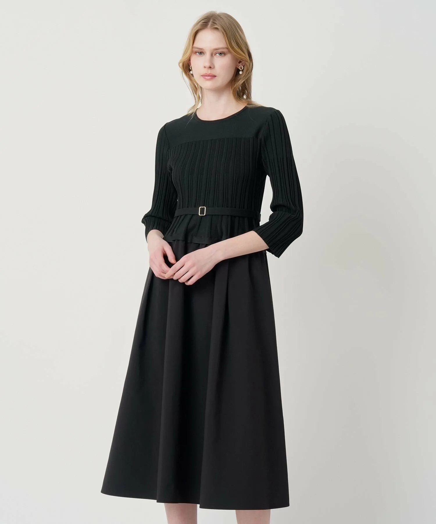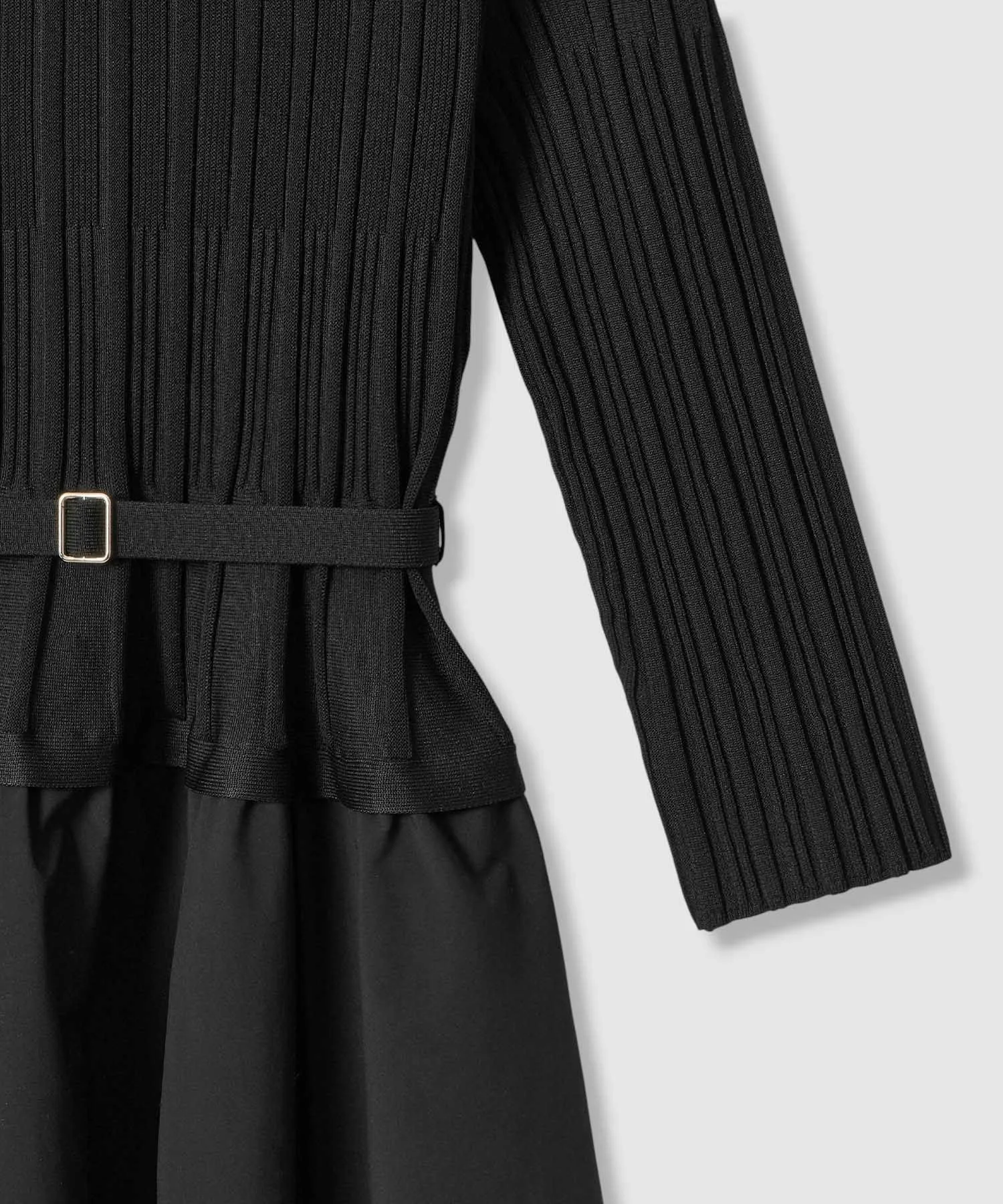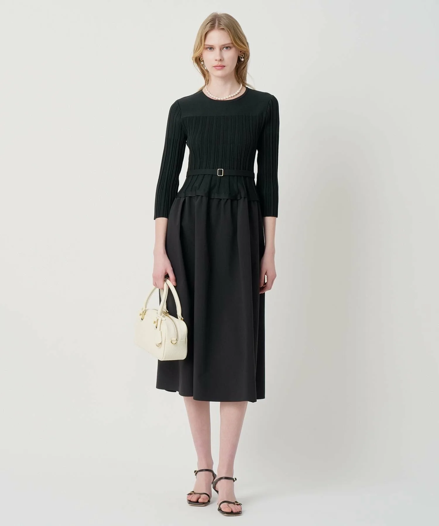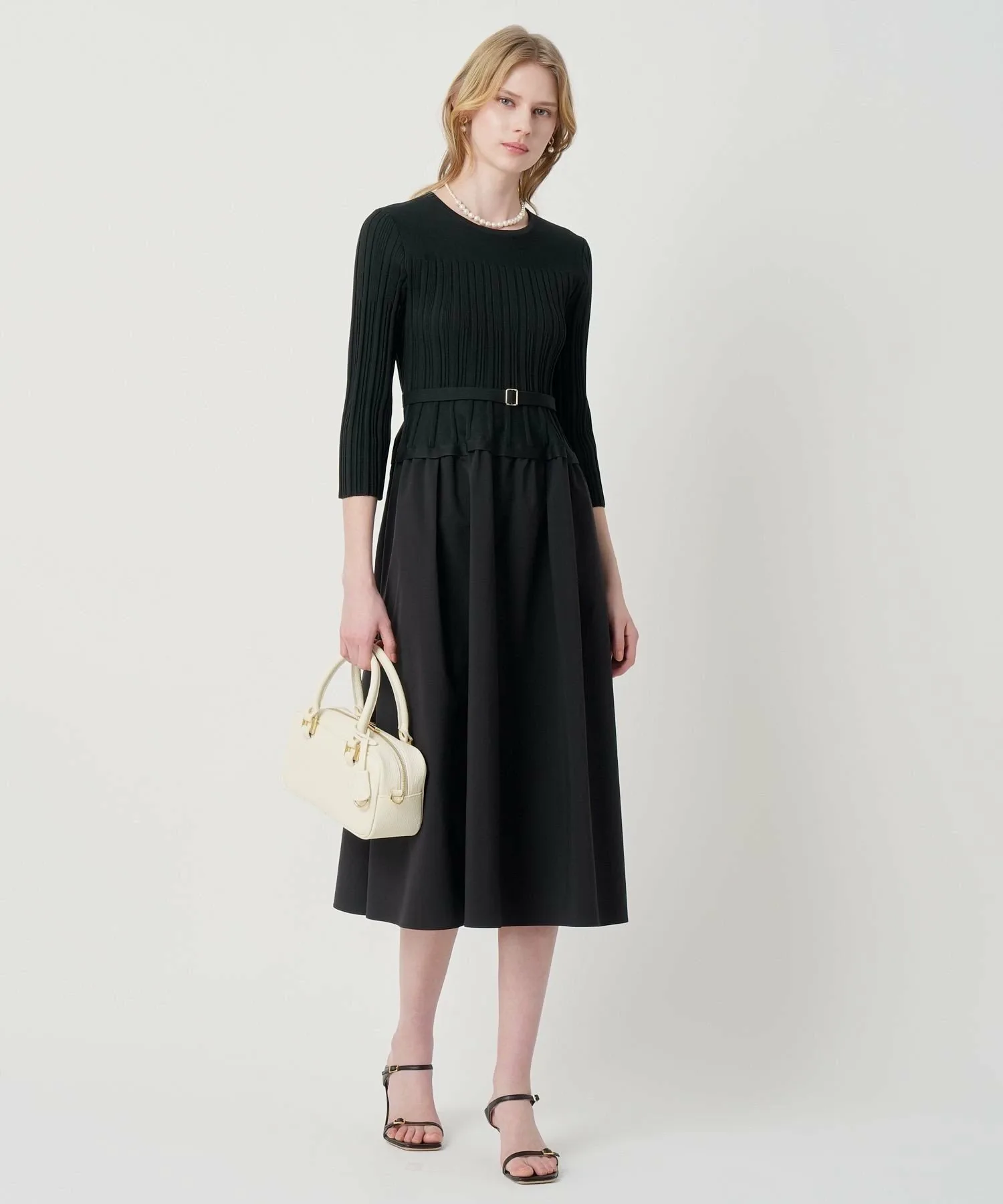 Это платье сочетает в себе ребристый верх и юбку из тафты.