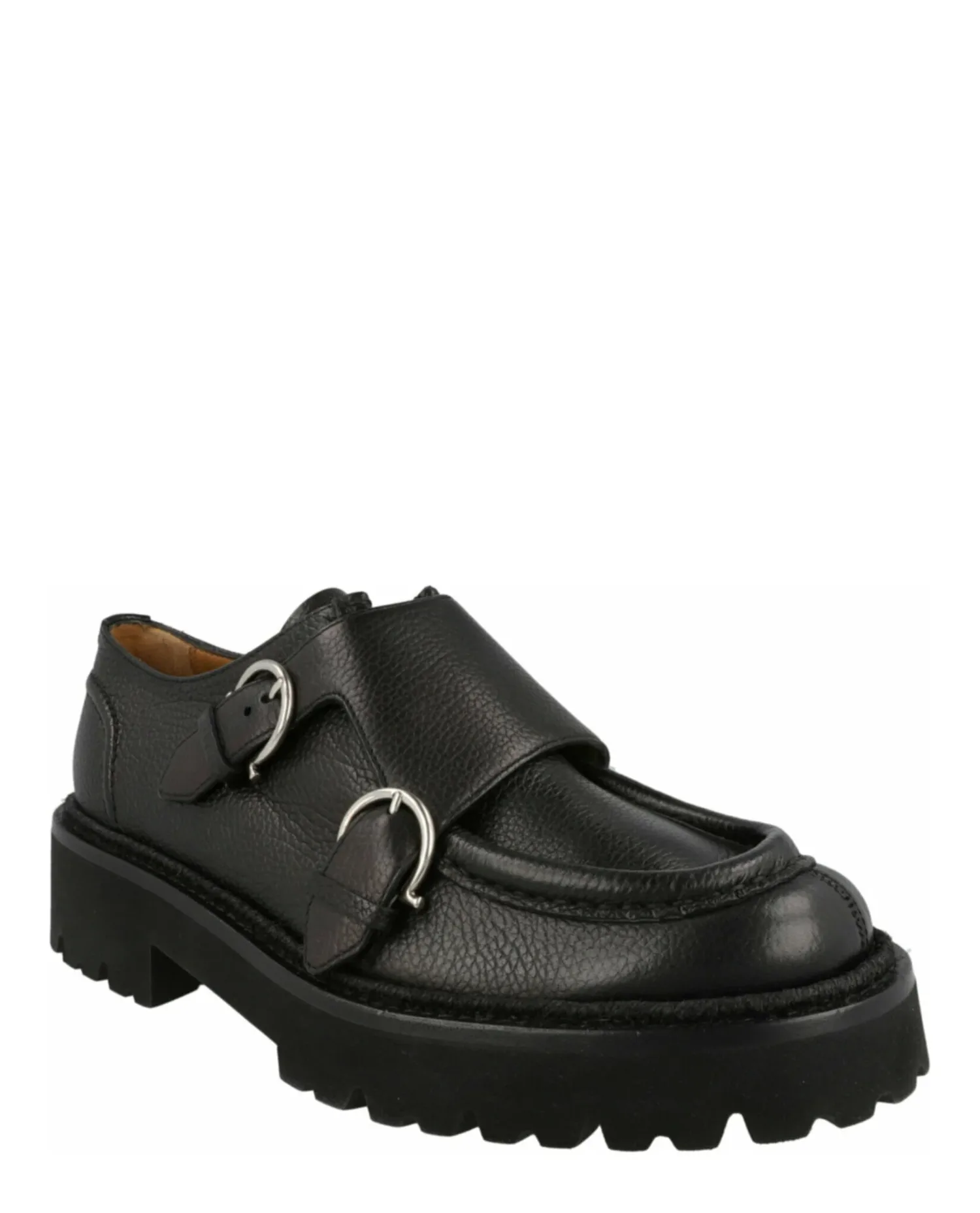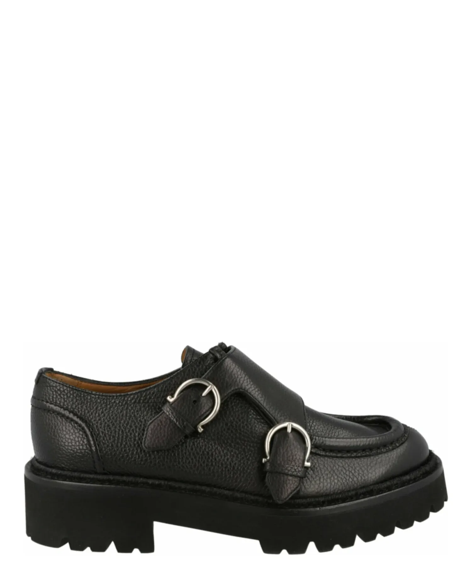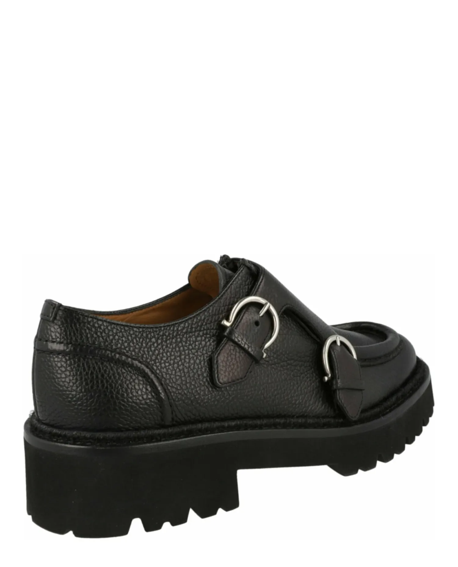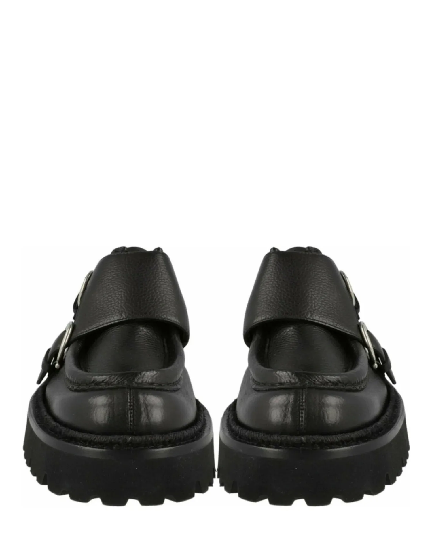 • Массивная рифленая подошва; фурнитура серебристого цвета.