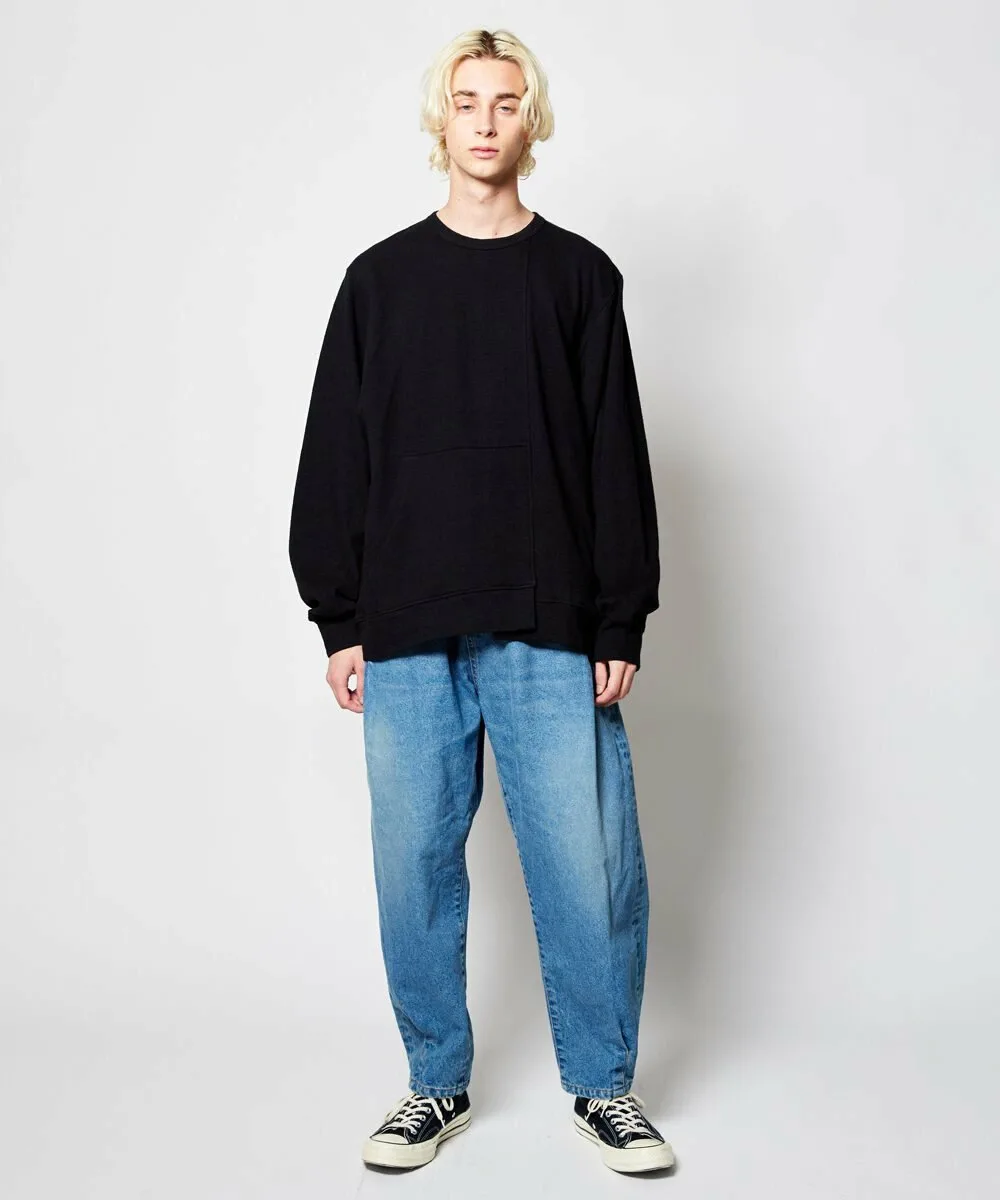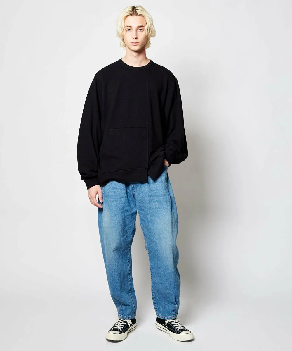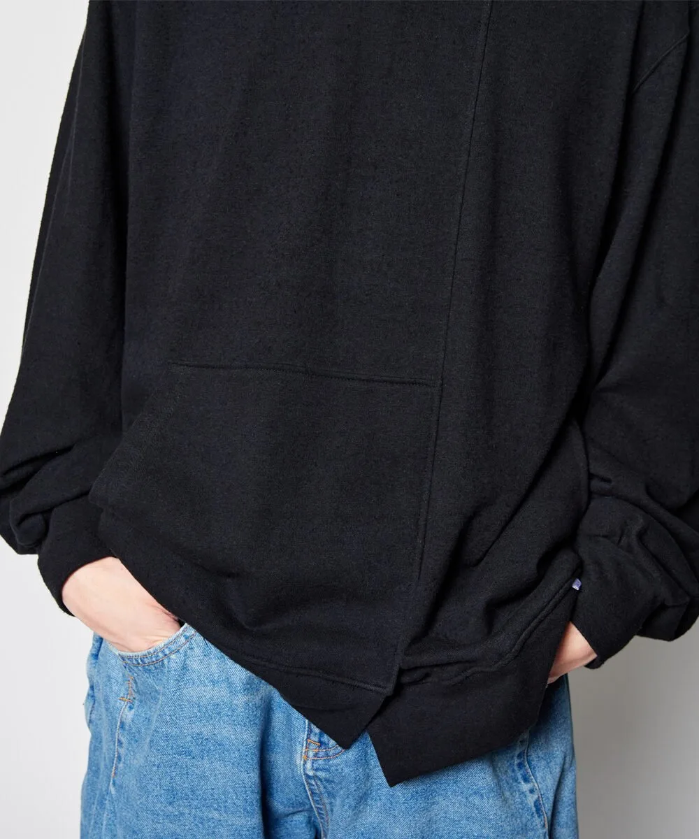 Эта модель сшита из трикотажа Raffi, обладающего богатой текстурой с неровностями и узелками. Изготовленная из смеси длинноволокнистой пряжи Supima и пуха, она приятна на ощупь, создавая ощущение мягкого махрового одеяла. Дизайн отличается асимметричным силуэтом с центральной панелью и разрезом, карманом-кенгуру и боковыми карманами.