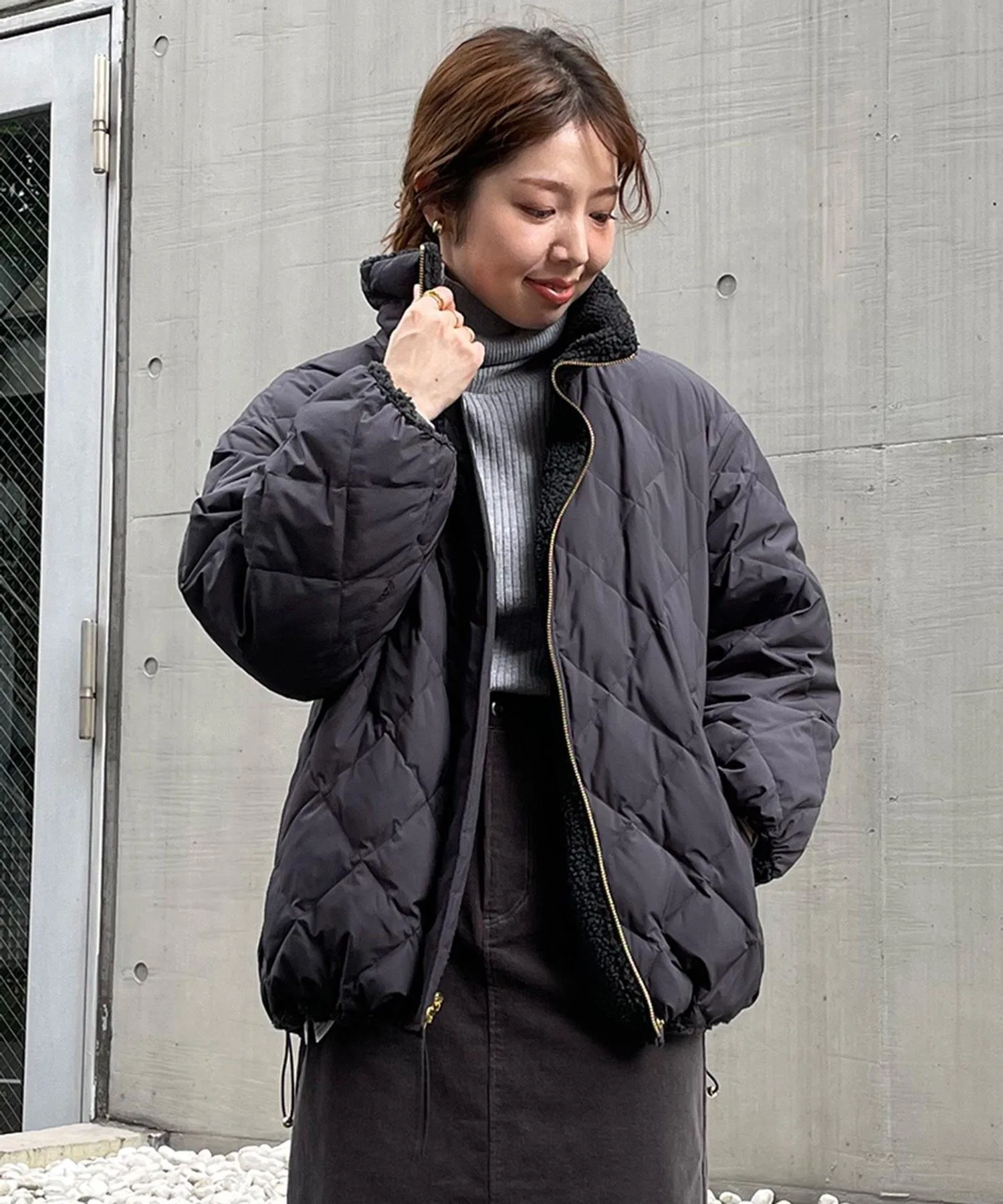 Дизайн В этом сезоне мы представляем двустороннюю блузон-боа в рамках нашей коллаборации с популярным брендом пуховых курток TAION. Наслаждайтесь двумя разными образами: боа спереди и стеганая тафта сзади. Несмотря на повседневный стиль, слегка объемные рукава добавляют нотку женственности. Мы рекомендуем затянуть шнурок по низу, чтобы создать округлый силуэт. Высокий воротник-стойка не только добавляет гламура, но и обеспечивает отличную защиту от холода! Эта универсальная верхняя одежда может сочетаться с широким спектром стилей, от повседневных брюк до женственных юбок. Доступна в различных нежных цветах, которые легко вписать в ваш образ.